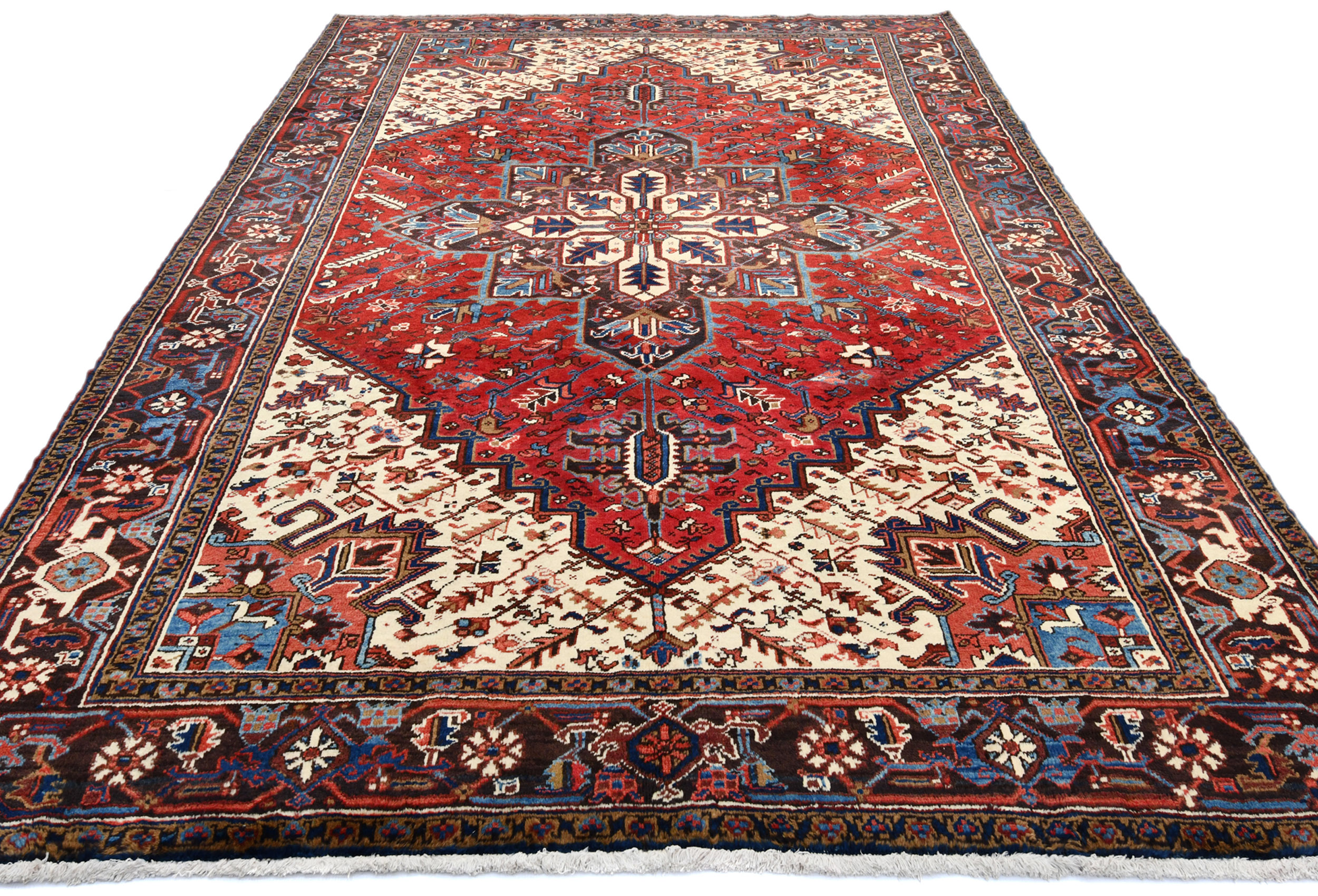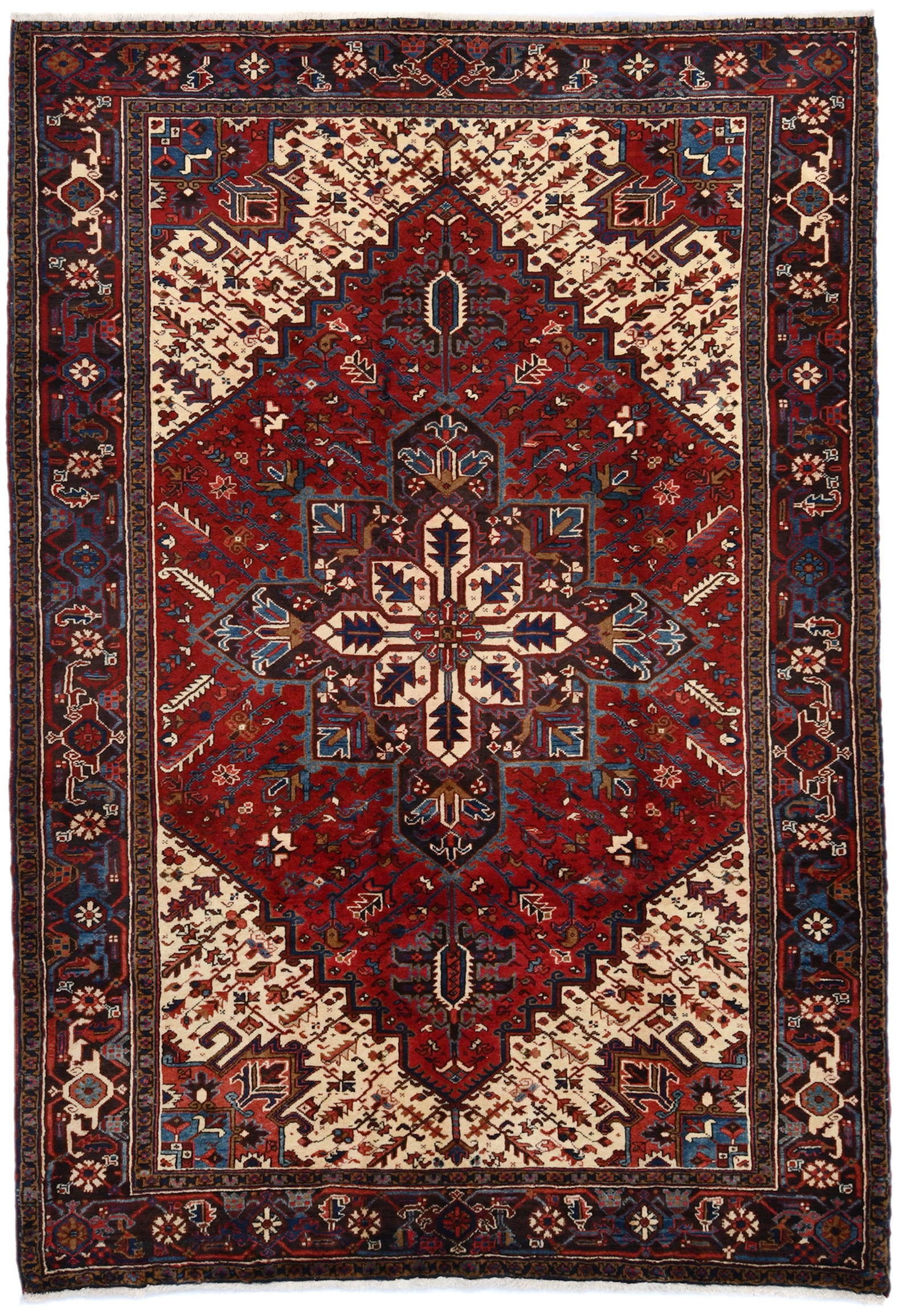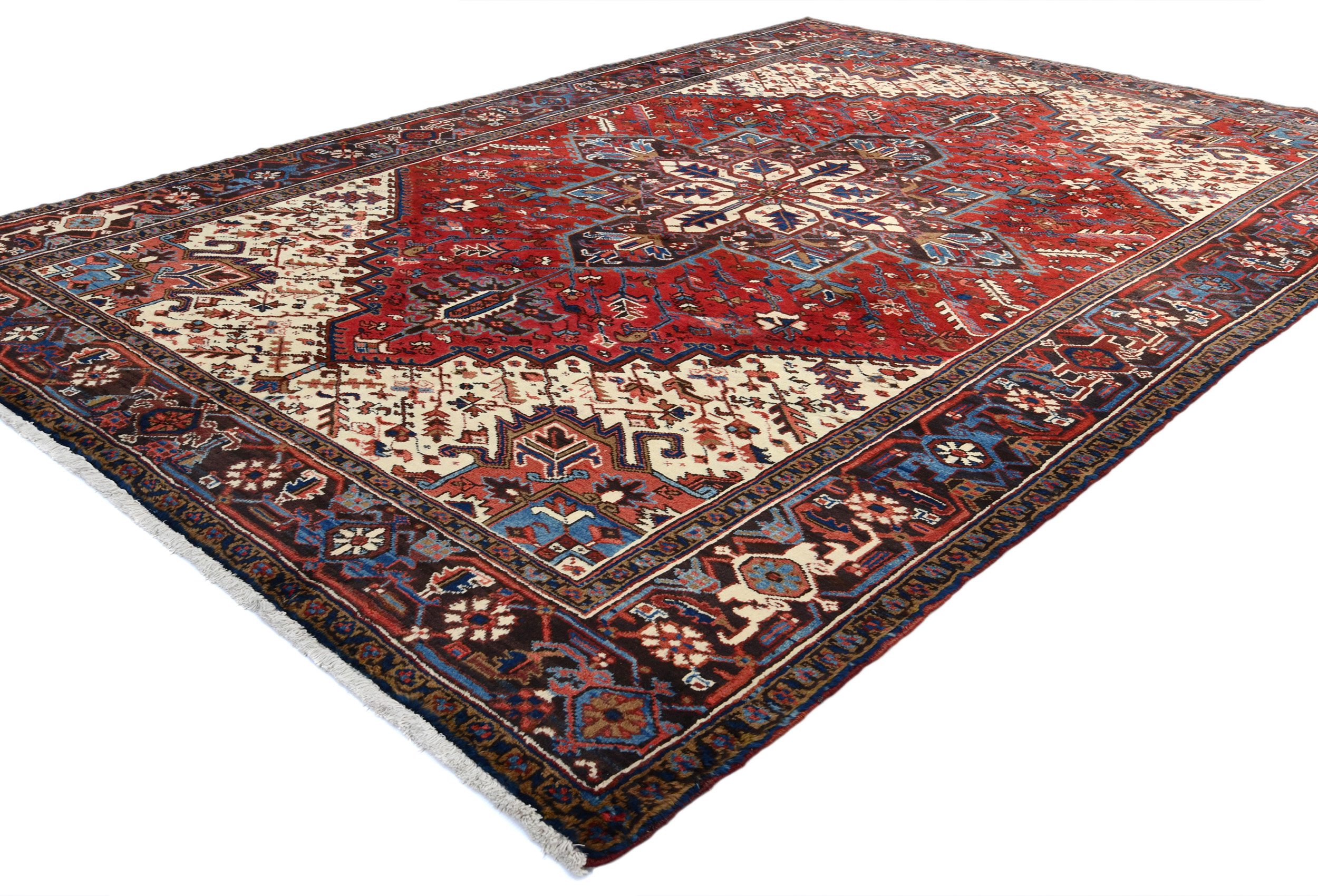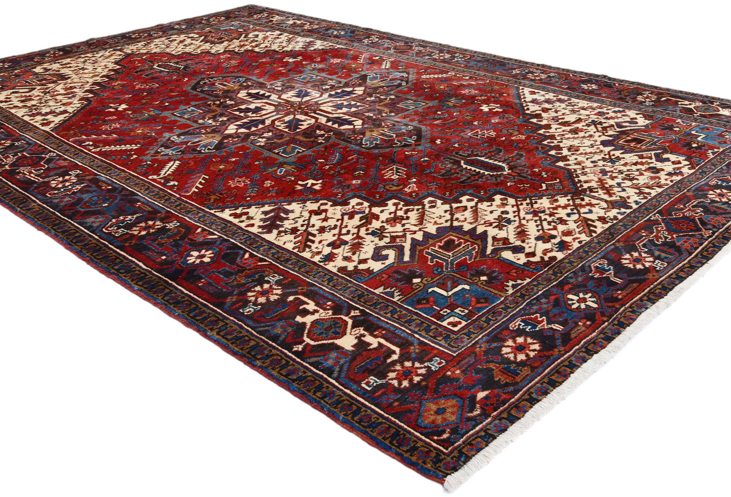 Red Vintage Geometric 7X10 Heriz Persian Oriental Rug