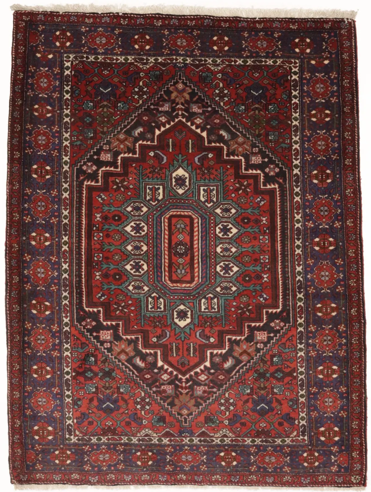 Vintage Geometric Scarlet Red 4X5 Bidjar Persian Rug