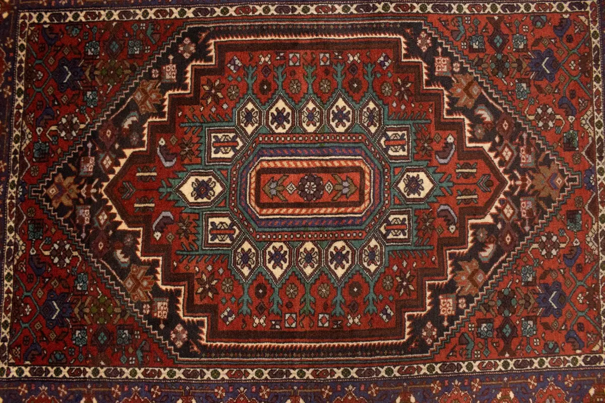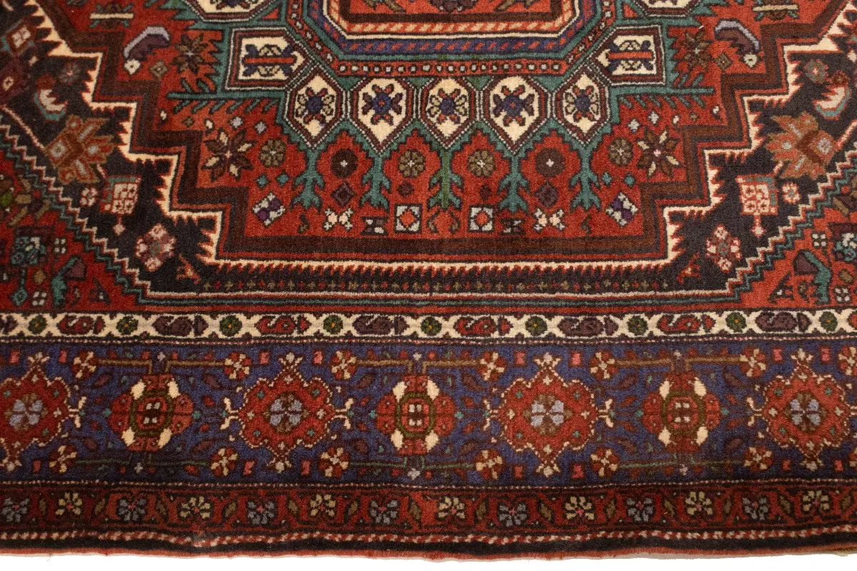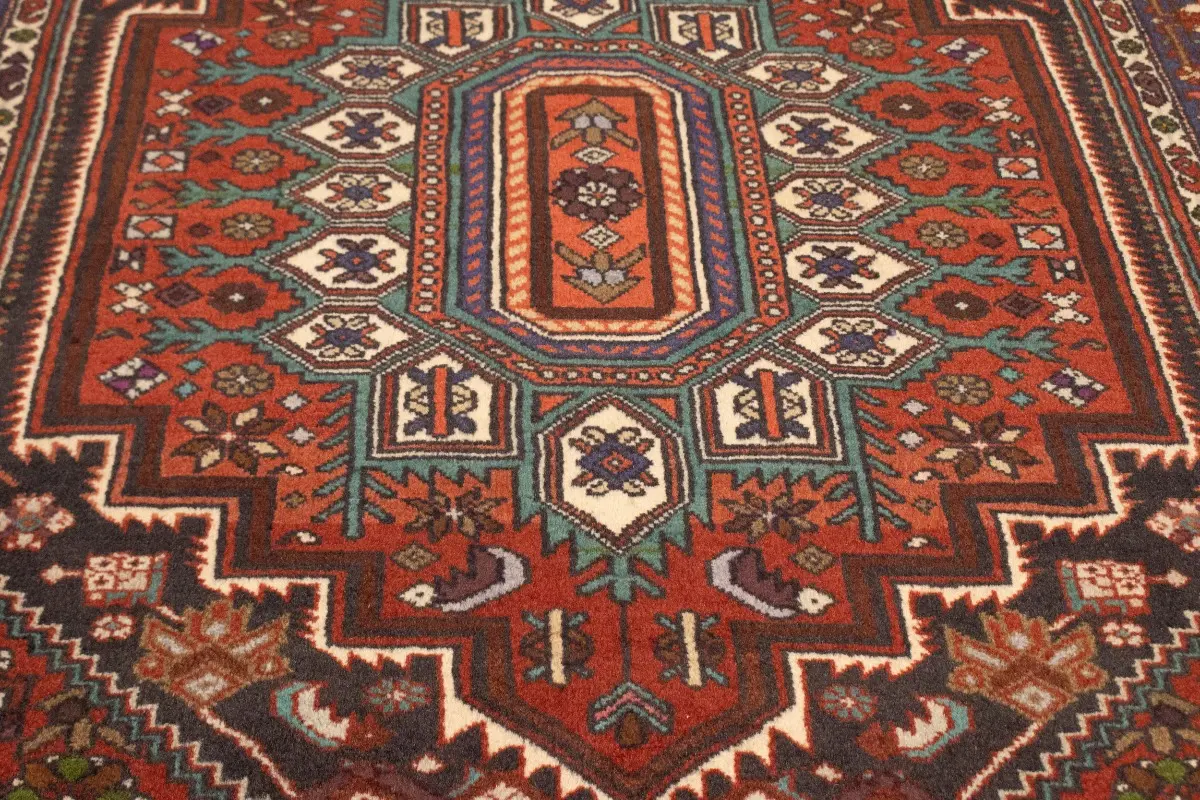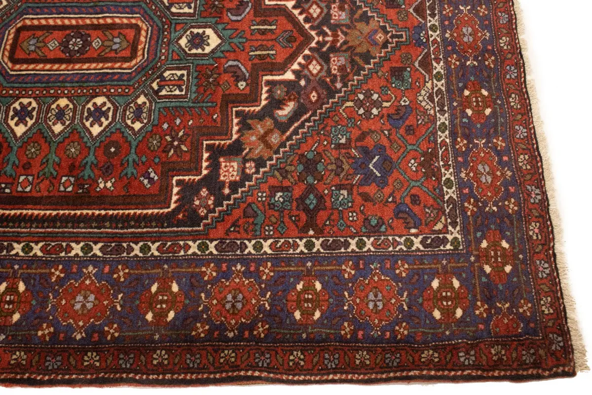 This original 4X5 red vintage Persian rug was crafted by the hands of skilled weavers enthused by a variety of lovely artistic designs, to recreate the aged look of the unique piece with a richness of color and beautifully elaborated background field. What set this tribal Oriental area rug from the others are the material and dye used (wool pile and cotton foundation), knot count, ancient designs, fantastic grades, and its regional historical connection: it has deep roots, from the story of the people who produced it to the meaning of the symbols and colors displayed across its canvas that have been praised for centuries. This home décor carpet will be completely cozy and inviting that never will go out of style! Also, this Oriental rug would be among your most valuable treasures, it is a great investment that increase in value over time, and it will last for generations because was woven with high-quality, all-natural wool; it won’t rip, tear, or shed. Environmentally friendly, opulent yet affordable; this Persian rug will give you a thorough amount of character to help define your living space with sophistication and warmth that will capture the eyes and attention of your audience (homeowners, designers, decorators, family and friends). EB-5521
