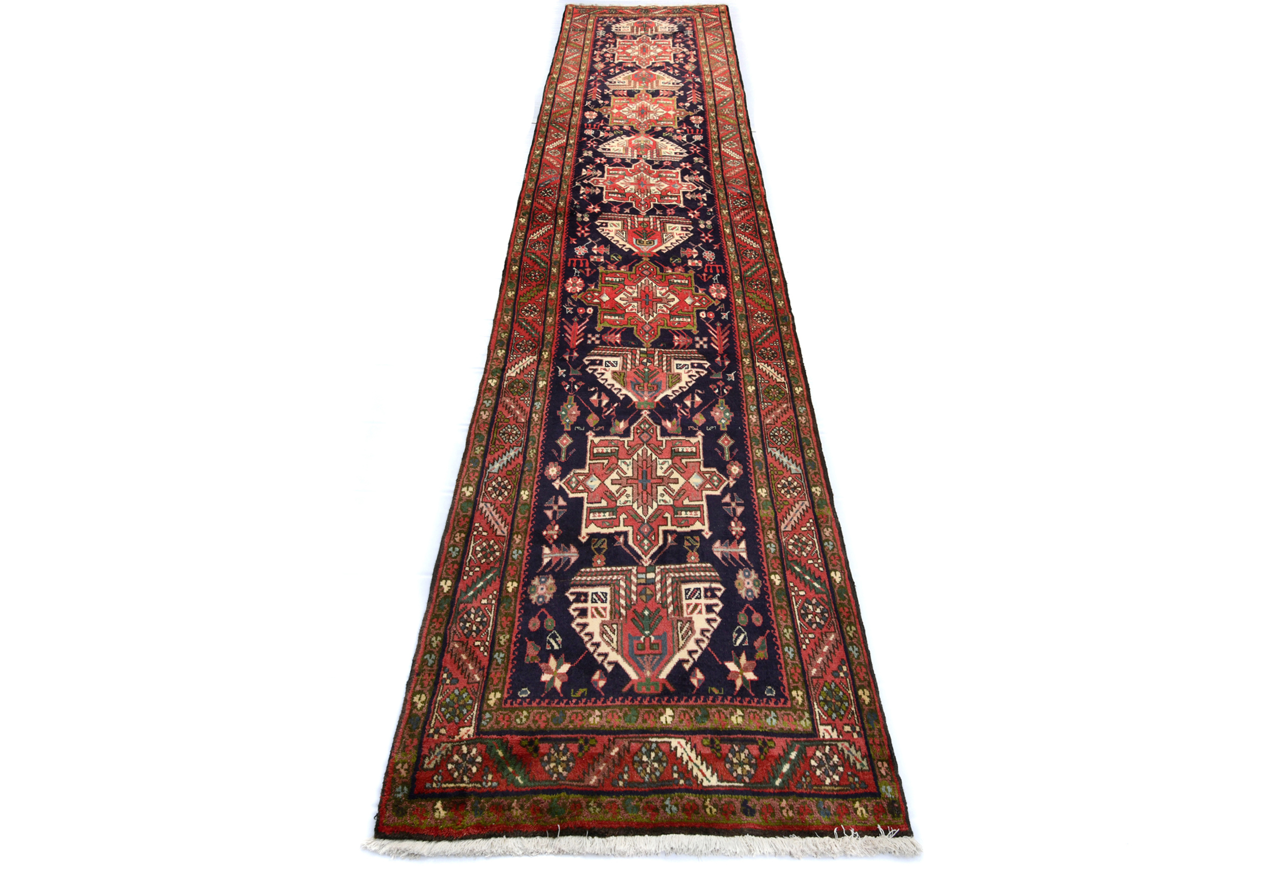 Vintage Geometric Tribal 3'2X14'6 Karajeh Persian Runner Rug