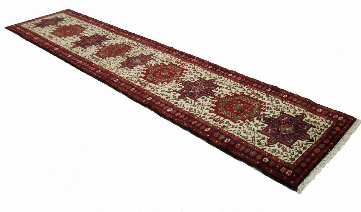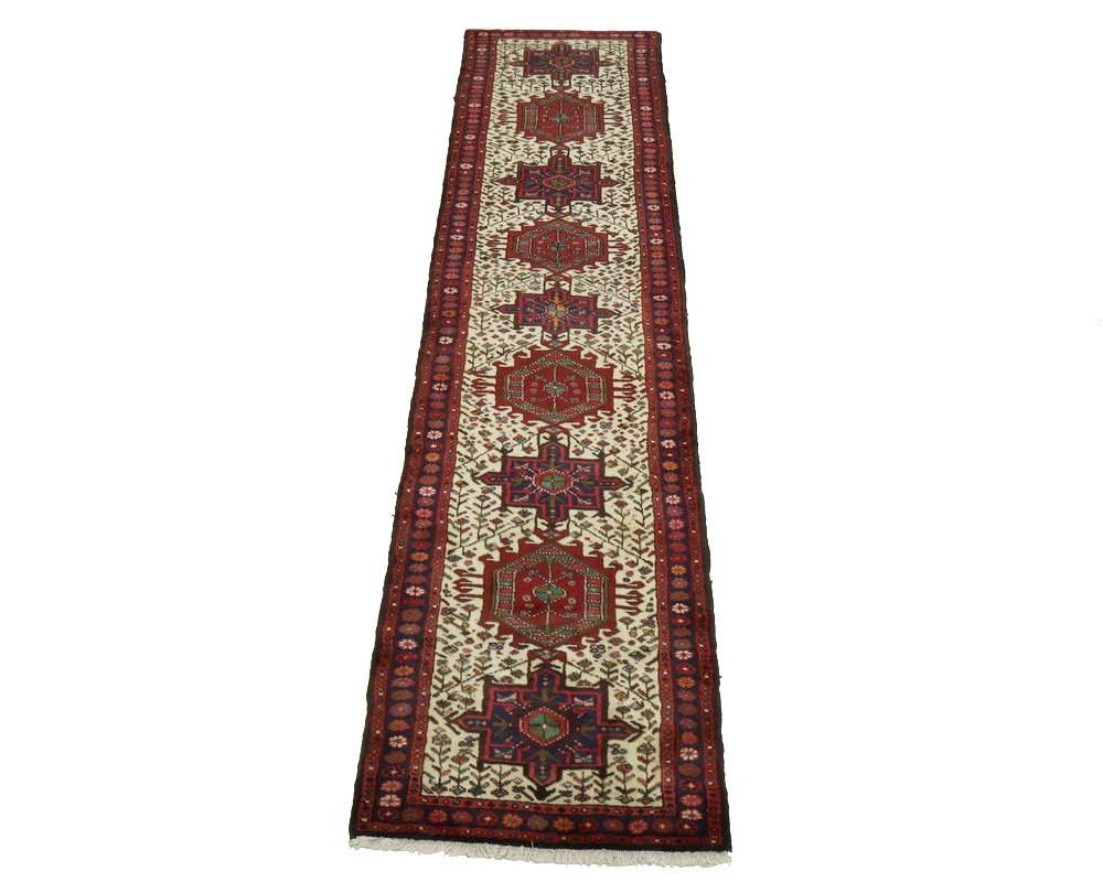 This original 3X12 ivory vintage Persian runner was made by the hands of gifted weavers inspired by a variety of spectacular artistic designs, to recreate the aged look of the original piece with a richness of color and ornately patterned background field. What set this geometric Oriental area runner from the others are the material and dye used (wool pile and cotton foundation), knot count, ancient designs, fantastic grades, and its regional historical connection: it has deep roots, from the story of the people who produced it to the meaning of the symbols and colors displayed across its canvas that have been praised for centuries. This home decor carpet will be completely cozy and inviting that never will go out of style! Also, this Oriental runner would be among your most valuable treasures, it is a great investment that accrues value over time, and it will last for generations because was woven with high-quality, all-natural wool; it won’t rip, tear, or shed. Environmentally friendly, opulent yet affordable; this Persian runner will give you a thorough amount of character to help define your living space with elegance and warmth that will capture the eyes and attention of your audience (homeowners, designers, decorators, family and friends). EB-1924