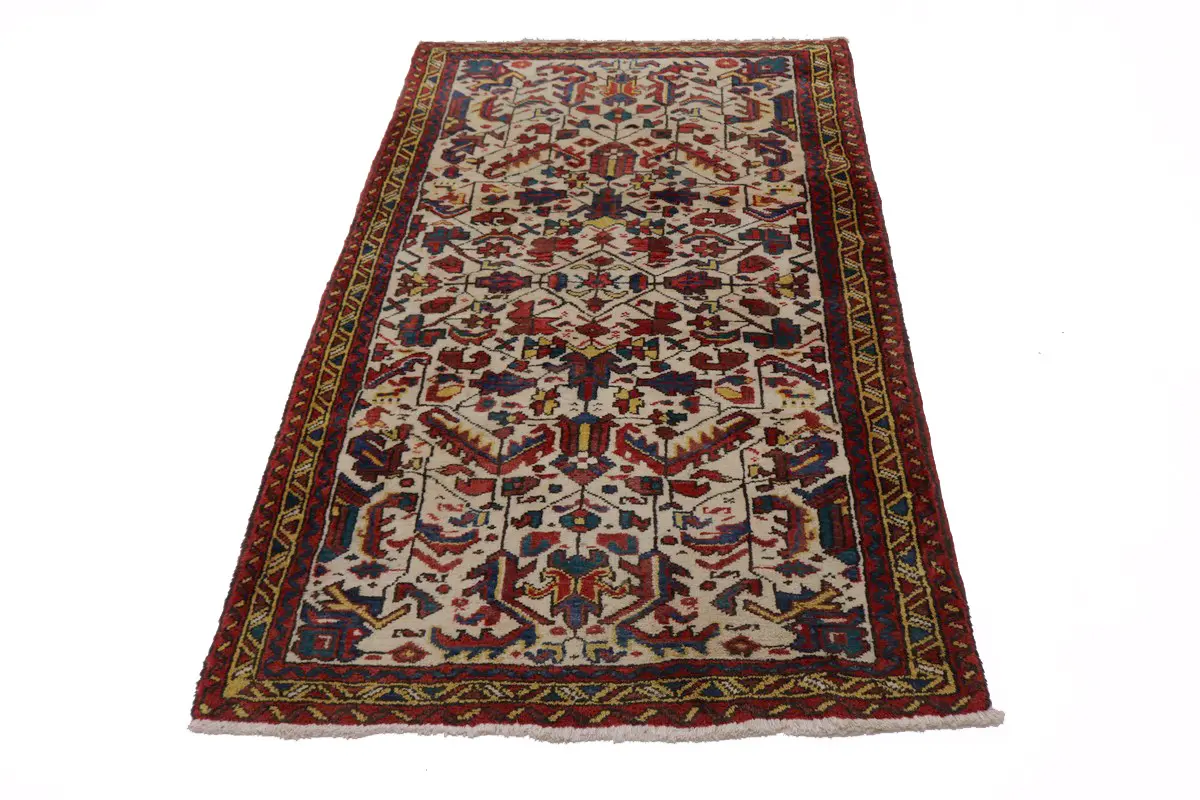Ivory Vintage Geometric 3X5 Goravan Heriz Persian Oriental Rug
