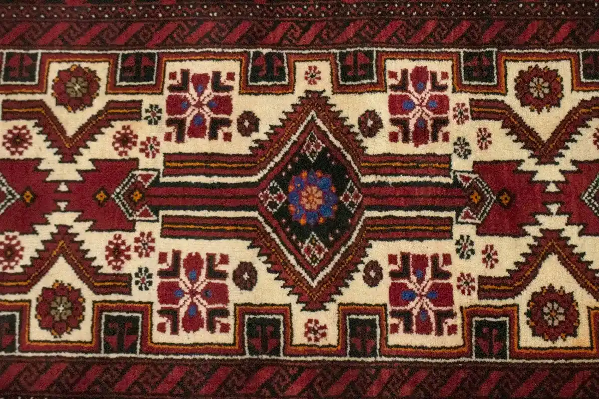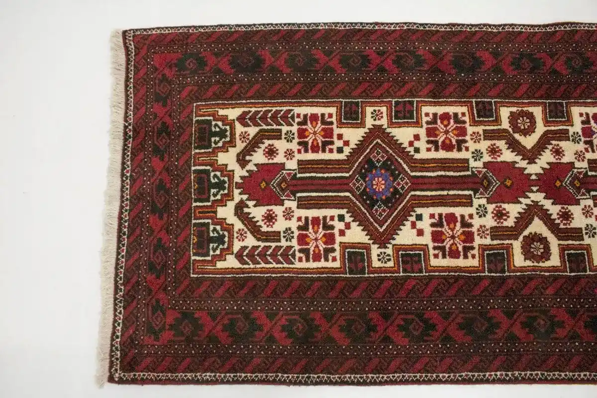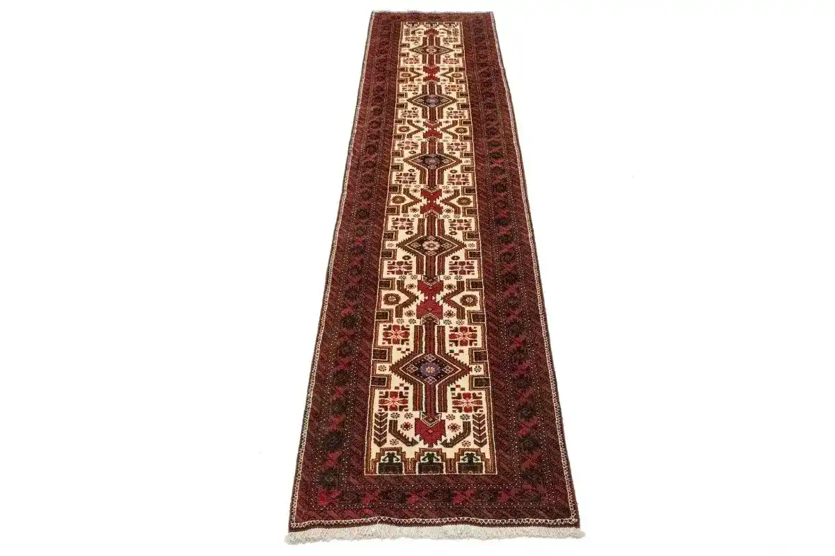 Vintage Ivory Tribal 3X13 Balouch Persian Runner Rug