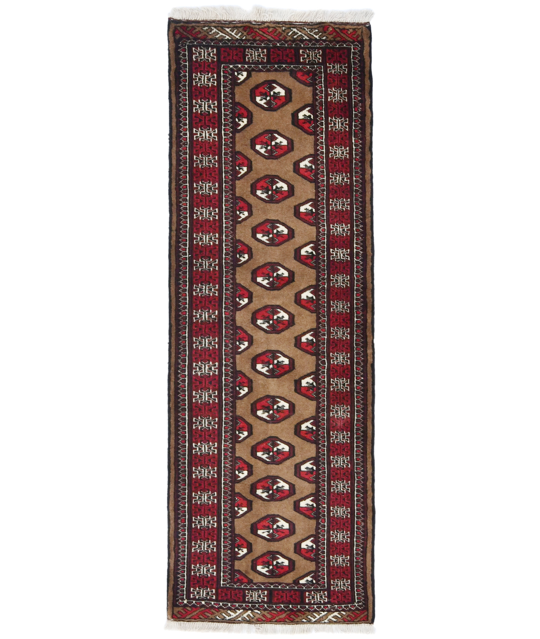Vintage Khaki Tribal 2X6 Turkoman Persian Runner Rug