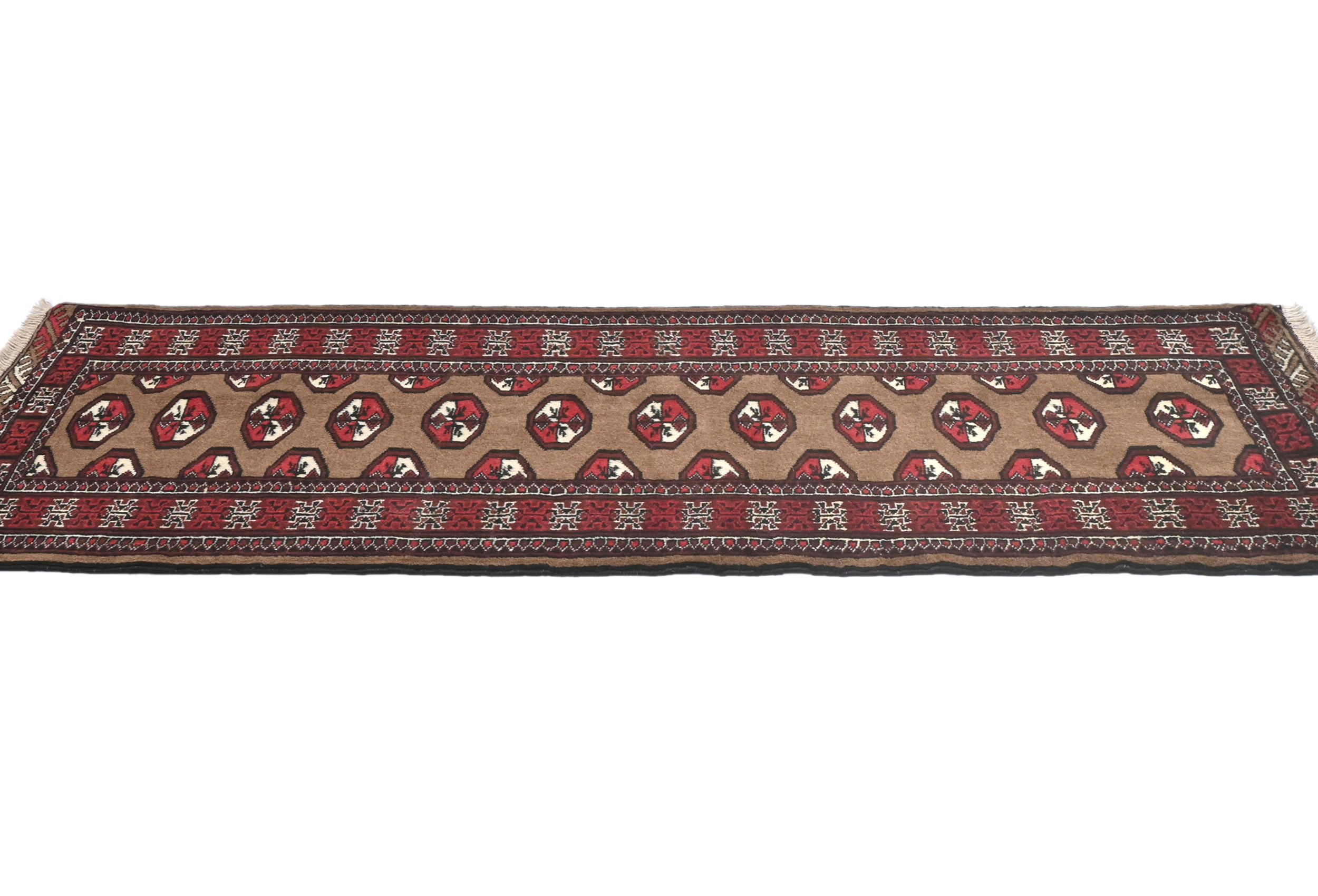 Handmade vintage 2X6 khaki Persian runner made with vegetable dyes (fine wool pile and cotton foundation), superior knot count, and alluring ancient designs. This Oriental runner never will go out of style and would be among your most valuable treasures.
