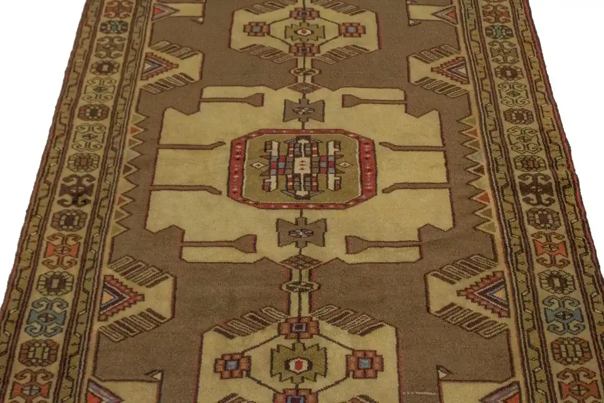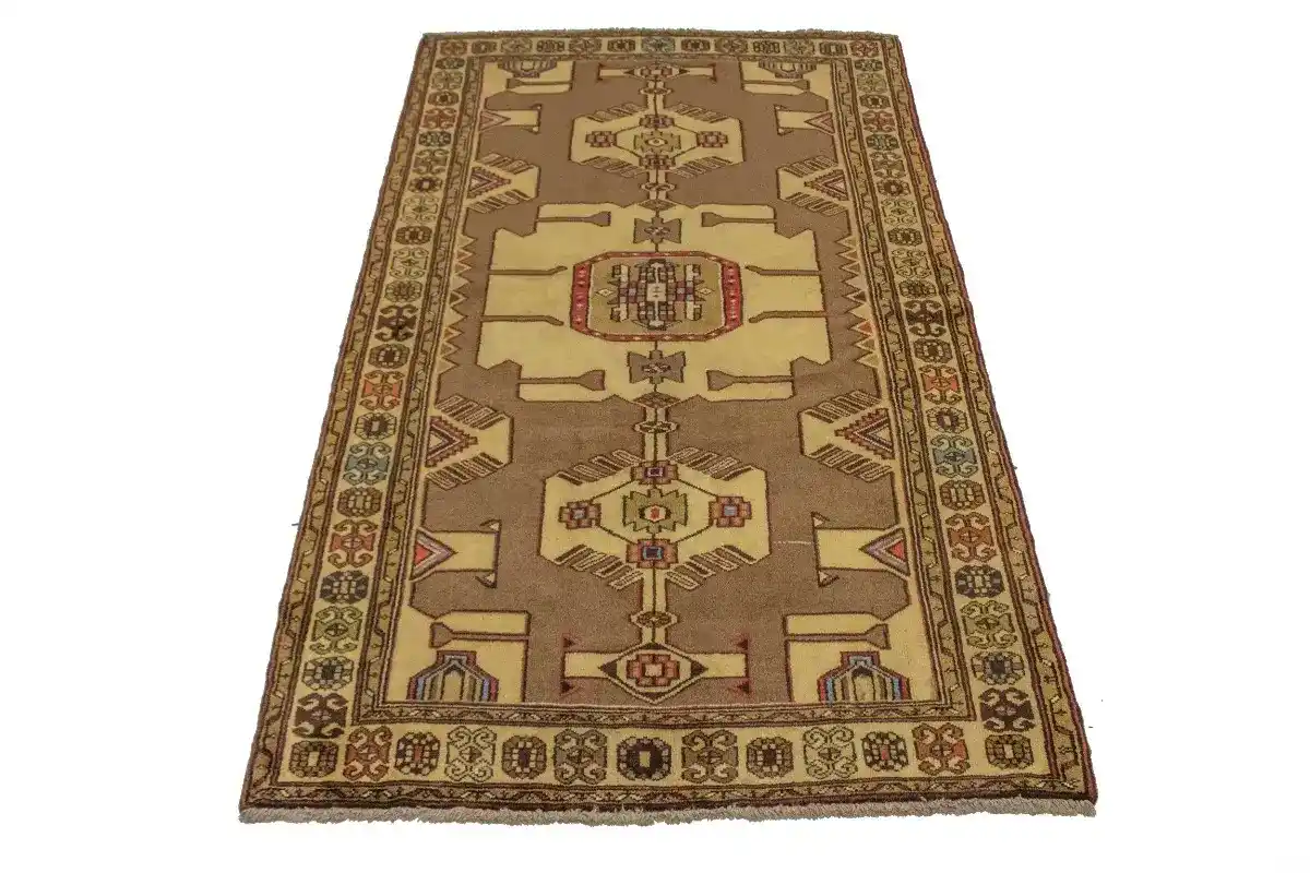 Hand Knotted 4X7 khaki vintage Persian rug made with vegetable dyes (fine wool pile and cotton foundation), exceptional knot count, and alluring ancient designs. This Oriental rug never will go out of style and would be among your most valuable treasures.