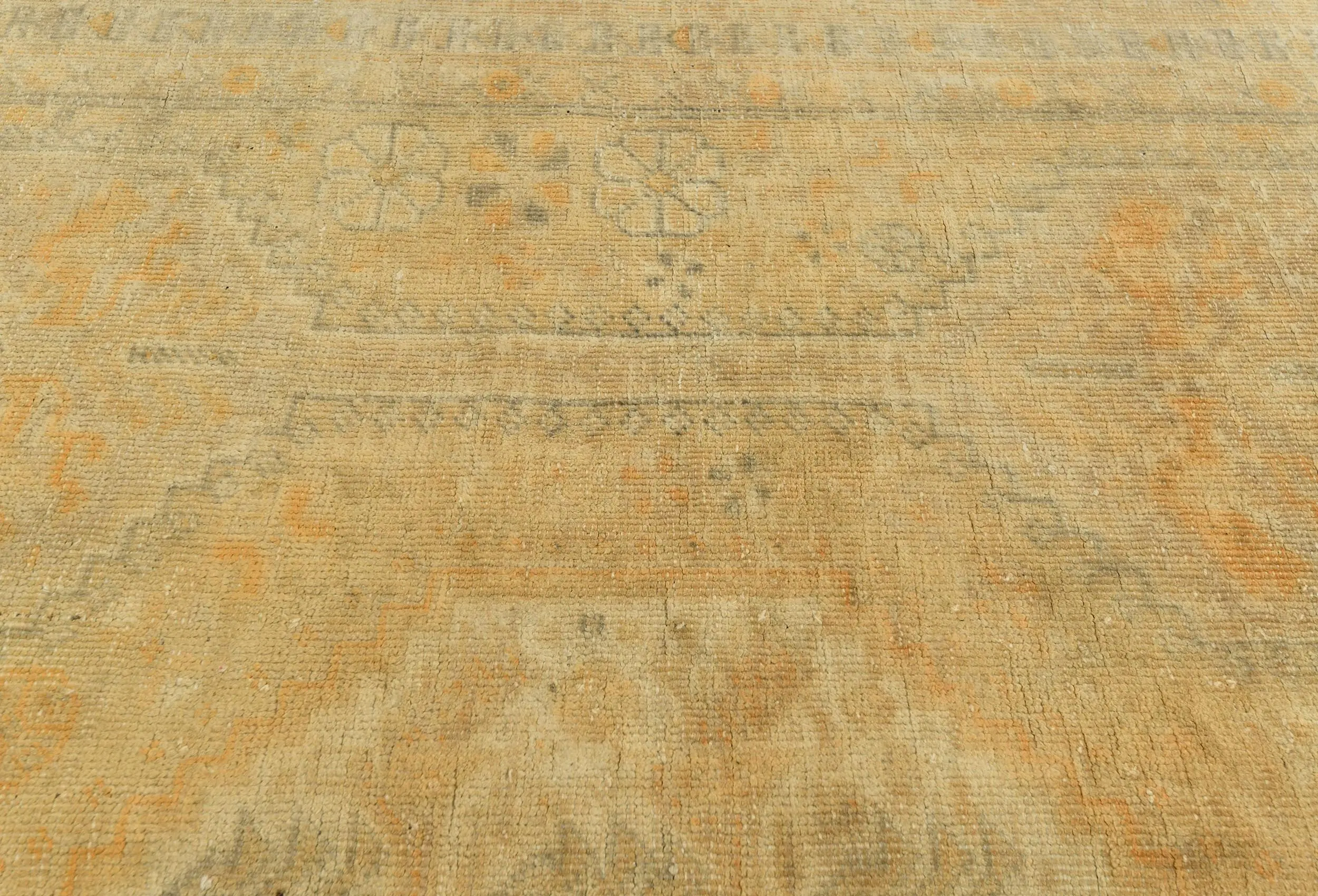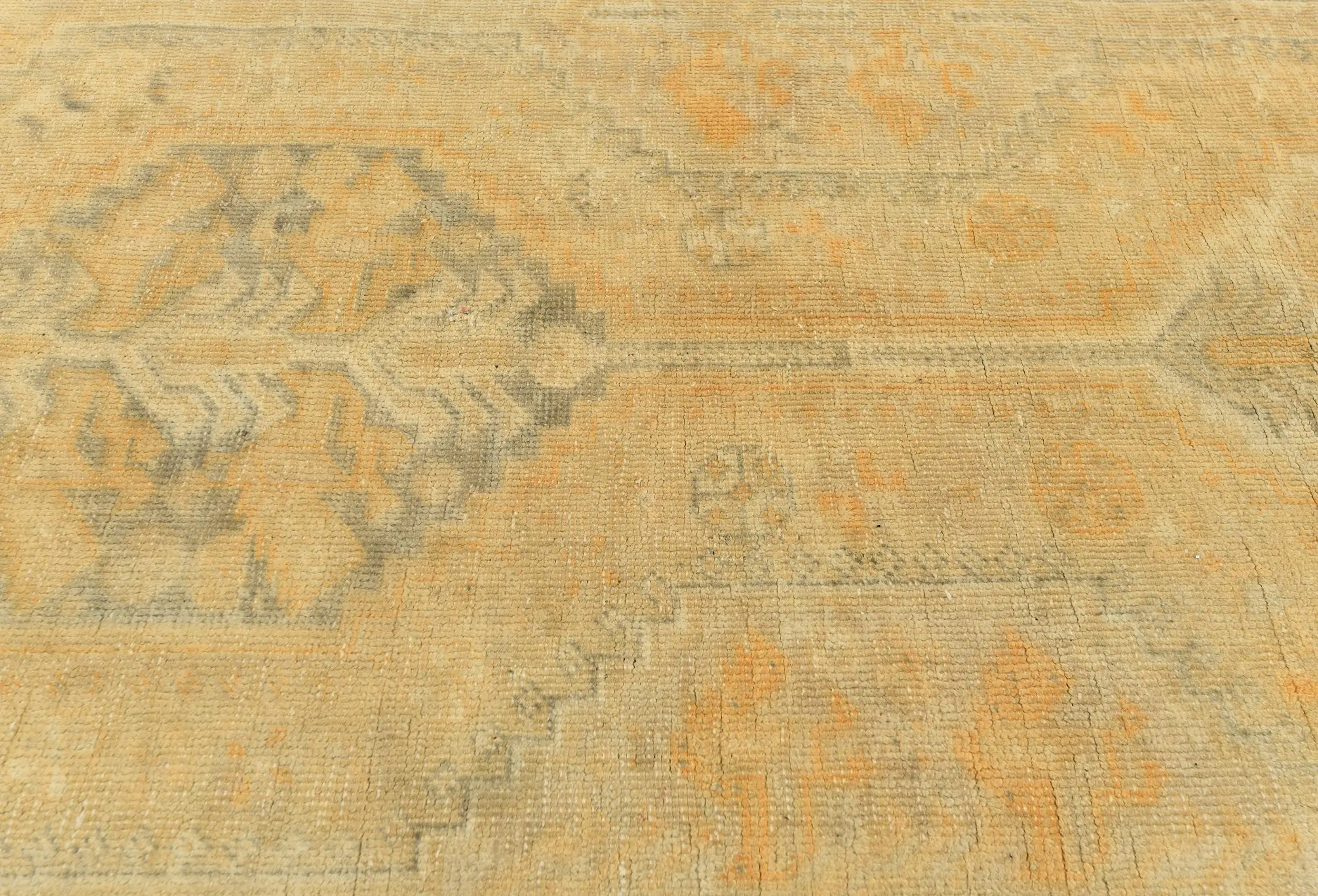 This original 5X9 Beige vintage Persian rug was well-constructed by the hands of master weavers motivated by a variety of stunning artistic designs, to recreate the aged look of the exceptional piece with a richness of color and developed decorative background field. What set this tribal Oriental area rug from the others are the material and dye used (wool pile and cotton foundation), knot count, ancient designs, fantastic grades, and its regional historical connection: it has deep roots, from the story of the people who produced it to the meaning of the symbols and colors displayed across its canvas that have been praised for centuries. This home décor carpet will be completely cozy and inviting that never will go out of style! Also, this Oriental rug would be among your most valuable treasures, it is a great investment that increase in value over time, and it will last a lifetime because was woven with high-quality, all-natural wool; it won’t rip, tear, or shed. Eco-friendly, opulent yet affordable; this Persian rug will give you an extra pop of character to help define your home environment with elegance and warmth that will capture the eyes and attention of your audience (homeowners, designers, decorators, family and friends). EB-7529