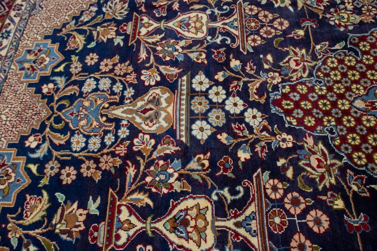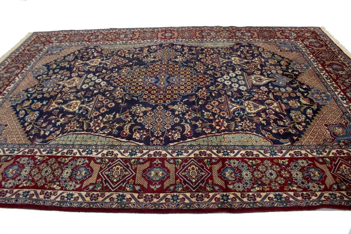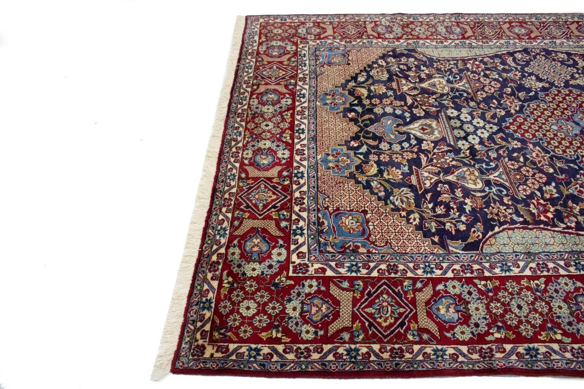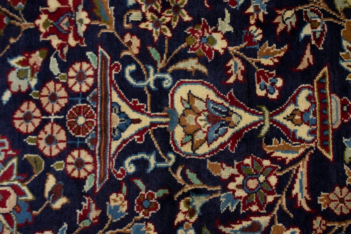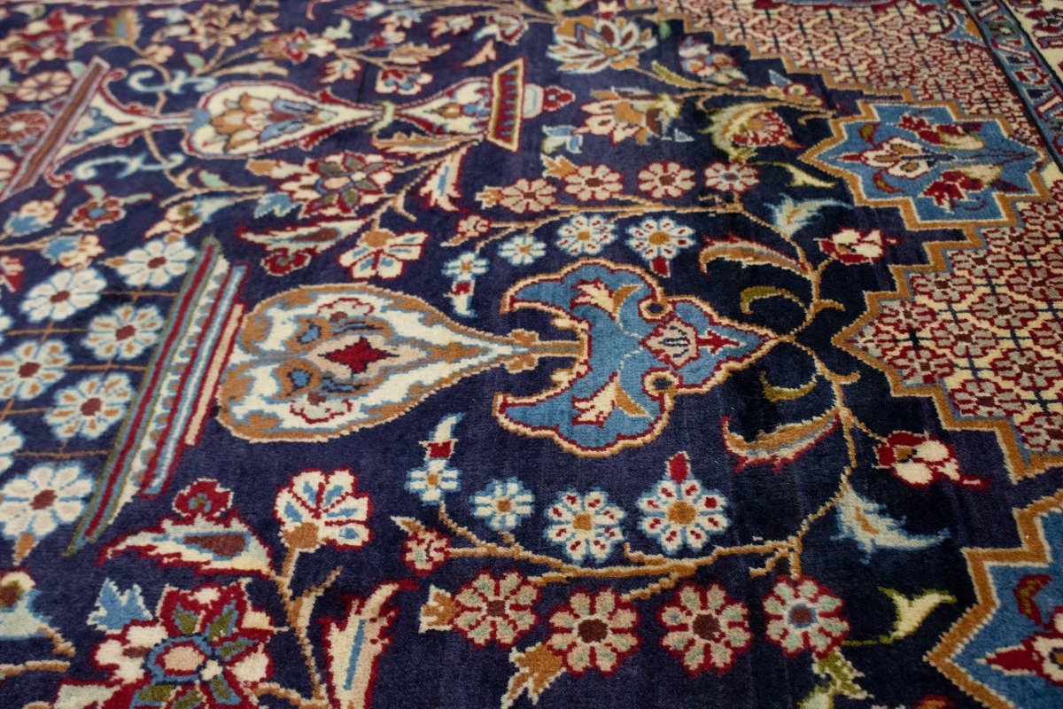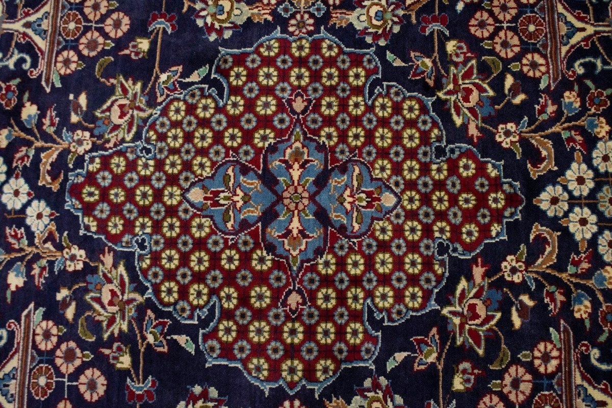 Hand Knotted semi antique 8X12 navy blue traditional Persian rug made with natural dyes (fine wool pile and cotton foundation), superior knot count, and alluring ancient designs. This Oriental rug never will go out of style and would be among your most valuable treasures.
