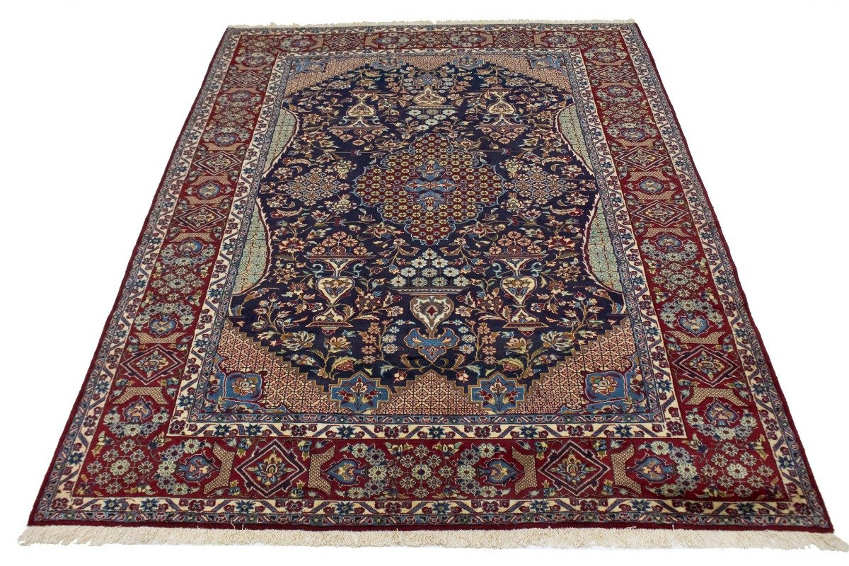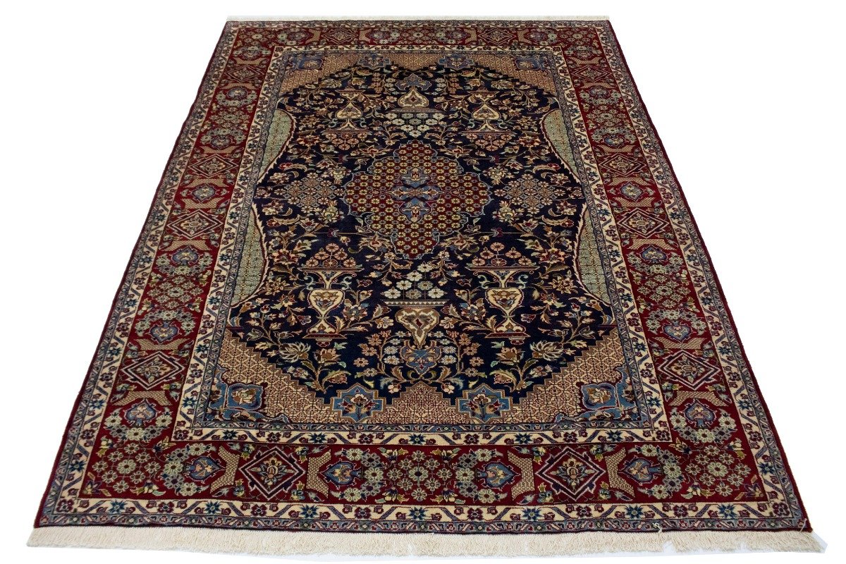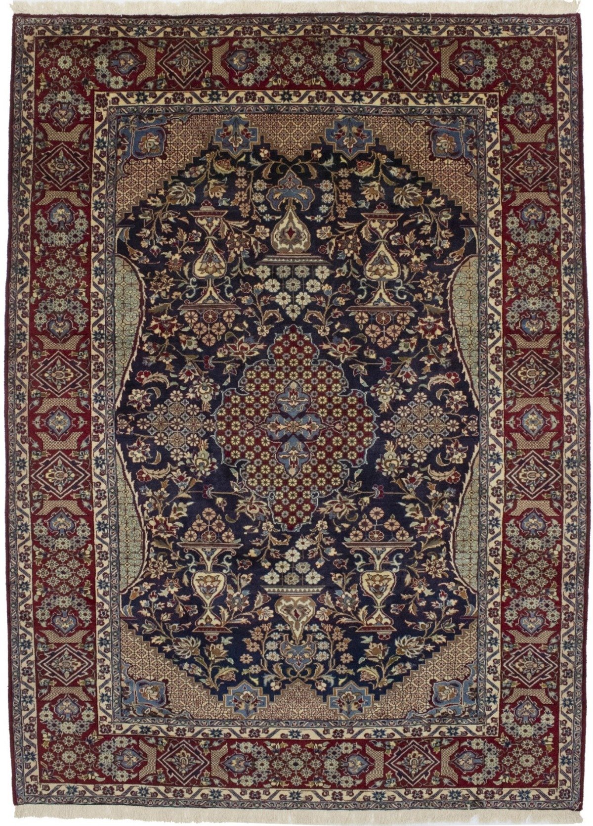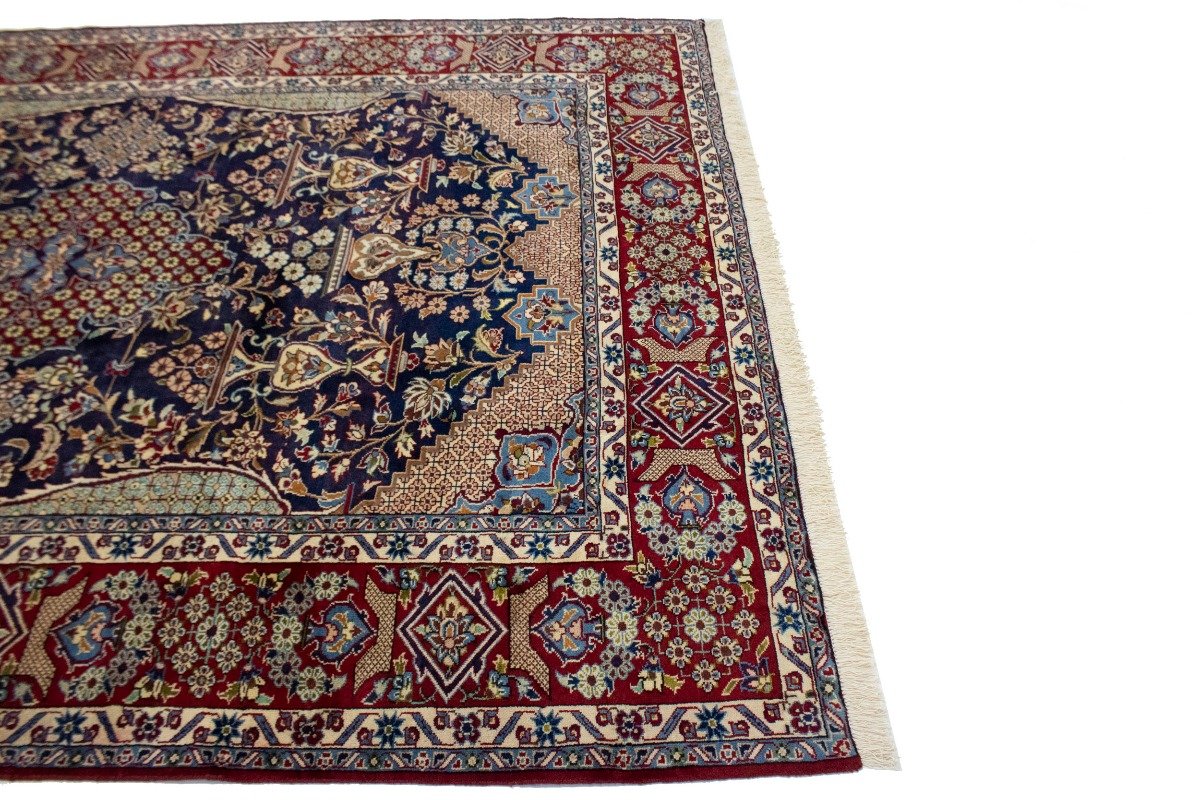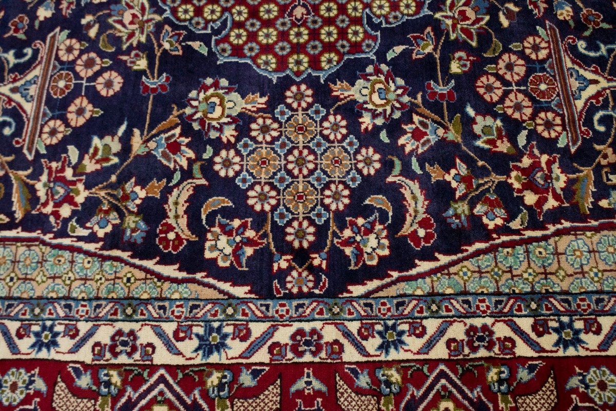 Hand Knotted semi antique 8X12 navy blue traditional Persian rug made with natural dyes (fine wool pile and cotton foundation), superior knot count, and alluring ancient designs. This Oriental rug never will go out of style and would be among your most valuable treasures.