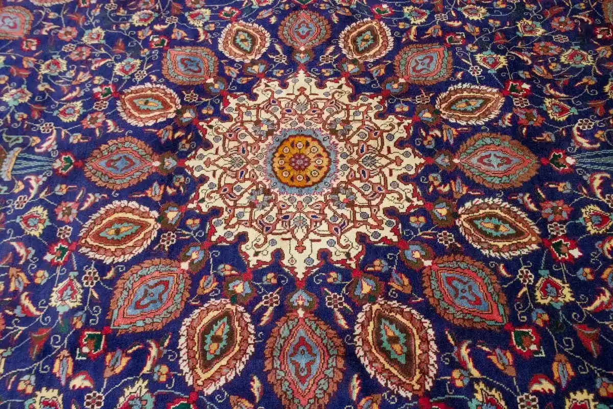 This genuine 10X13 purple-navy vintage Persian rug was made by the hands of talented weavers influenced by a variety of gorgeous symmetrical artistic designs, to recreate the aged look of the unique piece with a richness of color and very balanced floral background field. What set this traditional Oriental area rug from the others are the material and dye used (wool pile and cotton foundation), knot count, antique designs, fantastic grades, and its regional historical connection: it has deep roots, from the story of the people who produced it to the meaning of the symbols and colors displayed across its canvas that have been praised for centuries. This classic home décor carpet will be completely cozy and inviting that never will go out of style! Also, this Oriental rug would be among your most valuable treasures, it is a great investment that accrues value over time, and it will last a lifetime because was woven with high-quality, all-natural wool; it won’t rip, tear, or shed. Eco-friendly, opulent yet affordable; this Persian rug will give you an extra pop of character to help define your home environment with sophistication and warmth that will capture the eyes and attention of your audience (homeowners, designers, decorators, family and friends). EB-3107