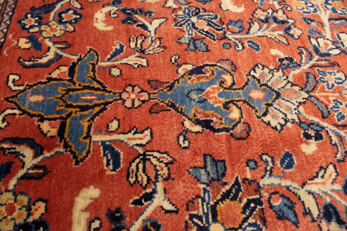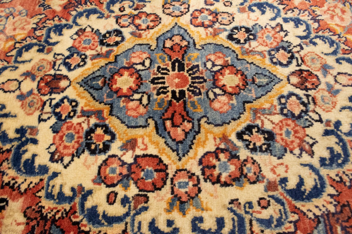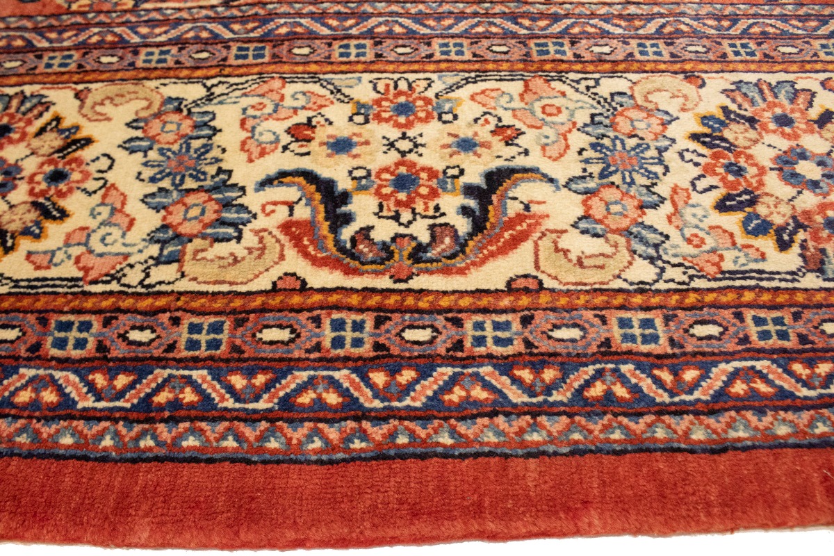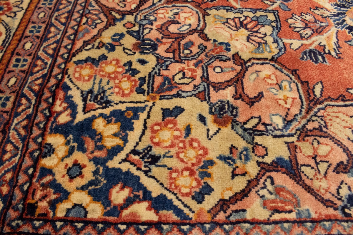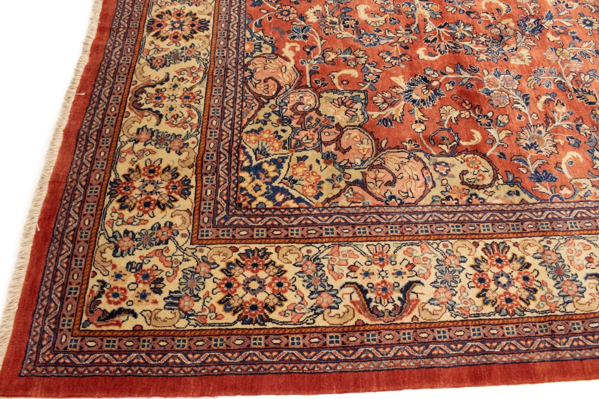 Handmade vintage 11X15 orange-red Persian rug made with vegetable dyes (fine wool pile and cotton foundation), exceptional knot count, and appealing ancient designs. This Oriental rug never will go out of style and would be among your most valuable treasures.