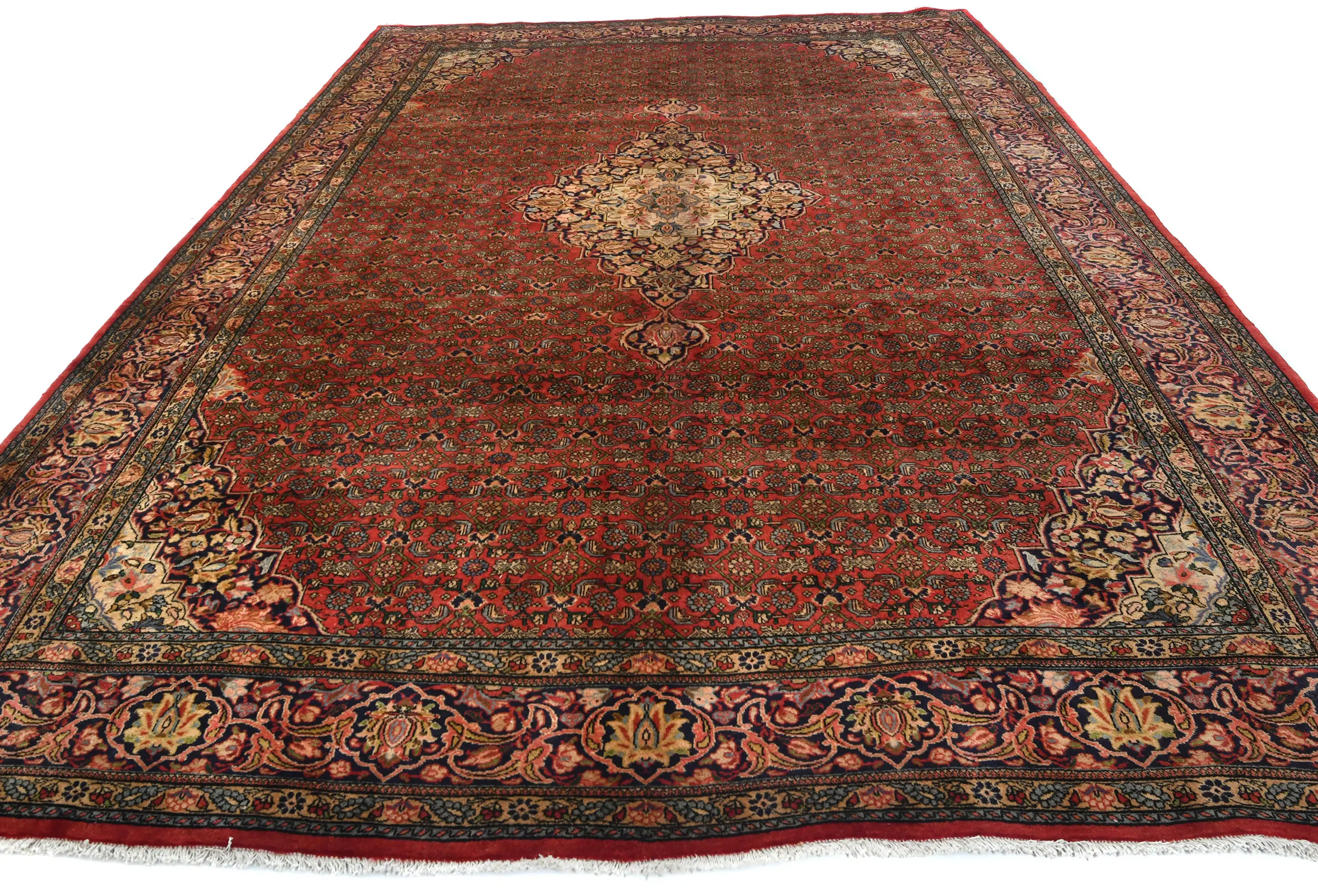This Bidjar 10X13 orange-red Persian rug features a handmade weaving technique, great texture of wool fabric, fascinating floral design appeal and radiant color scheme of red, beige that will surely skip your heart beat once when you get the view of this rug.