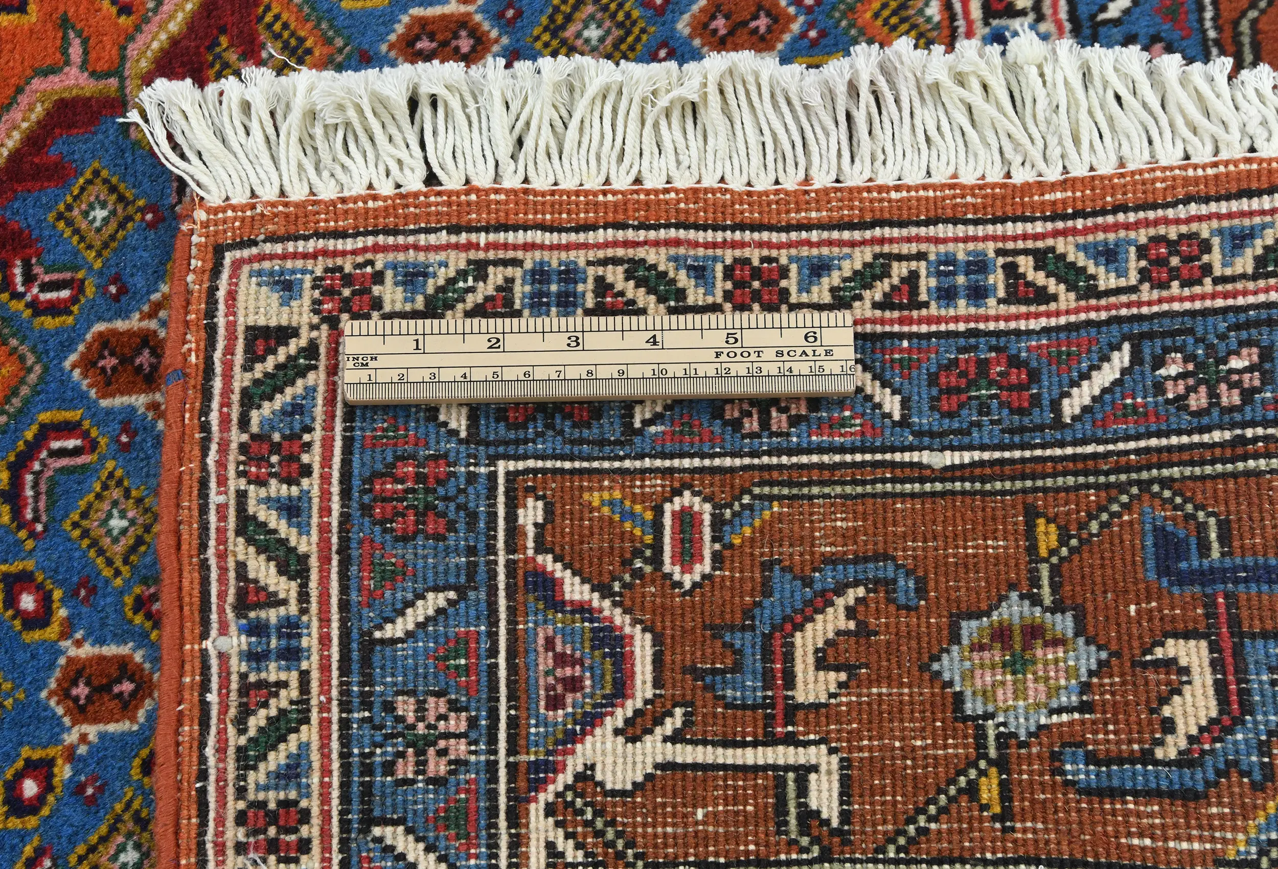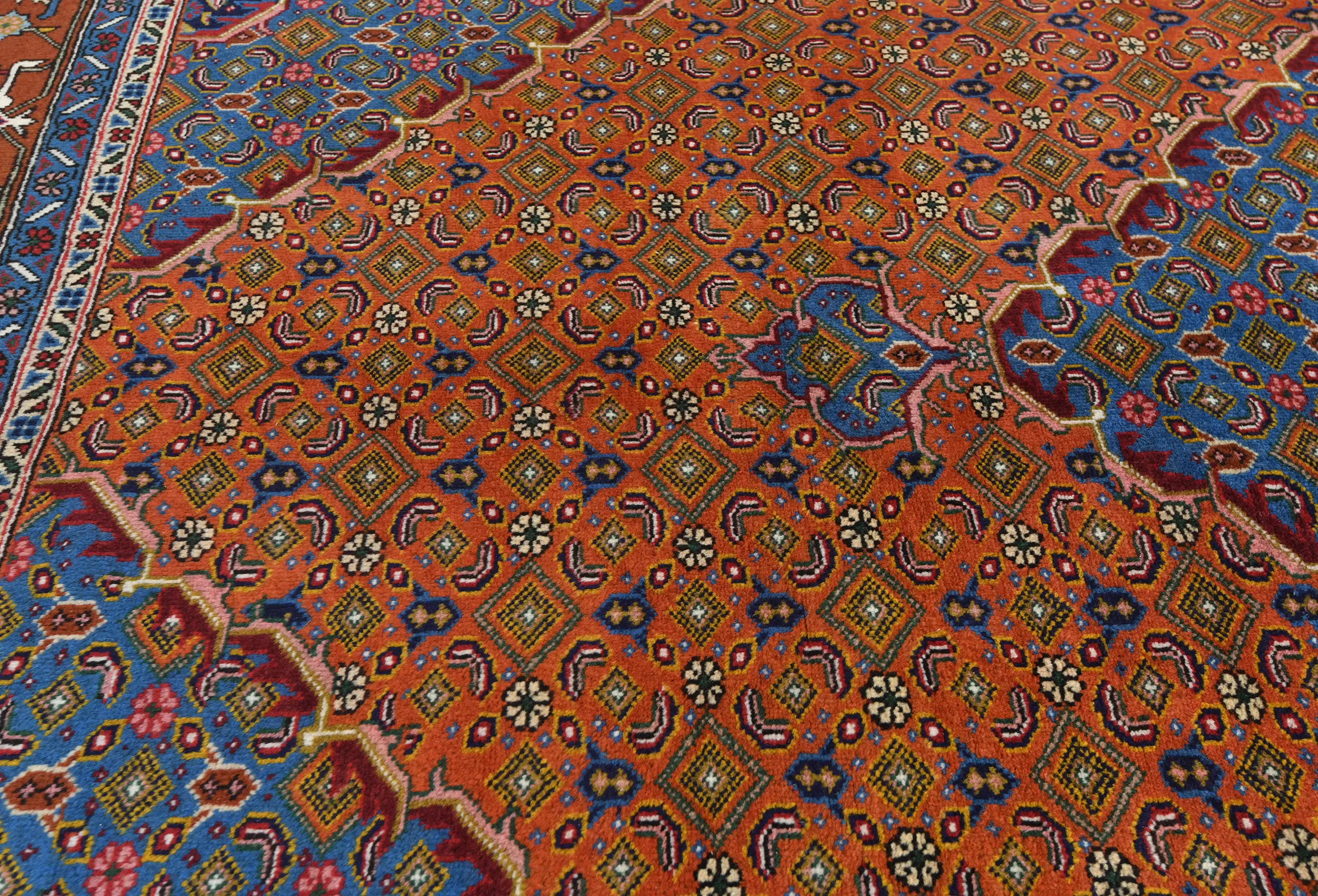 Handmade vintage 6'7X9'4 orange Persian rug made with vegetable dyes (fine wool pile and cotton foundation), exceptional knot count, and appealing ancient designs. This Oriental rug never will go out of style and would be among your most valuable treasures.