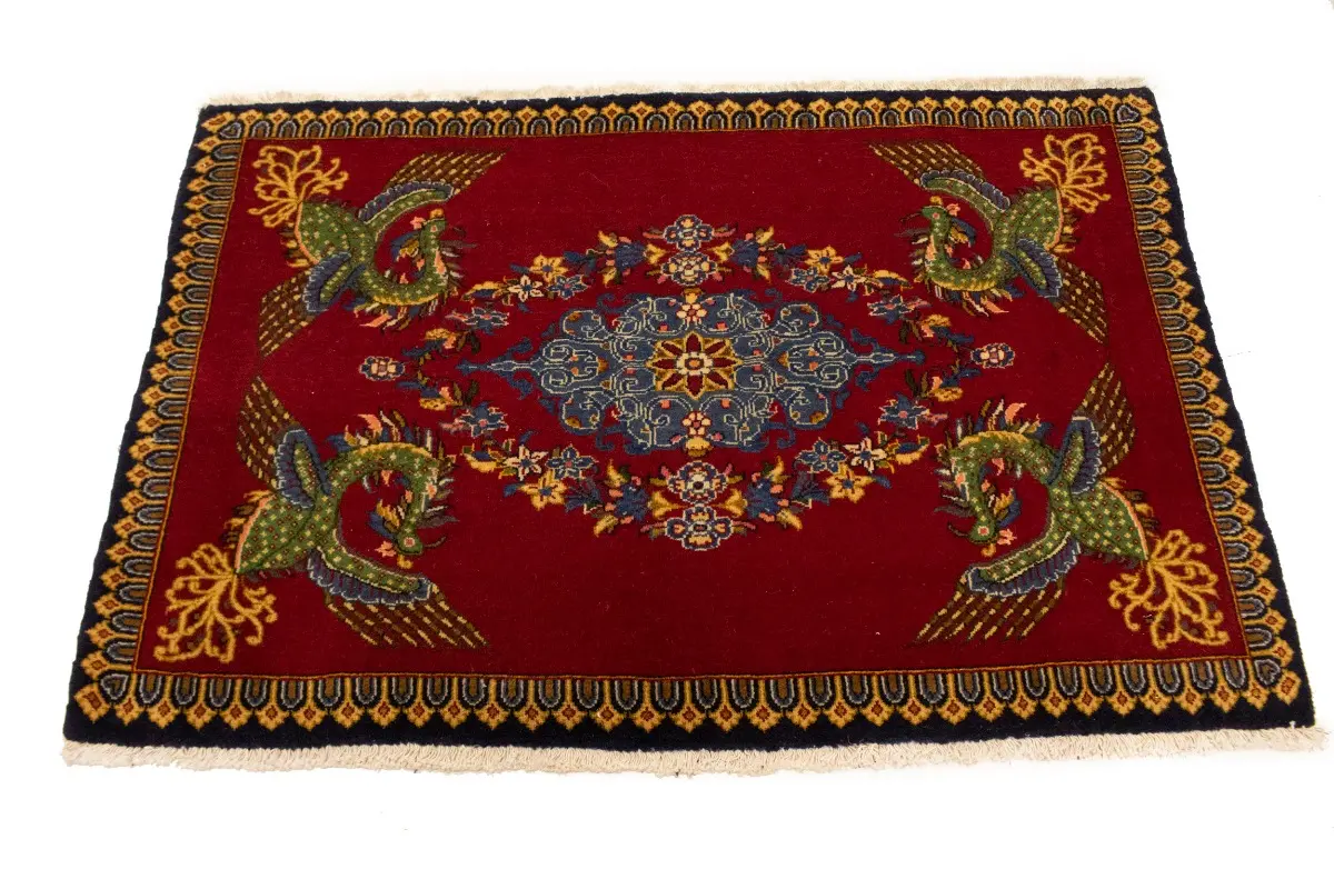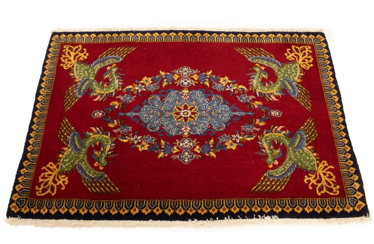 This genuine 2'5X3'8 red vintage Persian rug was made by the hands of gifted weavers inspired by a variety of spectacular artistic designs, to recreate the aged look of the original piece with a richness of color and ornately patterned floral background field. What set this traditional Oriental area rug from the others are the material and dye used (wool pile and cotton foundation), knot count, ancient designs, fantastic grades, and its regional historical connection: it has deep roots, from the story of the people who produced it to the meaning of the symbols and colors displayed across its canvas that have been praised for centuries. This classic home décor carpet will be completely cozy and inviting that never will go out of style! Also, this Oriental rug would be among your most valuable treasures, it is a great investment that accrues value over time, and it will last for generations because was woven with high-quality, all-natural wool; it won’t rip, tear, or shed. Environmentally friendly, opulent yet affordable; this Persian rug will give you a thorough amount of character to help define your living space with elegance and warmth that will capture the eyes and attention of your audience (homeowners, designers, decorators, family and friends). EB-5546