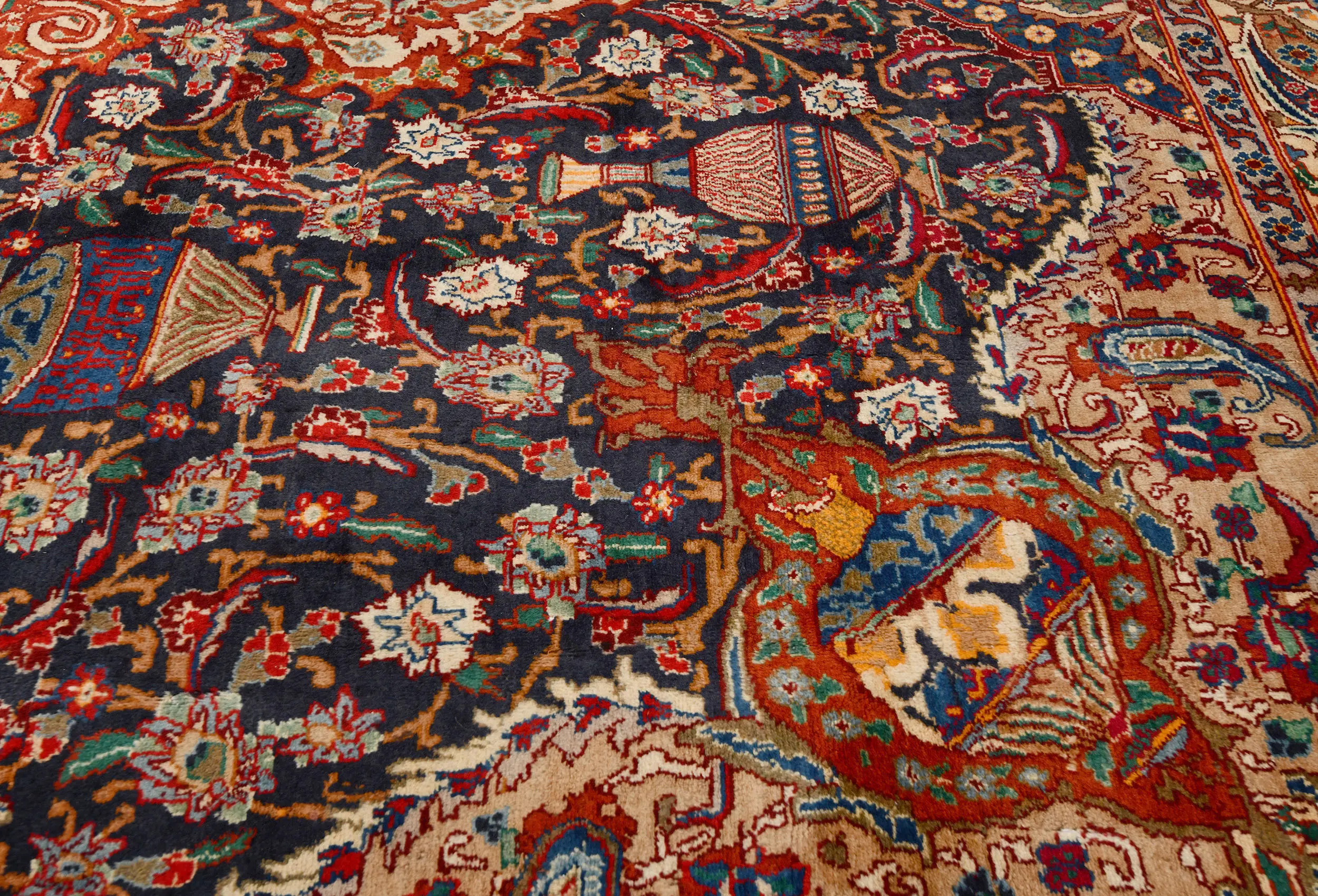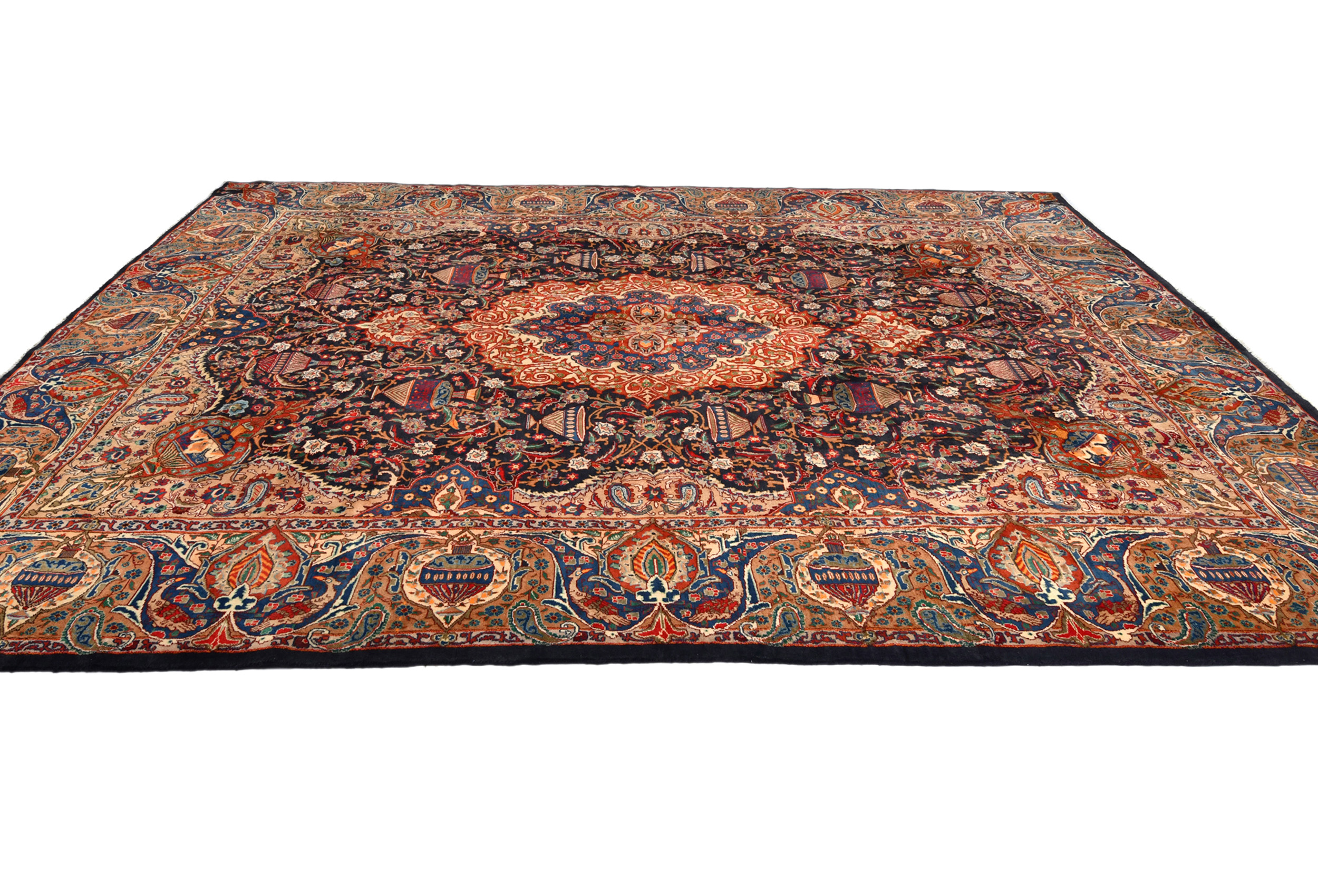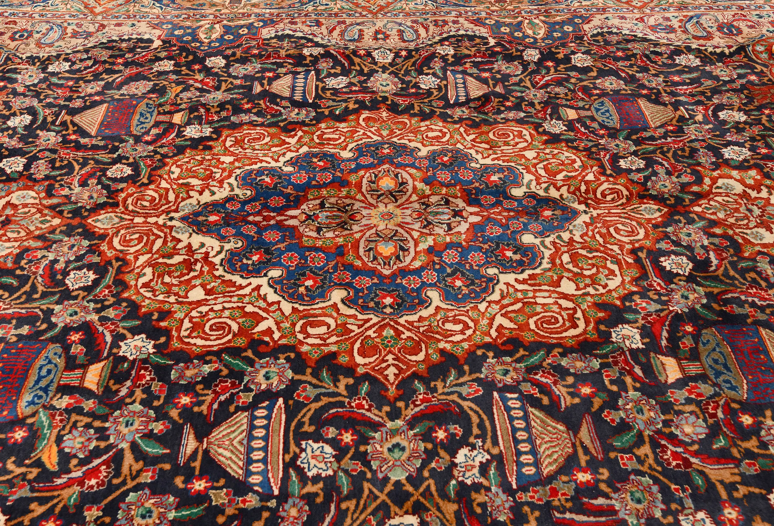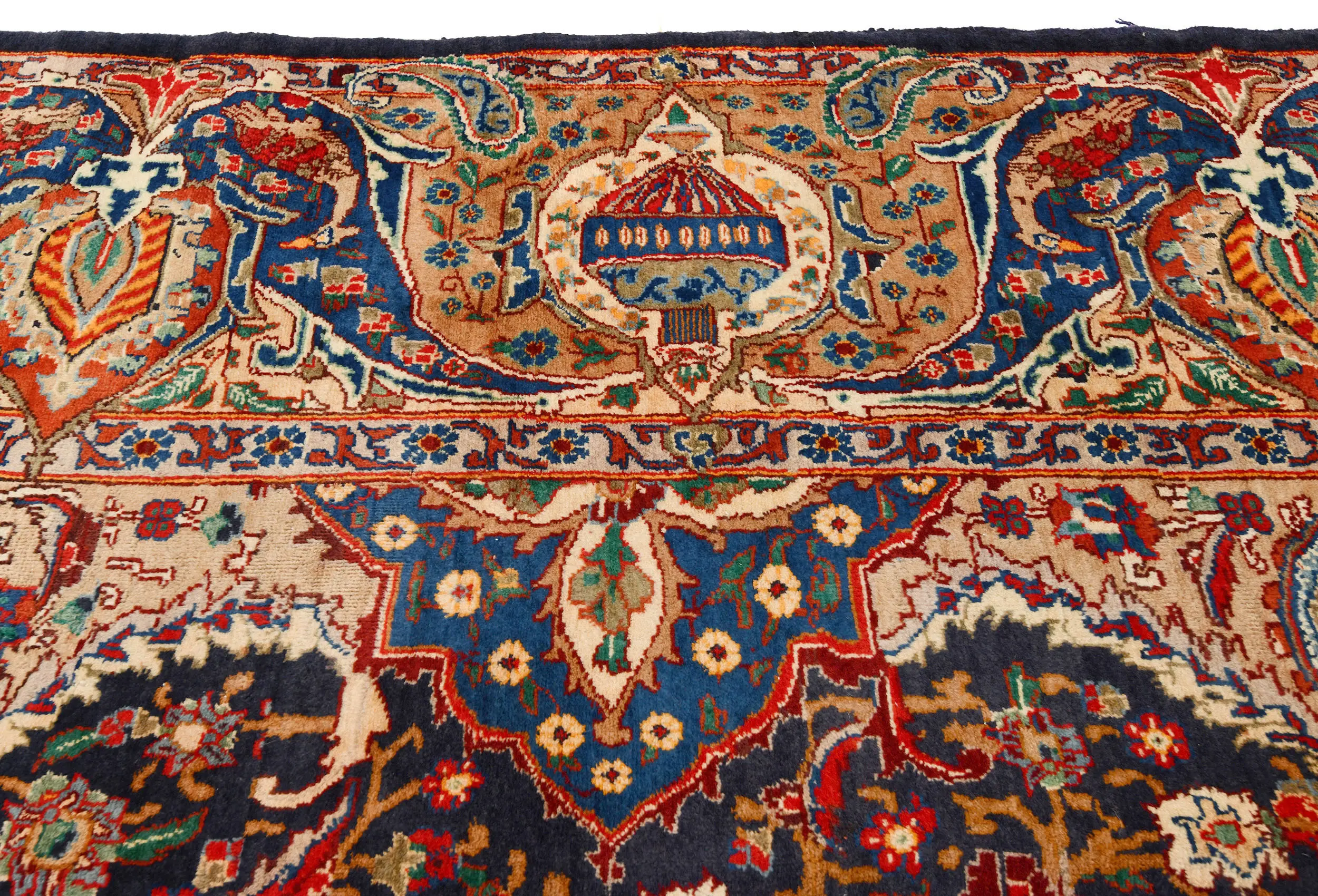 Vintage Purple-navy Pictorial 10X13 Kashmar Persian Rug