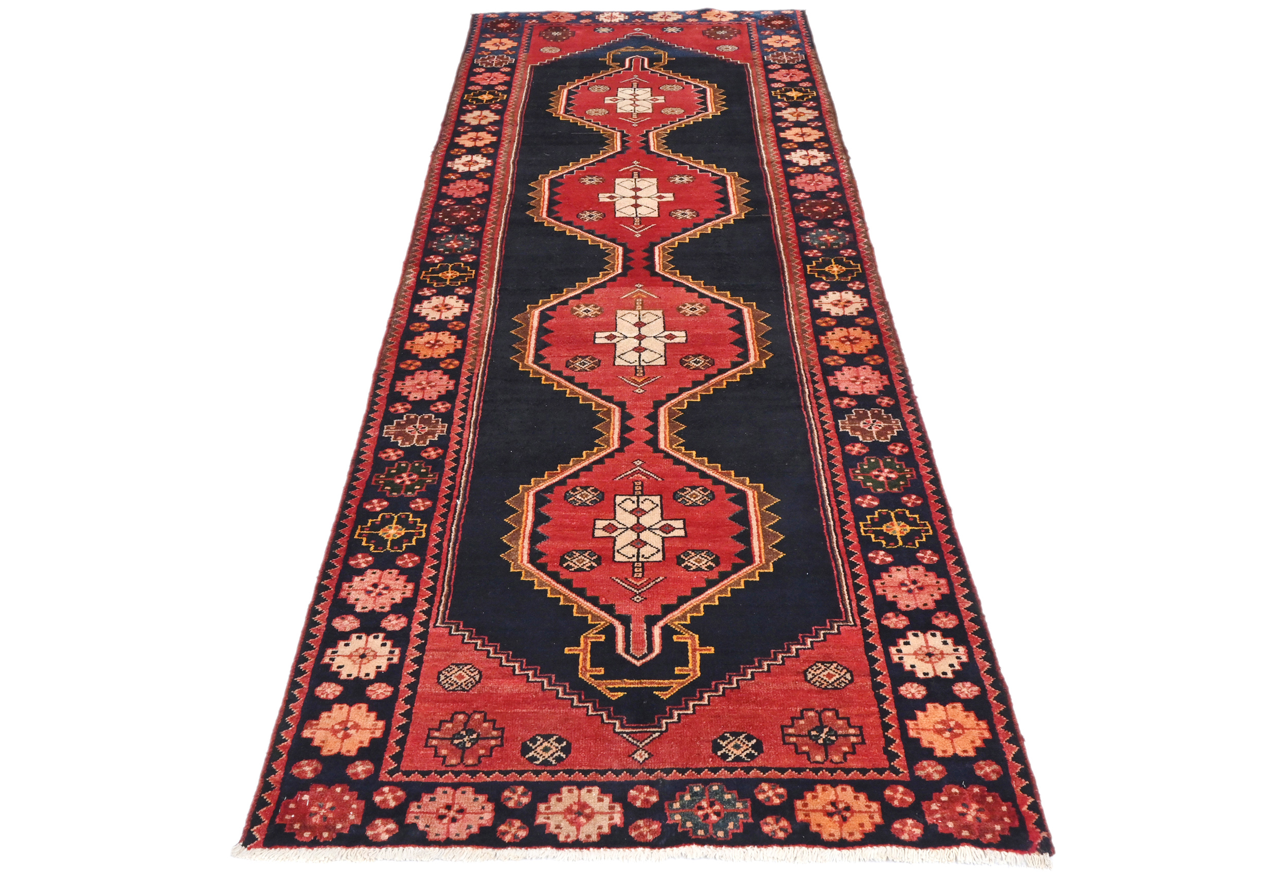 Vintage Purple-navy Tribal 3'5X9'8 Hamedan Persian Runner Rug