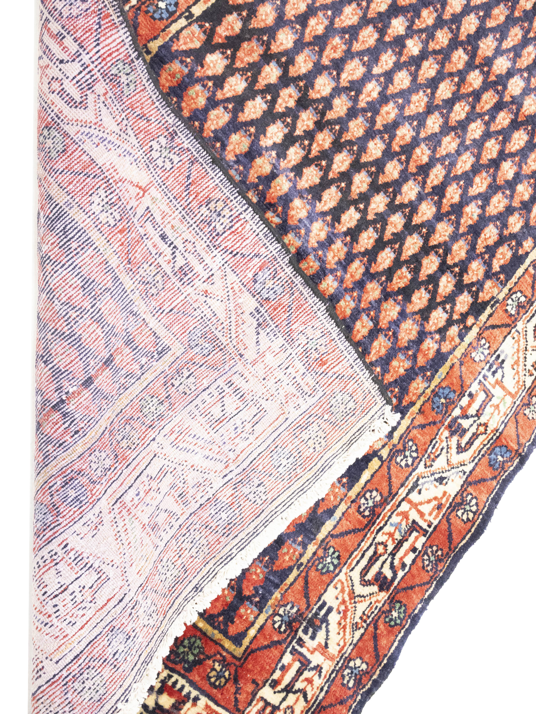 This genuine 3'6X10 Purple-navy vintage Persian runner was made by the hands of talented weavers influenced by a variety of gorgeous symmetrical artistic designs, to recreate the aged look of the unique piece with a richness of color and very balanced background field. What set this tribal Oriental area runner from the others are the material and dye used (wool pile and cotton foundation), knot count, antique designs, fantastic grades, and its regional historical connection: it has deep roots, from the story of the people who produced it to the meaning of the symbols and colors displayed across its canvas that have been praised for centuries. This home décor carpet will be completely cozy and inviting that never will go out of style! Also, this Oriental runner would be among your most valuable treasures, it is a great investment that accrues value over time, and it will last a lifetime because was woven with high-quality, all-natural wool; it won’t rip, tear, or shed. Eco-friendly, opulent yet affordable; this Persian rug will give you an extra pop of character to help define your home environment with sophistication and warmth that will capture the eyes and attention of your audience (homeowners, designers, decorators, family and friends). EB-1612