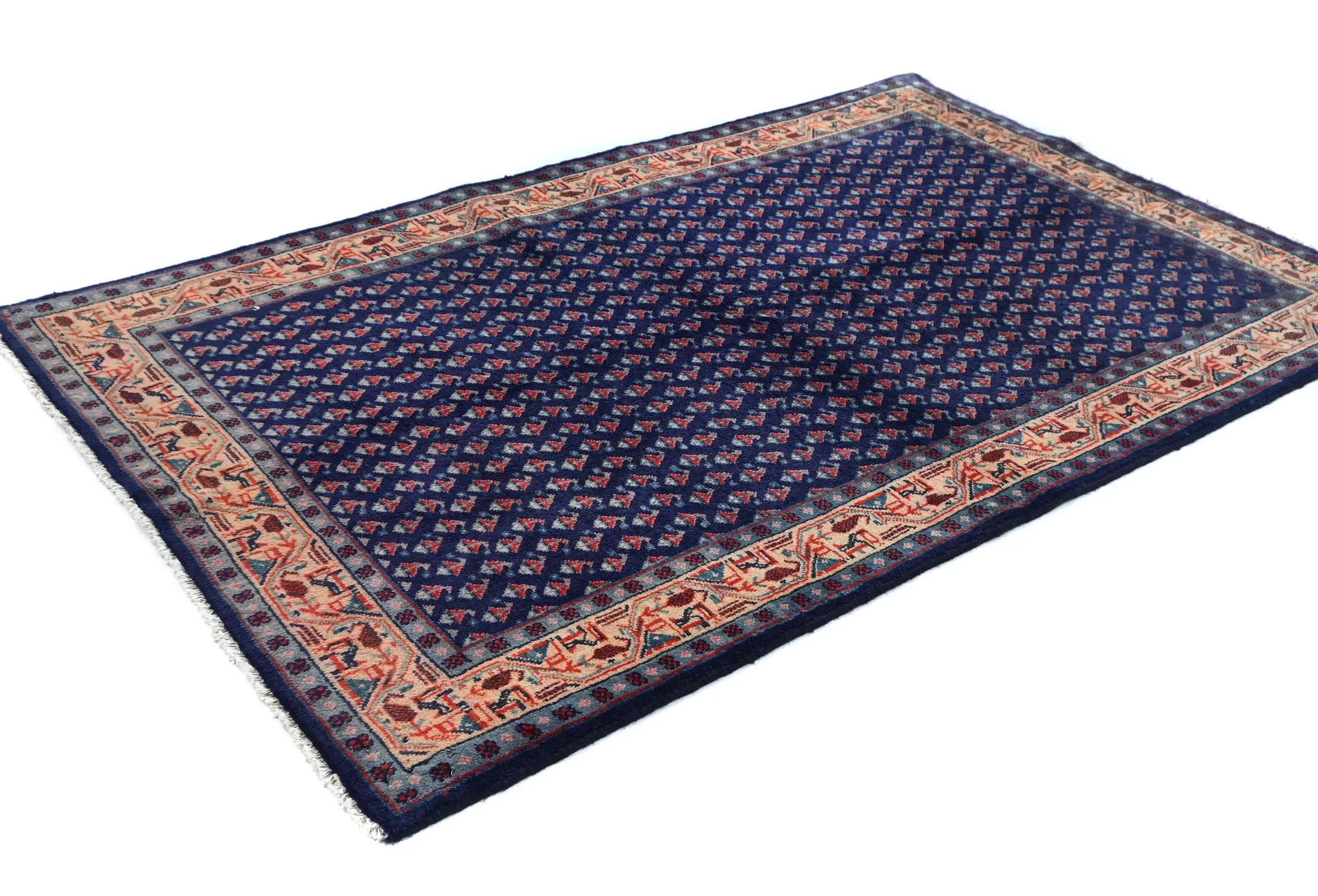 Handmade vintage 3X5 Purple-navy Persian rug made with vegetable dyes (fine wool pile and cotton foundation), superior knot count, and alluring ancient designs. This Oriental rug never will go out of style and would be among your most valuable treasures.