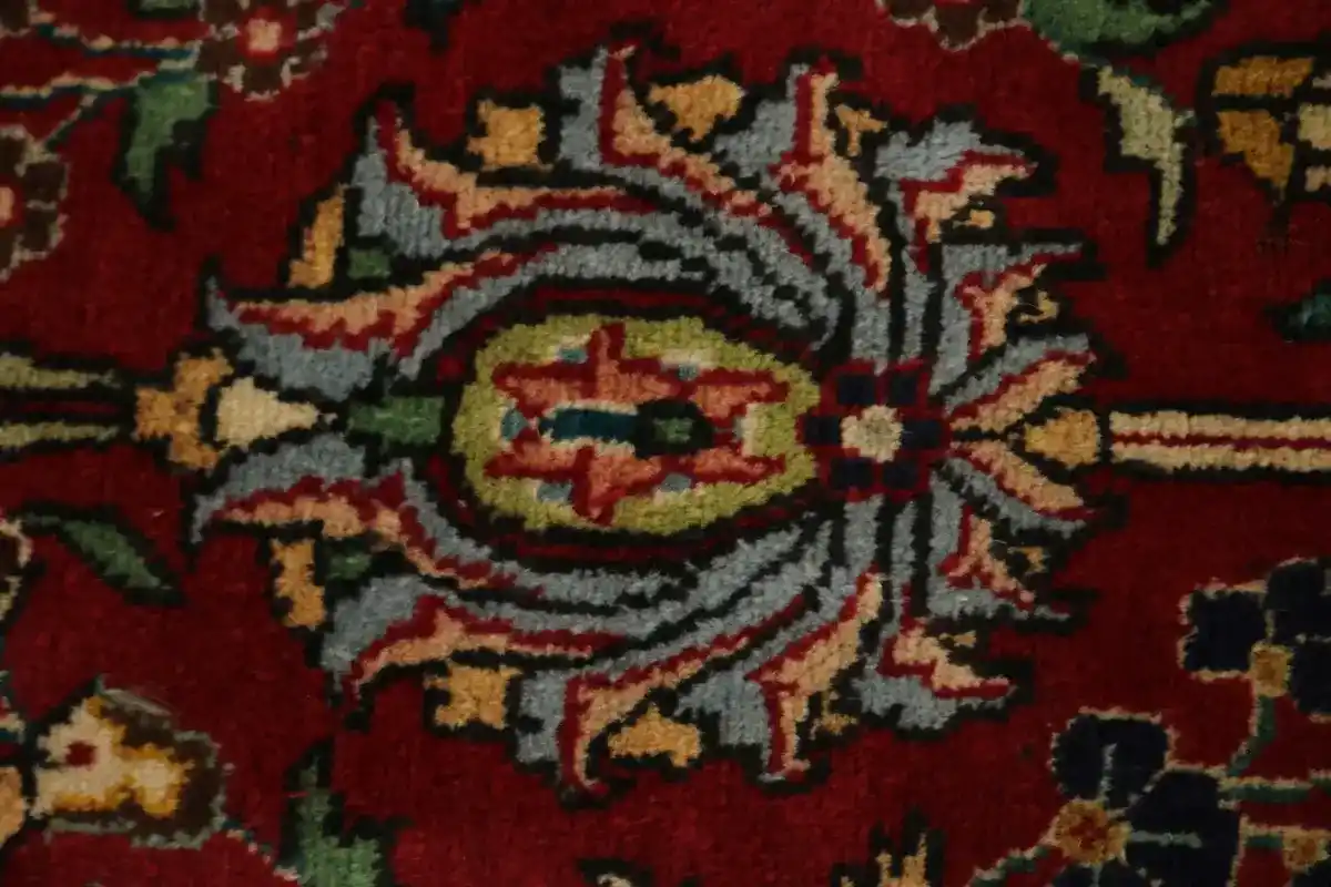 Handmade vintage Persian rug made with vegetable dyes (fine wool pile and cotton foundation), exceptional knot count, and appealing ancient designs. This Oriental rug never will go out of style and would be among your most valuable treasures.