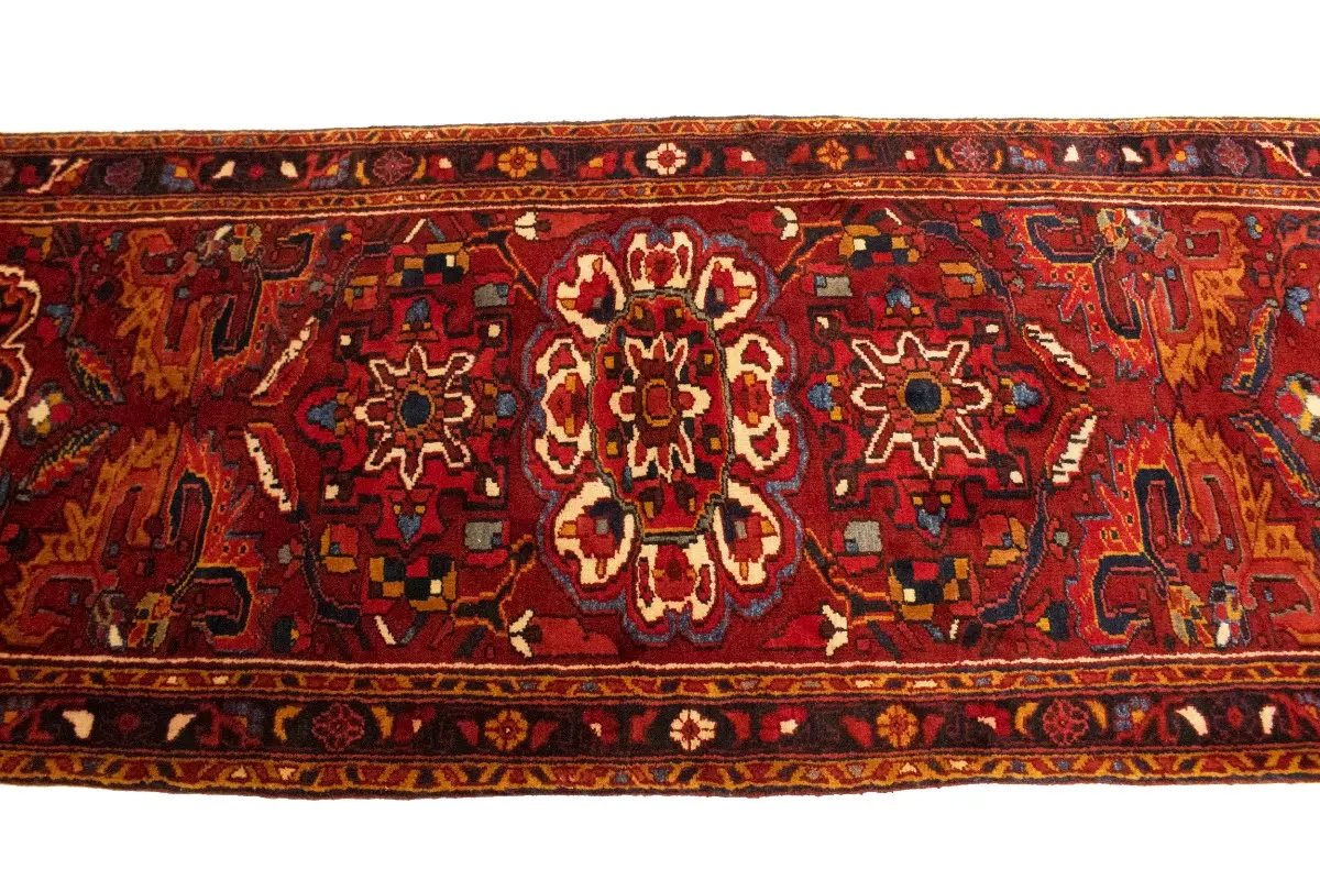 Vintage Red Floral 3'5X11'3 Heriz Goravan Persian Rug