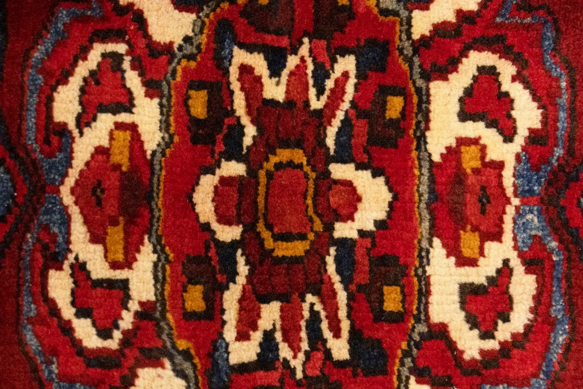 This authentic 3'5X11'3 red vintage Persian runner was masterly knotted by the hands of weavers inspired by a variety of wonderful artistic designs, to recreate the aged look of the original piece with a richness of color and intricate patterned background field. What set this tribal Oriental area runner from the others are the material and dye used (wool pile and cotton foundation), knot count, antique designs, fantastic grades, and its regional historical connection: it has deep roots, from the story of the people who produced it to the meaning of the symbols and colors displayed across its canvas that have been praised for centuries. This home décor carpet will be completely cozy and inviting that never will go out of style! Also, this Oriental runner would be among your most valuable treasures, it is a great investment that accrues value over time, and it will last for generations because was woven with high-quality, all-natural wool; it won’t rip, tear, or shed. Environmentally friendly, opulent yet affordable; this Persian rug will give you a thorough amount of character to help define your living space with luxury and warmth that will capture the eyes and attention of your audience (homeowners, designers, decorators, family and friends). EB-5556