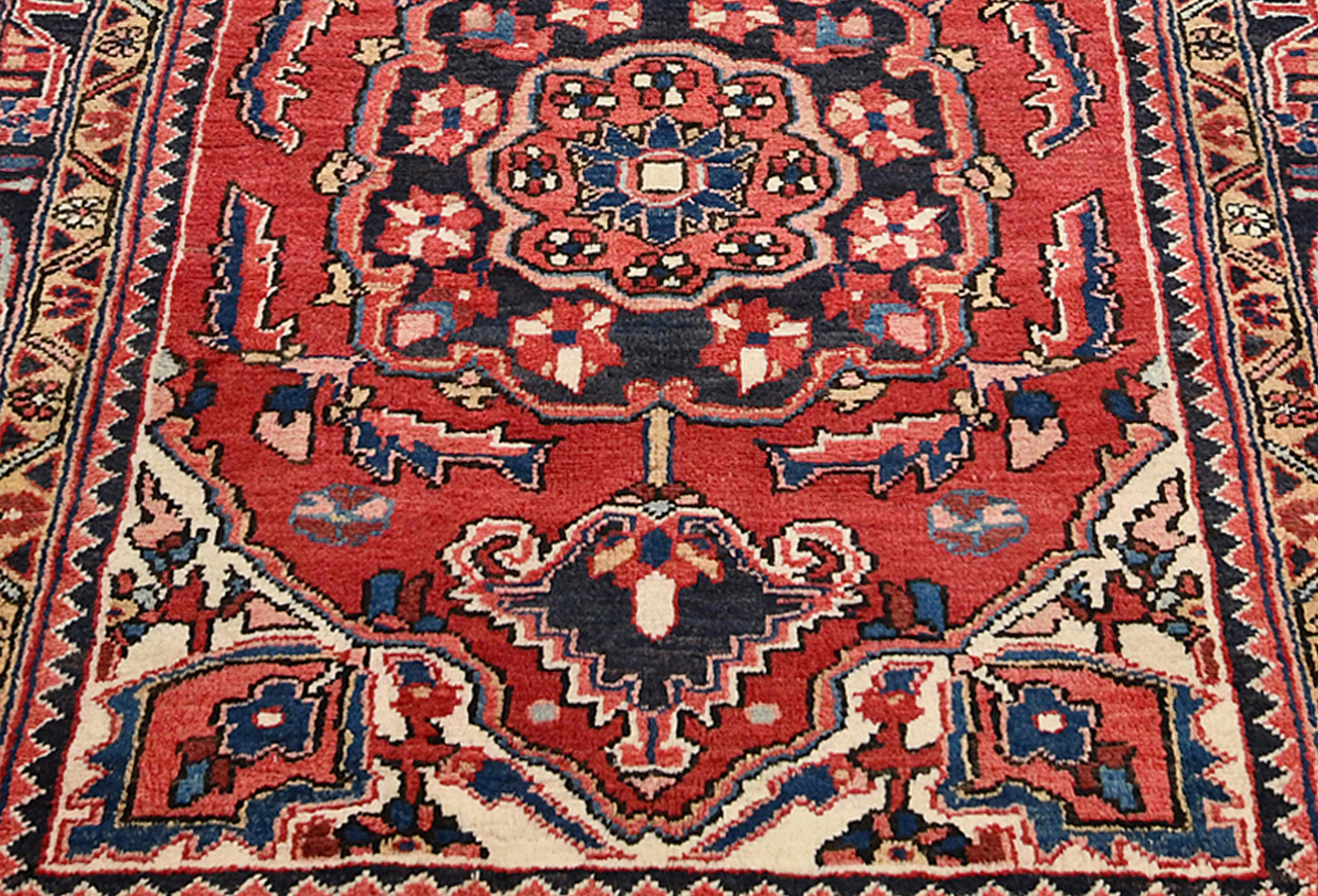 This authentic 3'6X11'9 red vintage Persian runner was masterly knotted by the hands of weavers inspired by a variety of wonderful artistic designs, to recreate the aged look of the original piece with a richness of color and intricate patterned background field. What set this tribal Oriental area runner from the others are the material and dye used (wool pile and cotton foundation), knot count, antique designs, fantastic grades, and its regional historical connection: it has deep roots, from the story of the people who produced it to the meaning of the symbols and colors displayed across its canvas that have been praised for centuries. This home décor carpet will be completely cozy and inviting that never will go out of style!