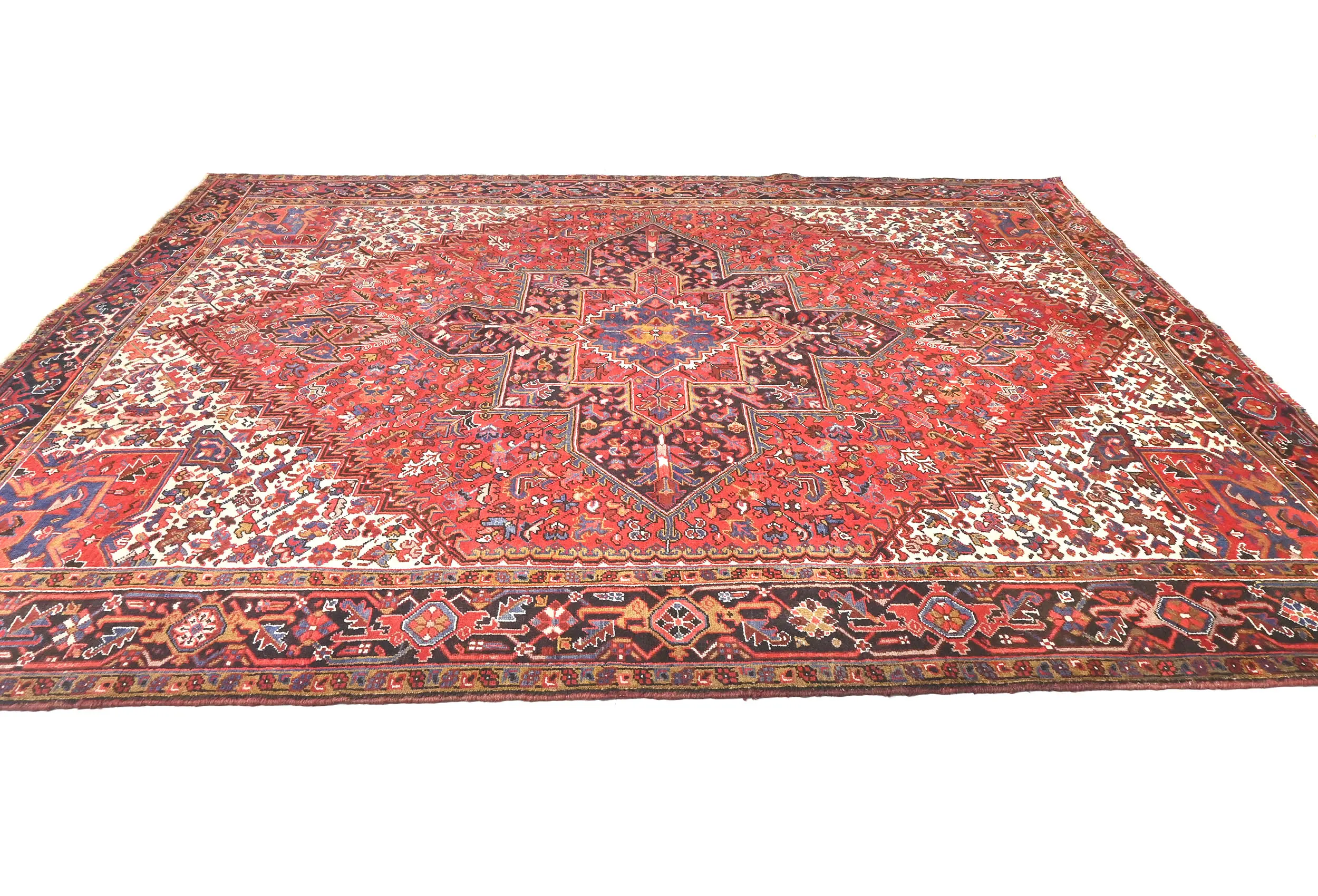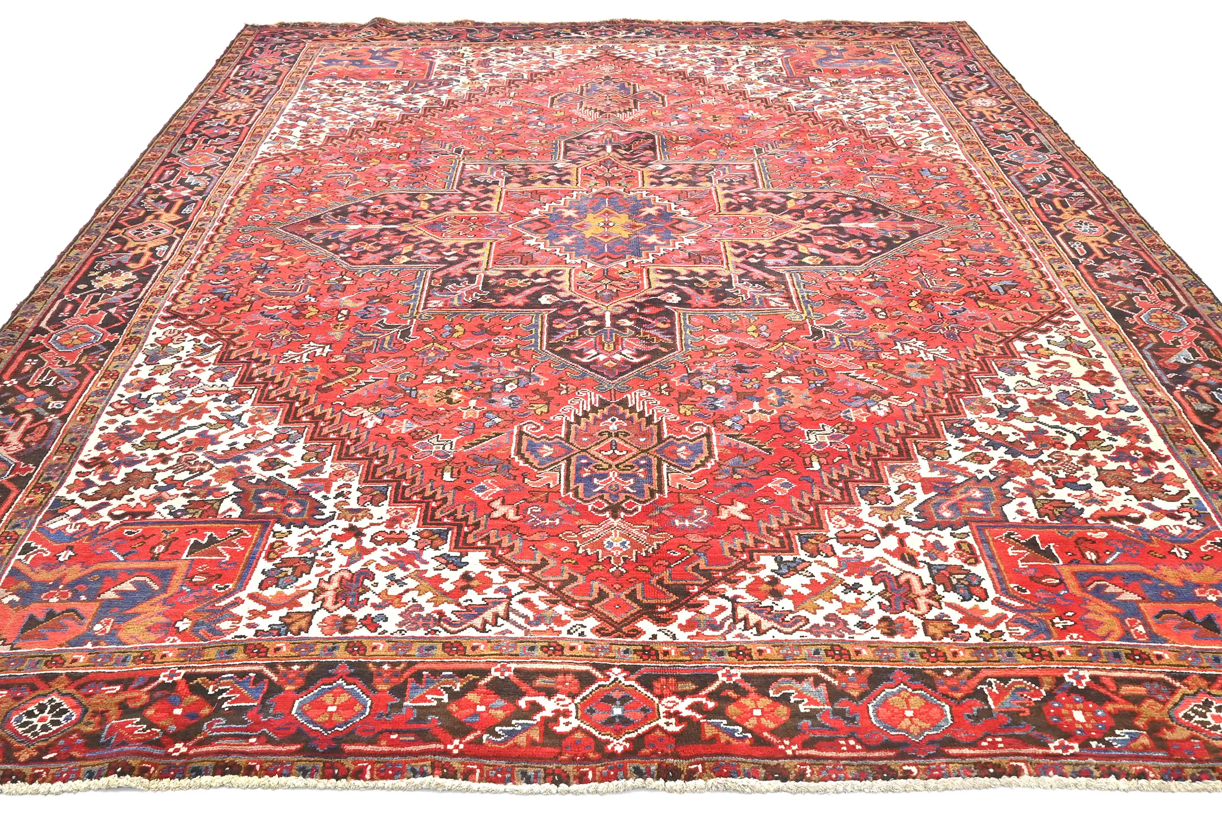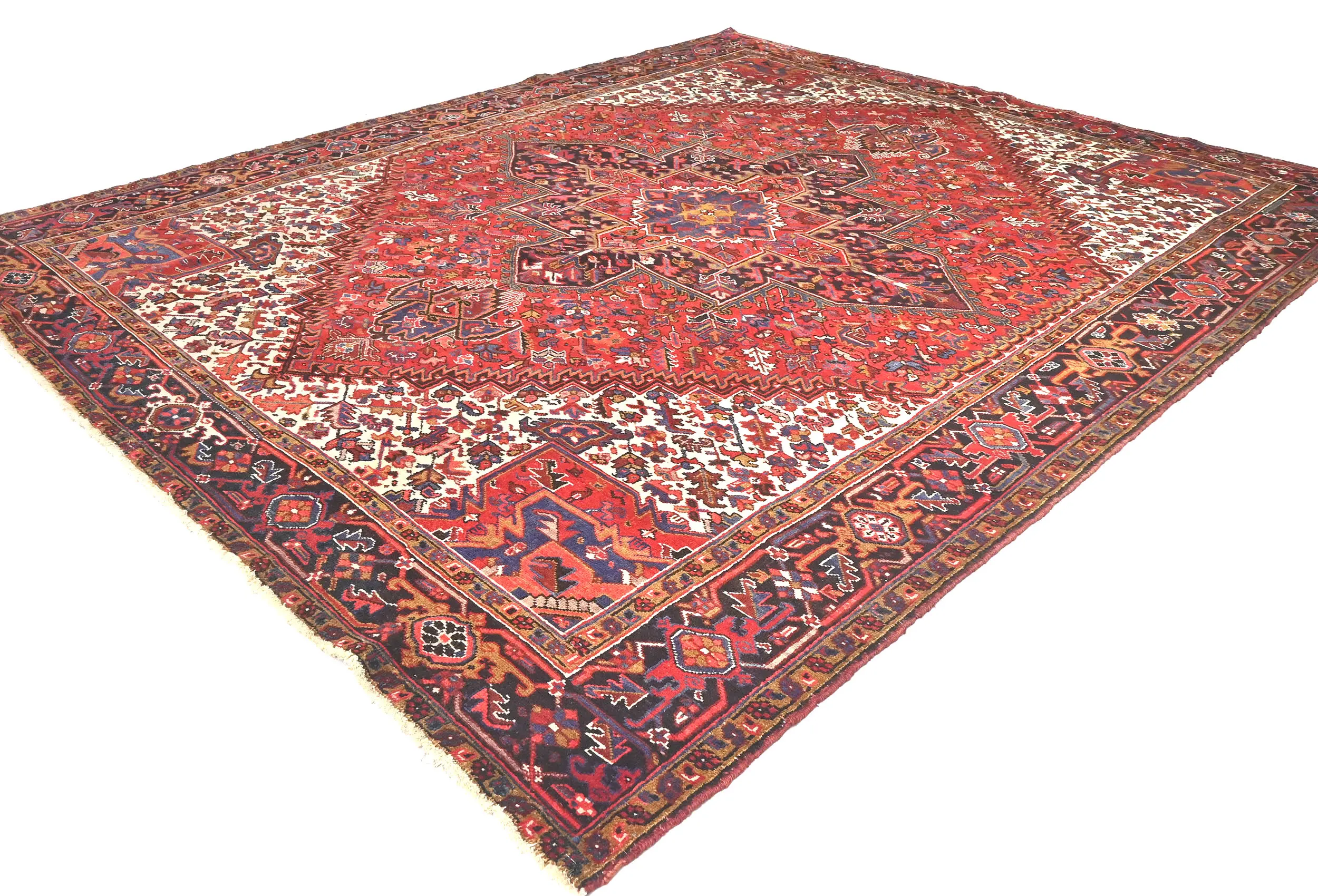 Vintage Red Floral 9'5 X 11 Heriz Persian Rug