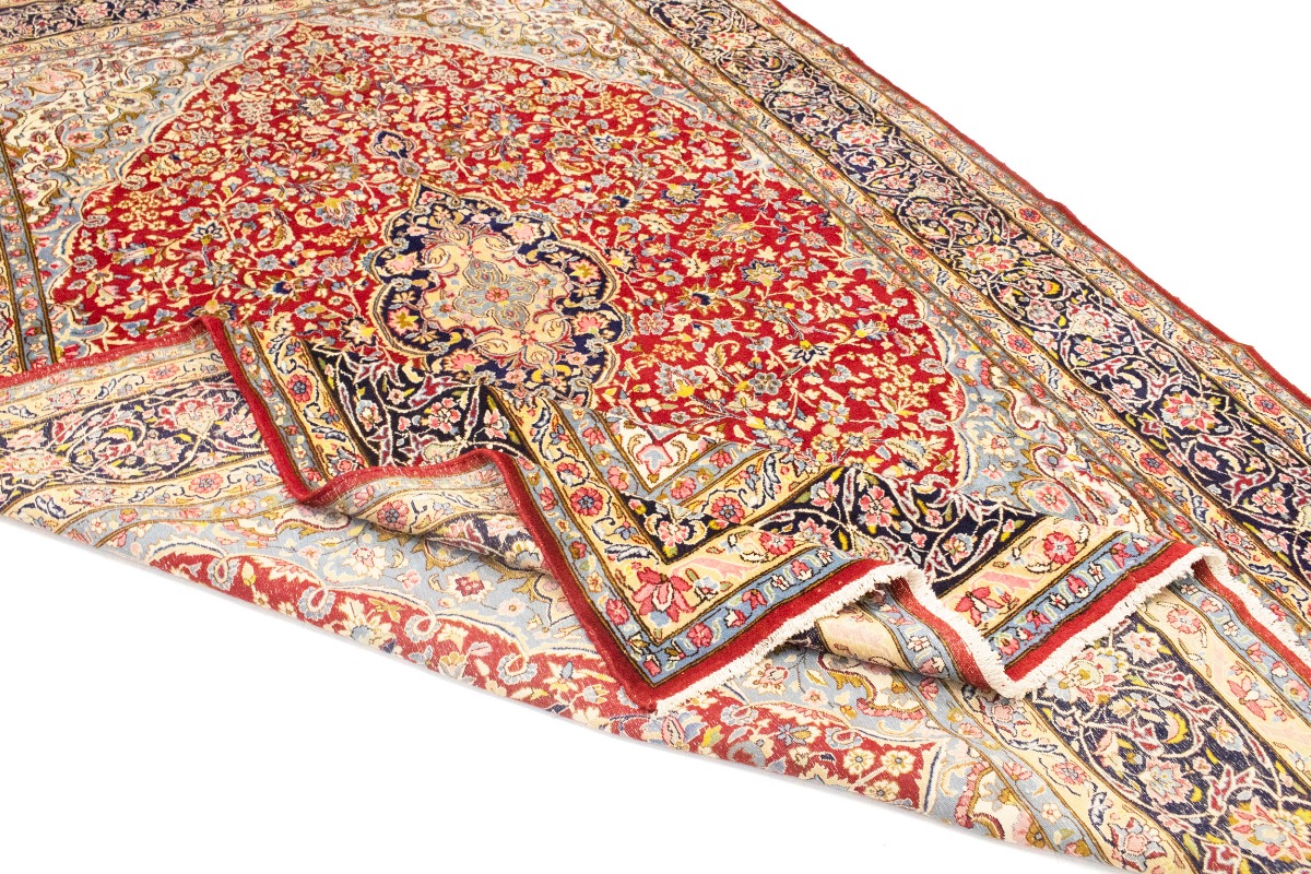 Vintage Red Floral 9X13 Kerman Persian Rug