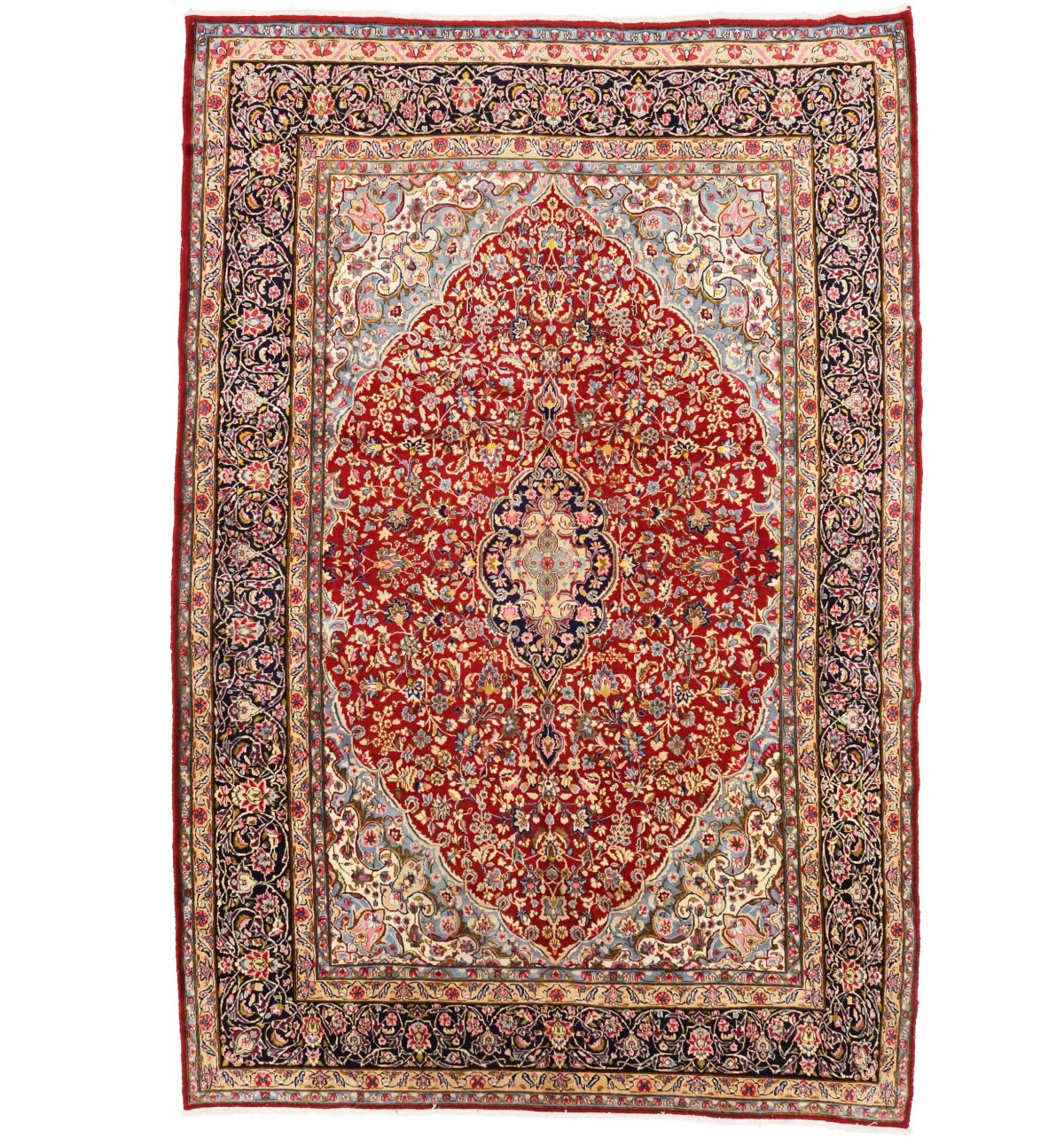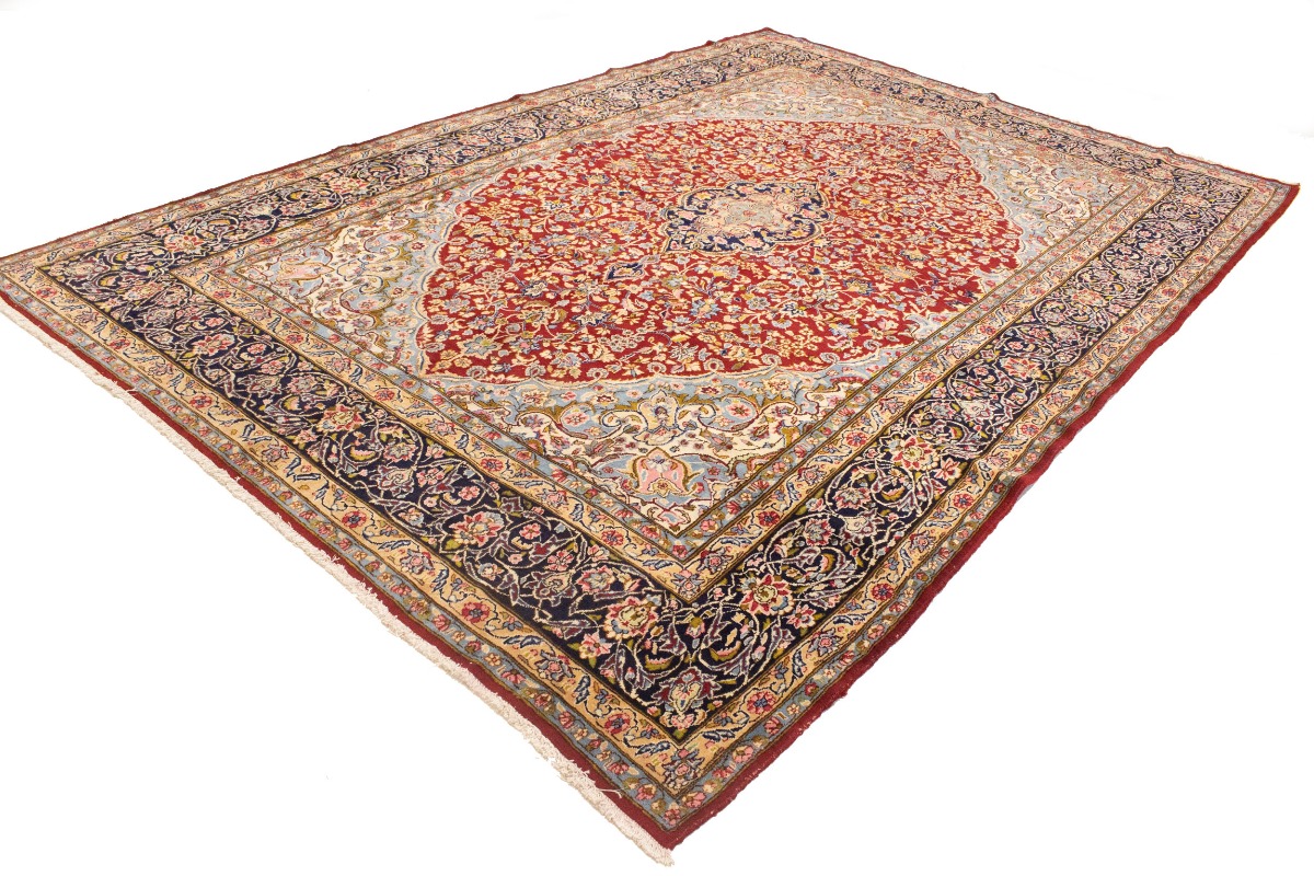 Hand Knotted vintage 9X13 red Persian rug made with vegetable dyes (fine wool pile and cotton foundation), superior knot count, and appealing ancient designs. This Oriental rug never will go out of style and would be among your most valuable treasures.