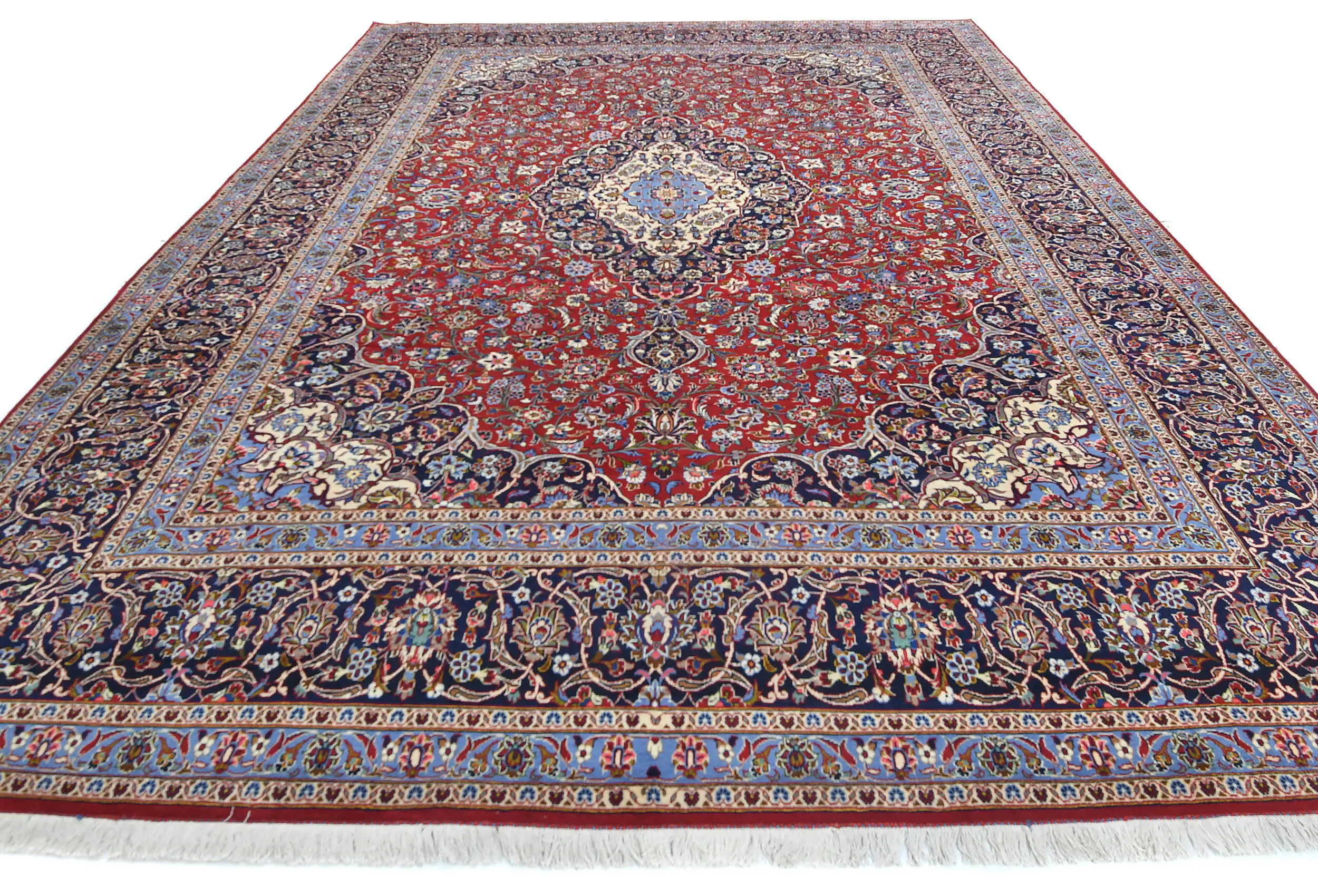 Vintage Red Floral Traditional 10X13 Kashan Persian original Rug