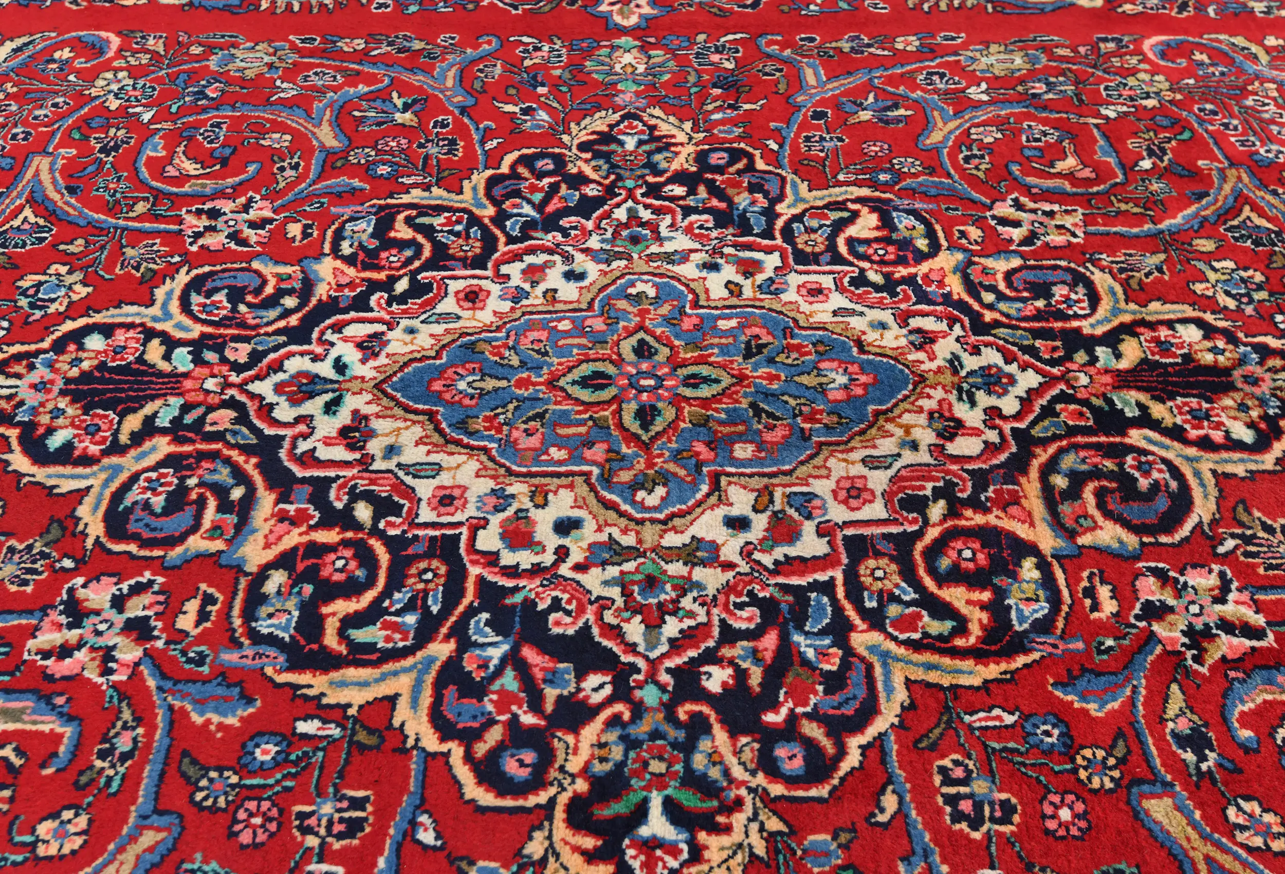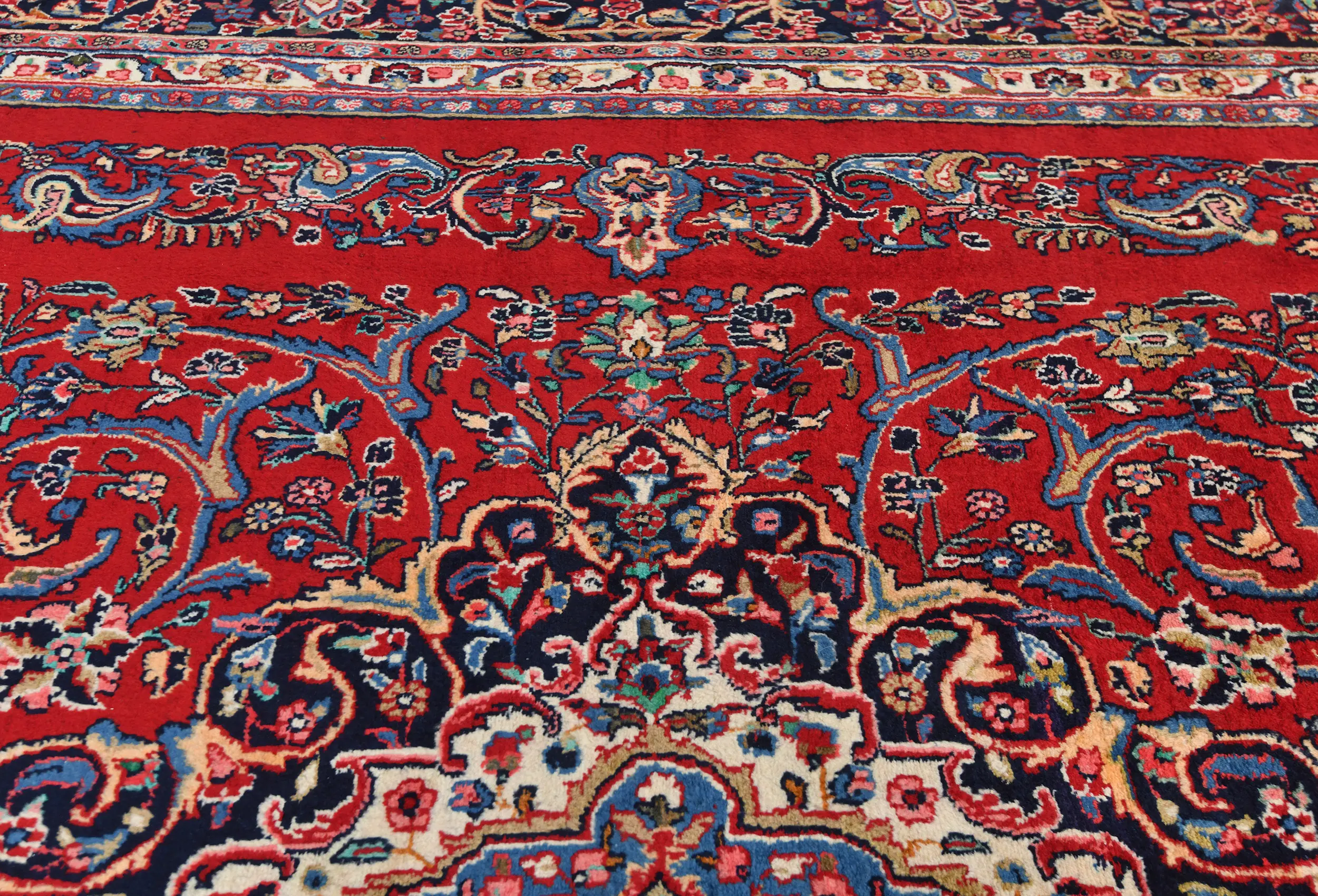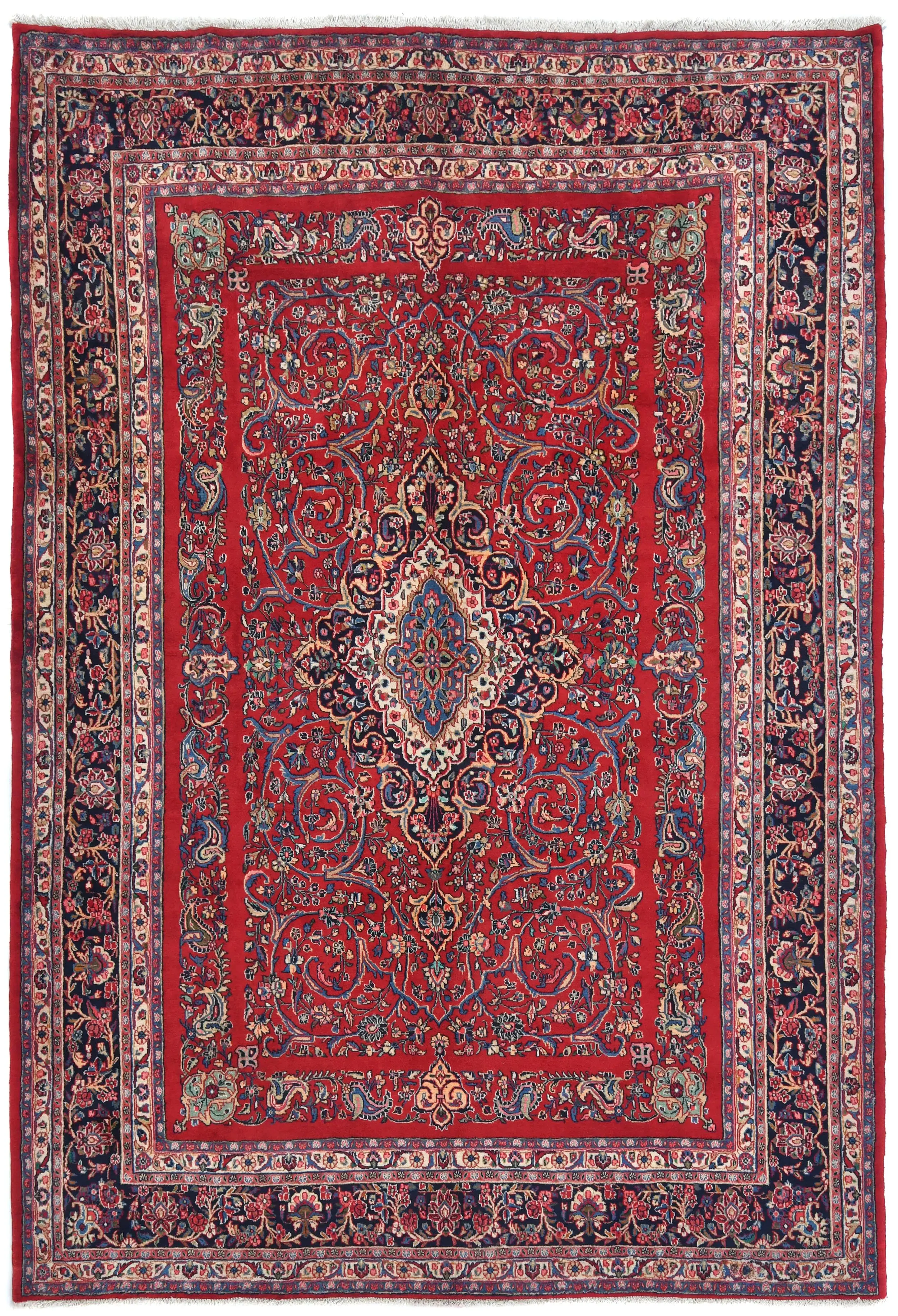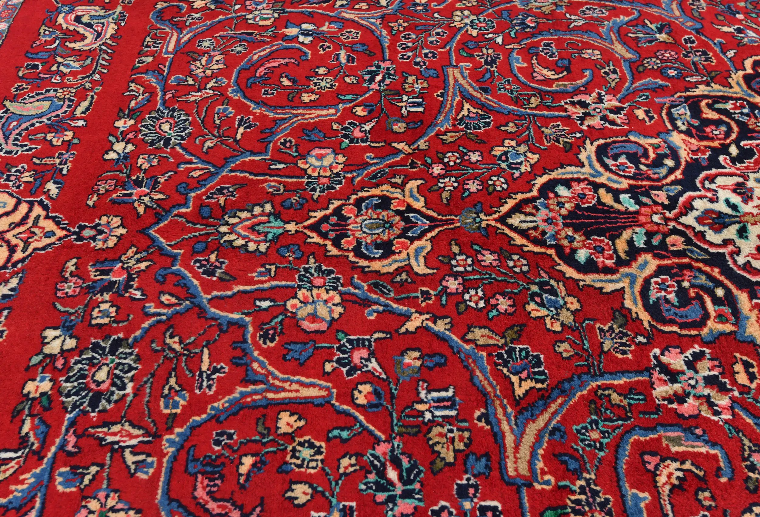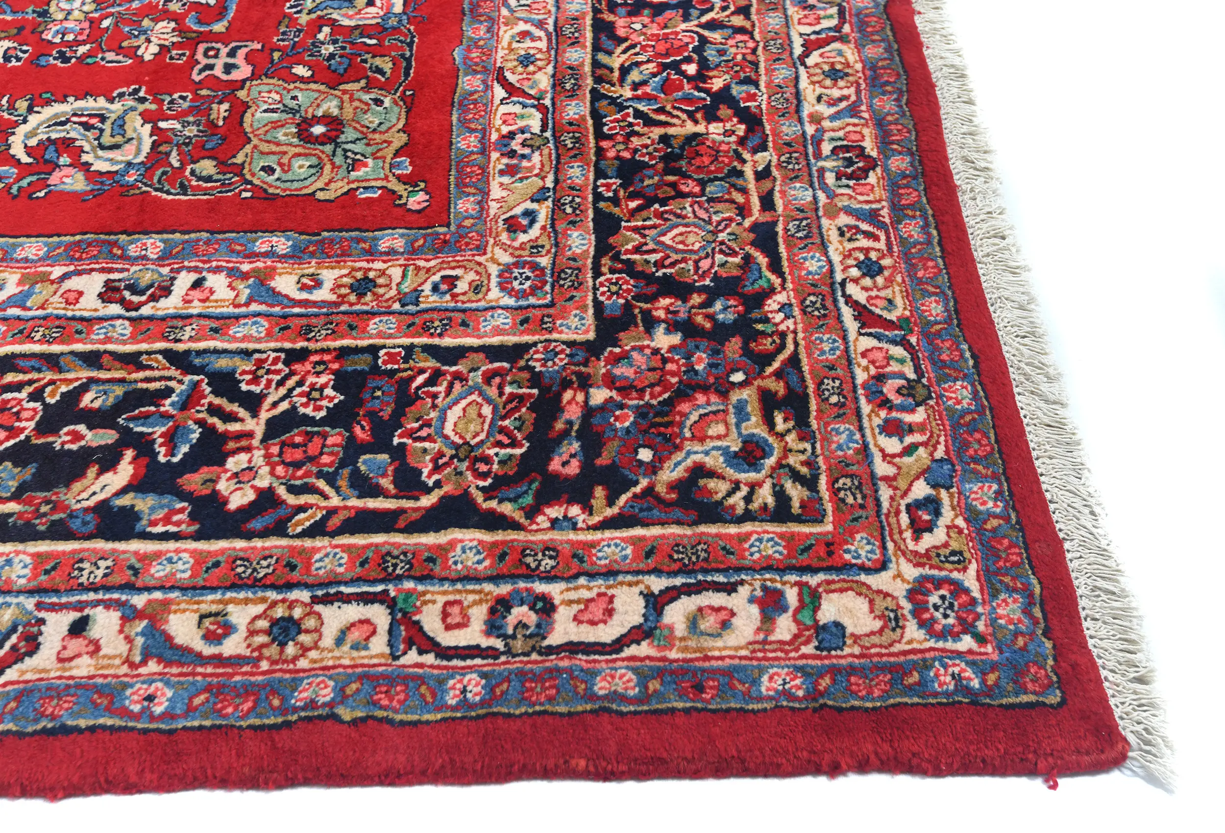 Handmade vintage 9X12 Red Persian rug made with vegetable dyes (fine wool pile and cotton foundation), exceptional knot count, and appealing ancient designs. This Oriental rug never will go out of style and would be among your most valuable treasures.