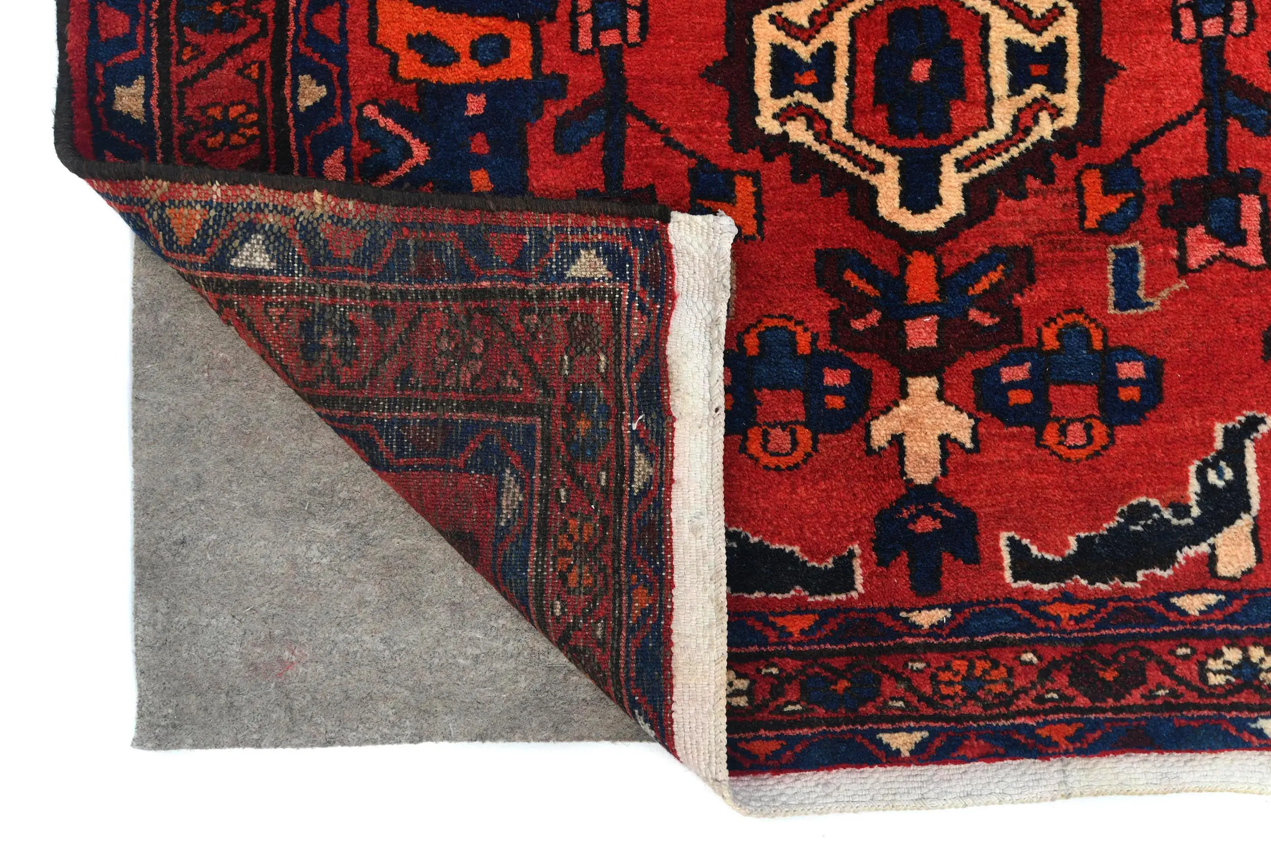 This original 3'6X10'2 Red vintage Persian rug was crafted by the hands of skilled weavers enthused by a variety of lovely artistic designs, to recreate the aged look of the unique piece with a richness of color and beautifully elaborated background field. What set this tribal Oriental area rug from the others are the material and dye used (wool pile and cotton foundation), knot count, ancient designs, fantastic grades, and its regional historical connection: it has deep roots, from the story of the people who produced it to the meaning of the symbols and colors displayed across its canvas that have been praised for centuries. This home décor carpet will be completely cozy and inviting that never will go out of style! Also, this Oriental rug would be among your most valuable treasures, it is a great investment that increase in value over time, and it will last for generations because was woven with high-quality, all-natural wool; it won’t rip, tear, or shed. Environmentally friendly, opulent yet affordable; this Persian rug will give you a thorough amount of character to help define your living space with sophistication and warmth that will capture the eyes and attention of your audience (homeowners, designers, decorators, family and friends). EB-7302