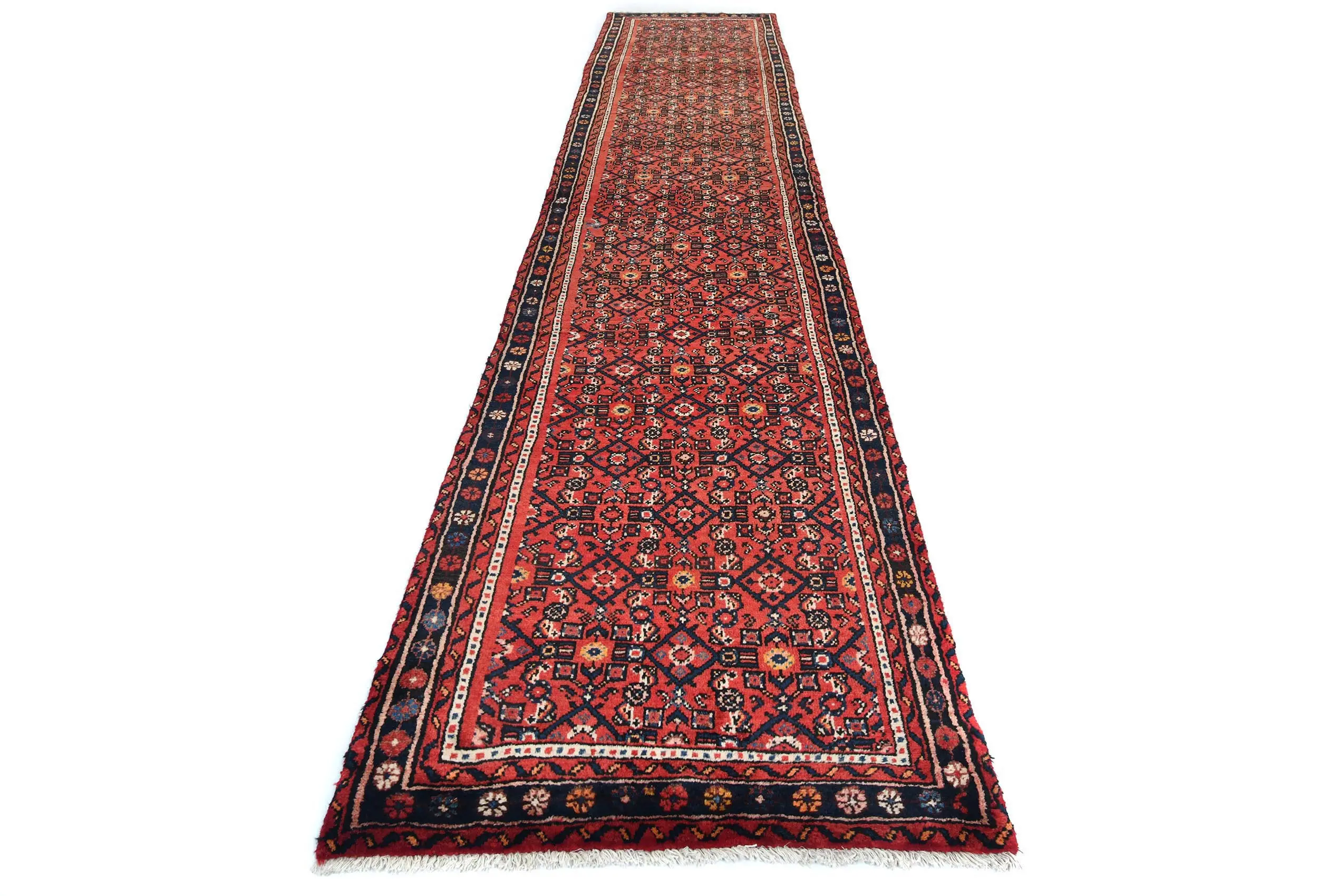 Handmade vintage 3X13 Red Persian runner made with vegetable dyes (fine wool pile and cotton foundation), exceptional knot count, and appealing ancient designs. This Oriental runner never will go out of style and would be among your most valuable treasures.