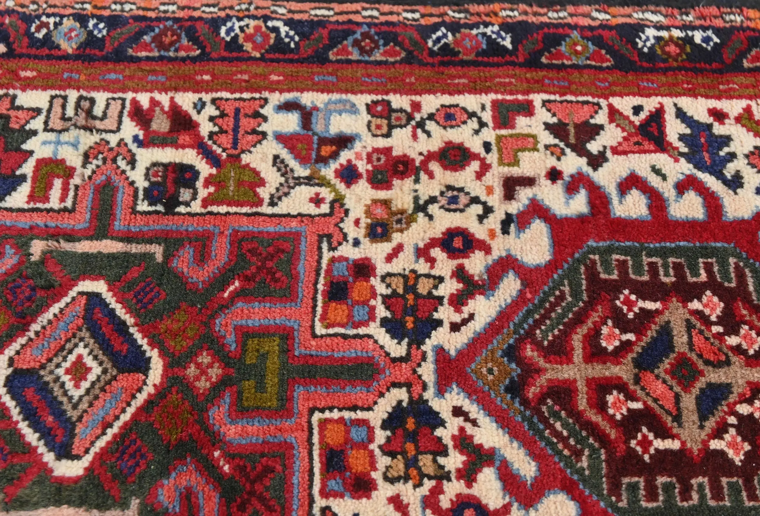 Vintage Red Geometric 2X10 Karajeh Persian Runner Rug