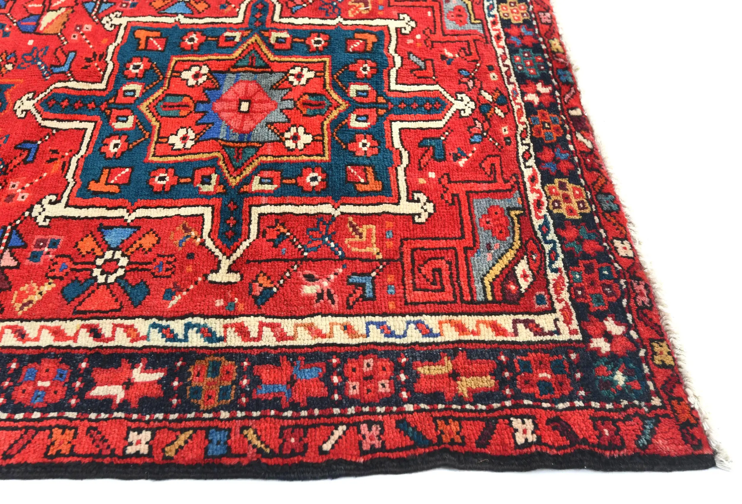 Vintage Red Geometric 3'1X12'7 Karajeh Persian Runner Rug