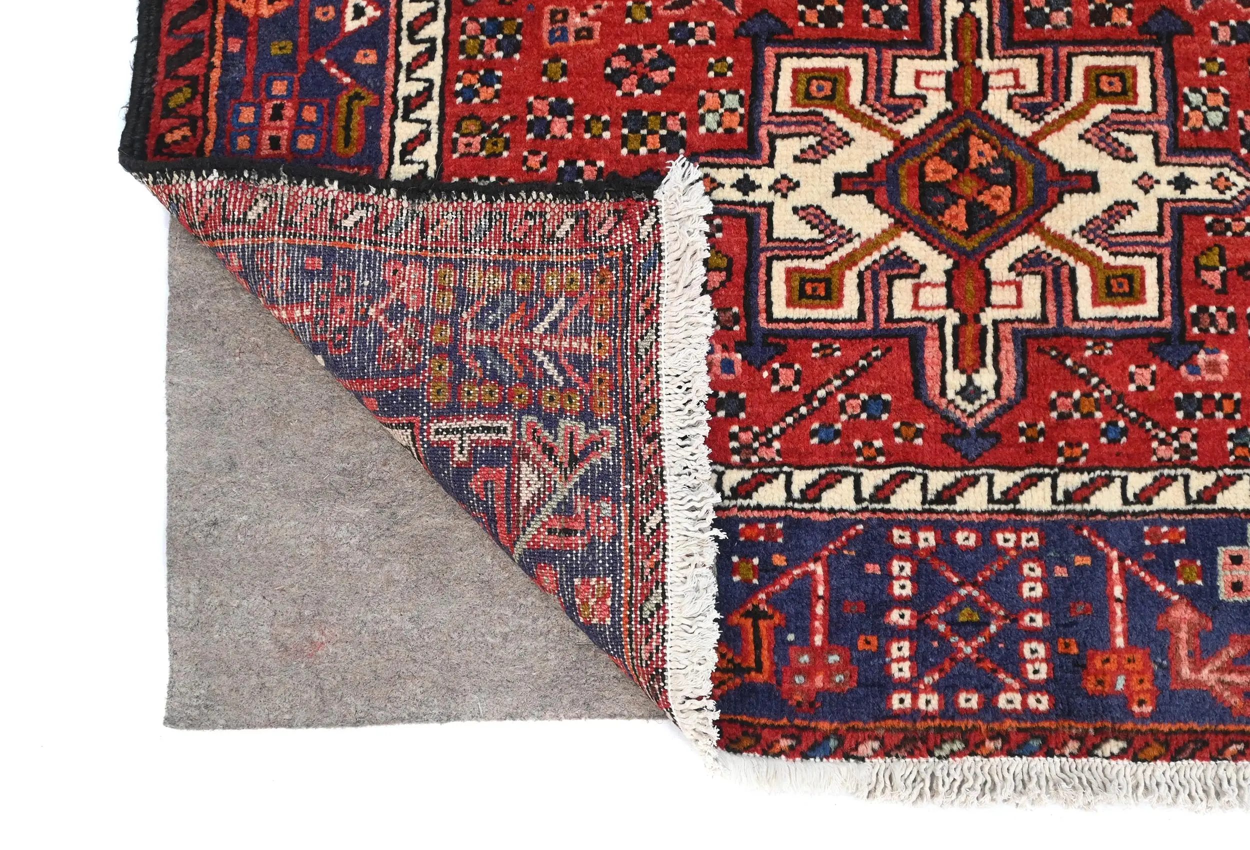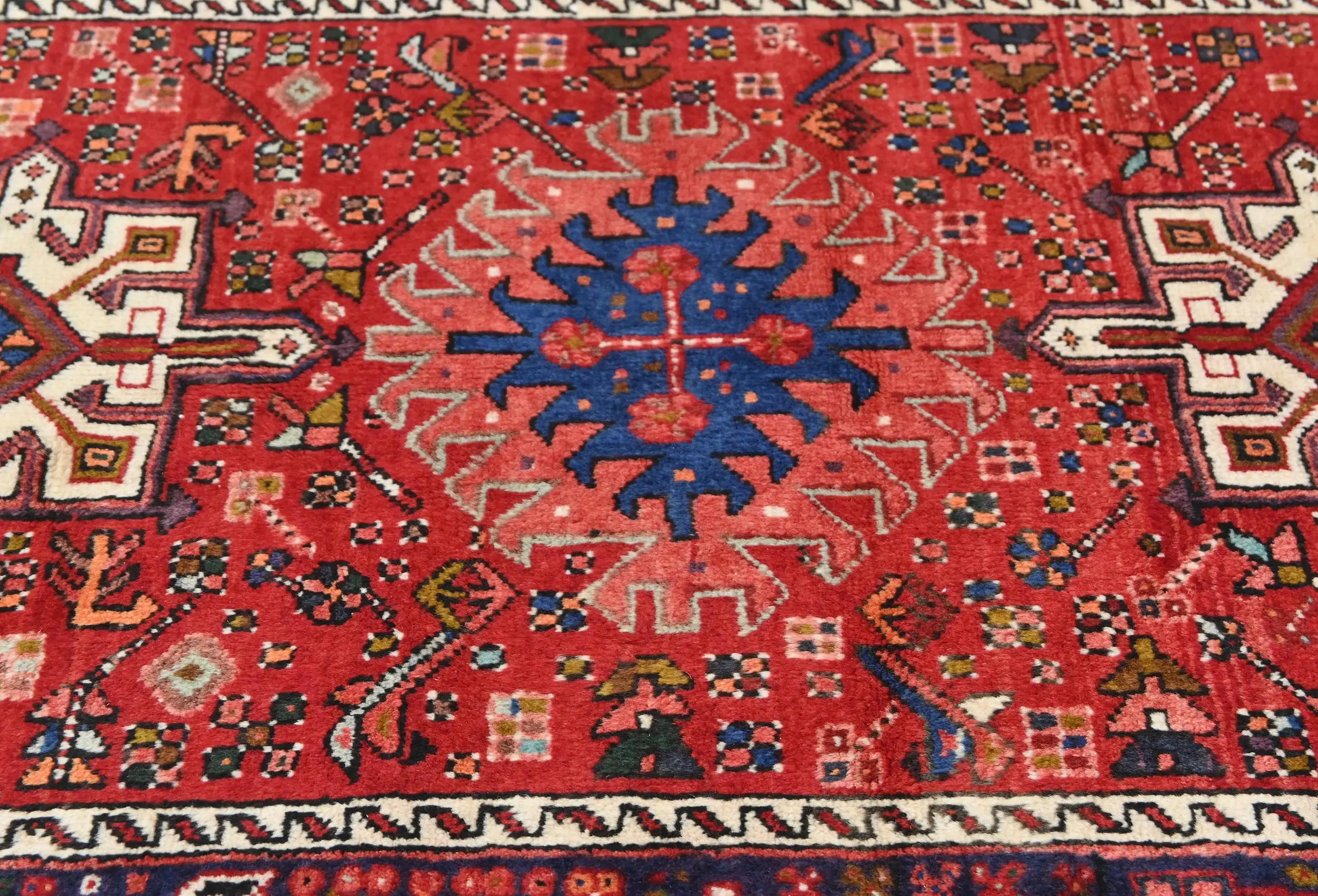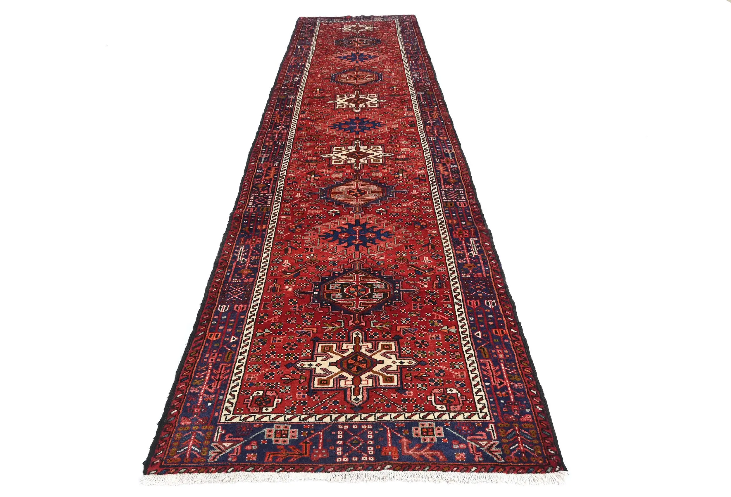Vintage Red Geometric 3X14 Karajeh Persian Runner Rug