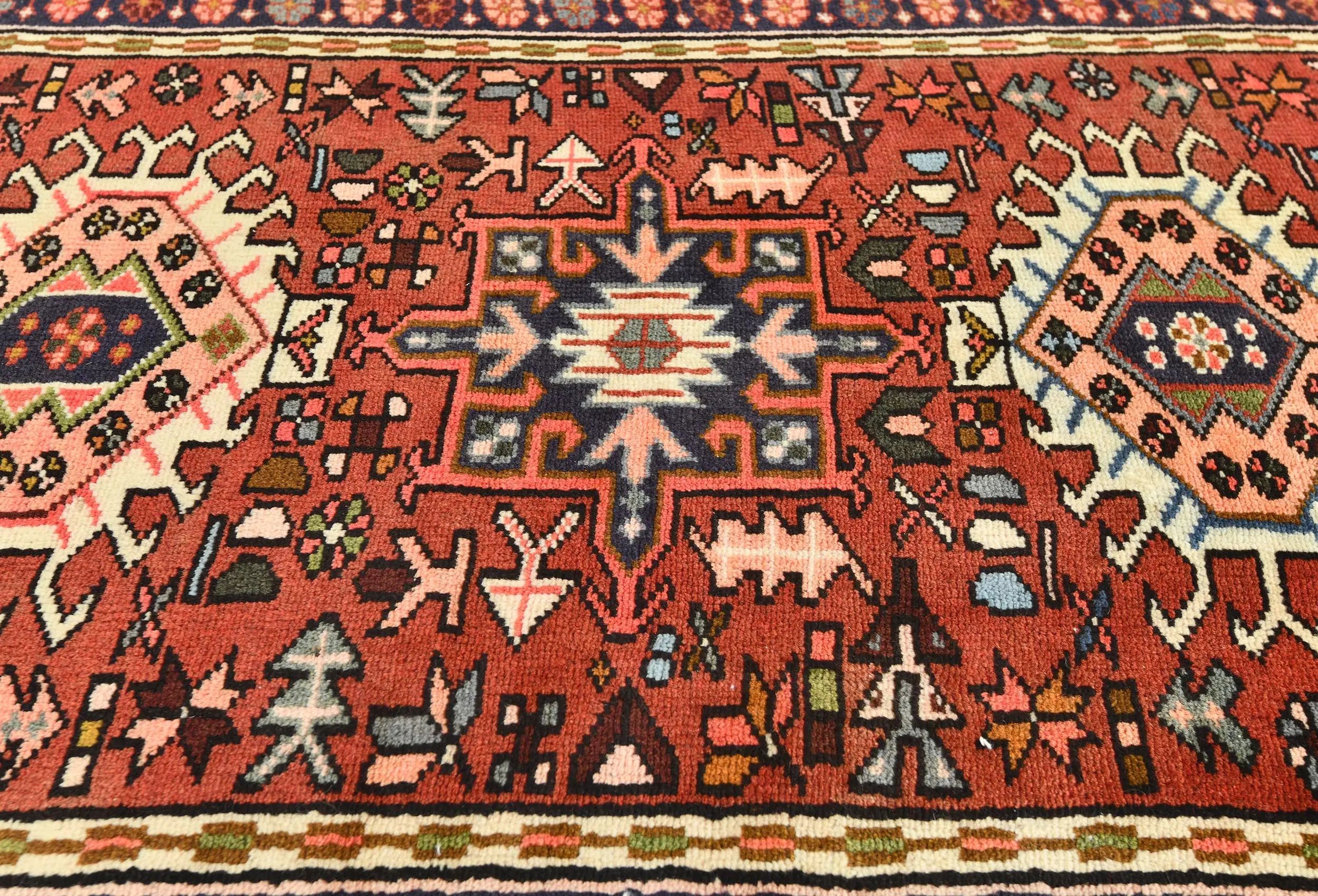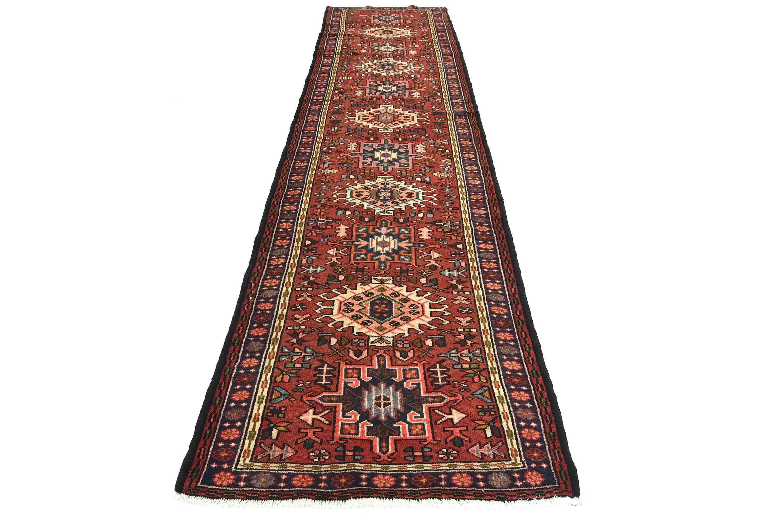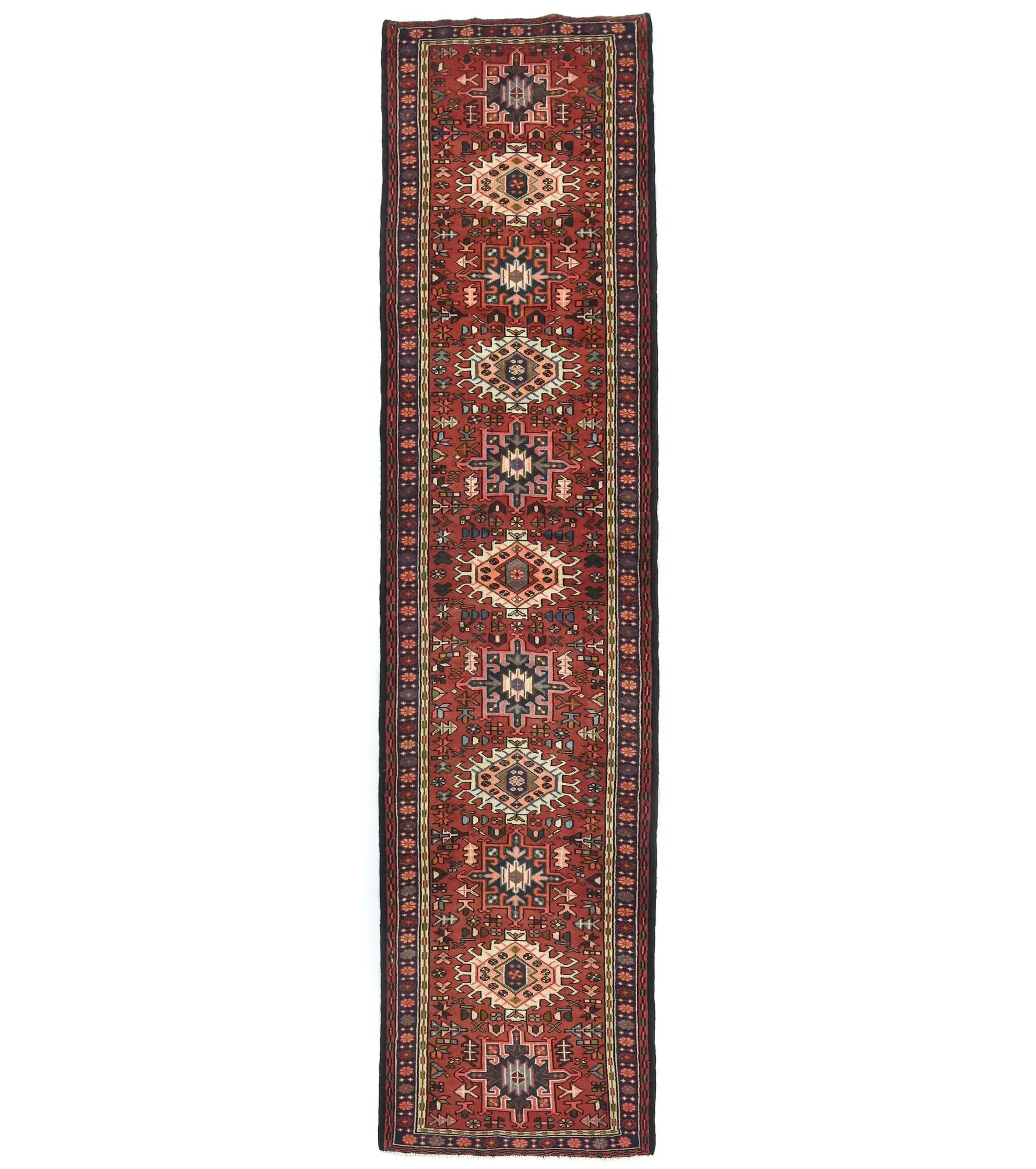 Vintage Red Geometric 3X12 Karajeh Persian Runner Rug