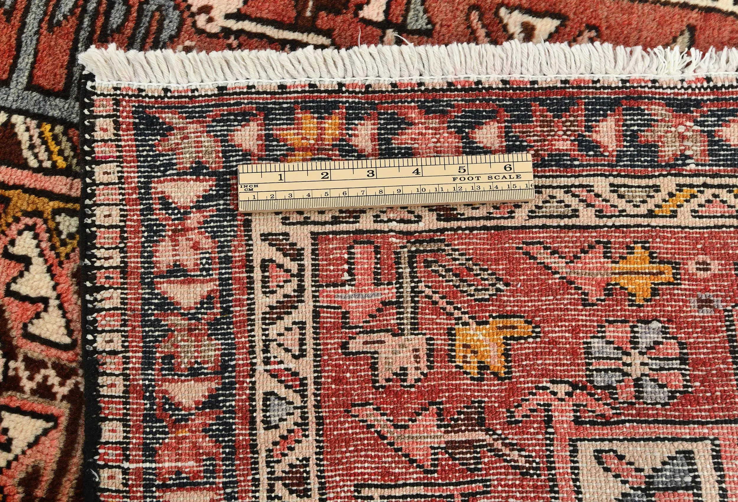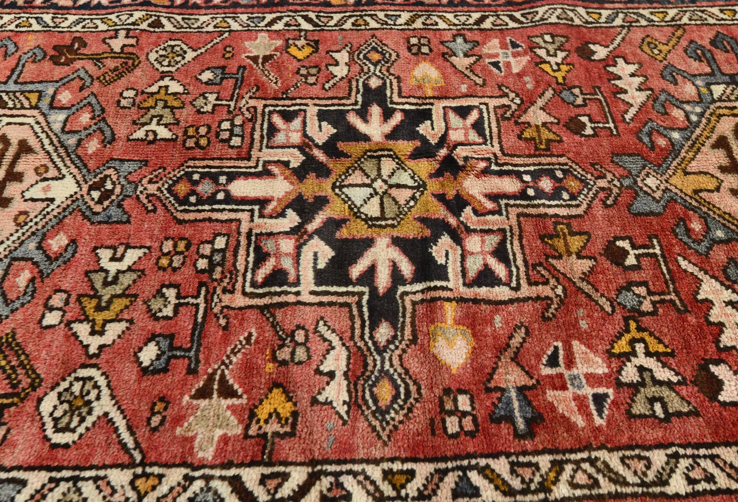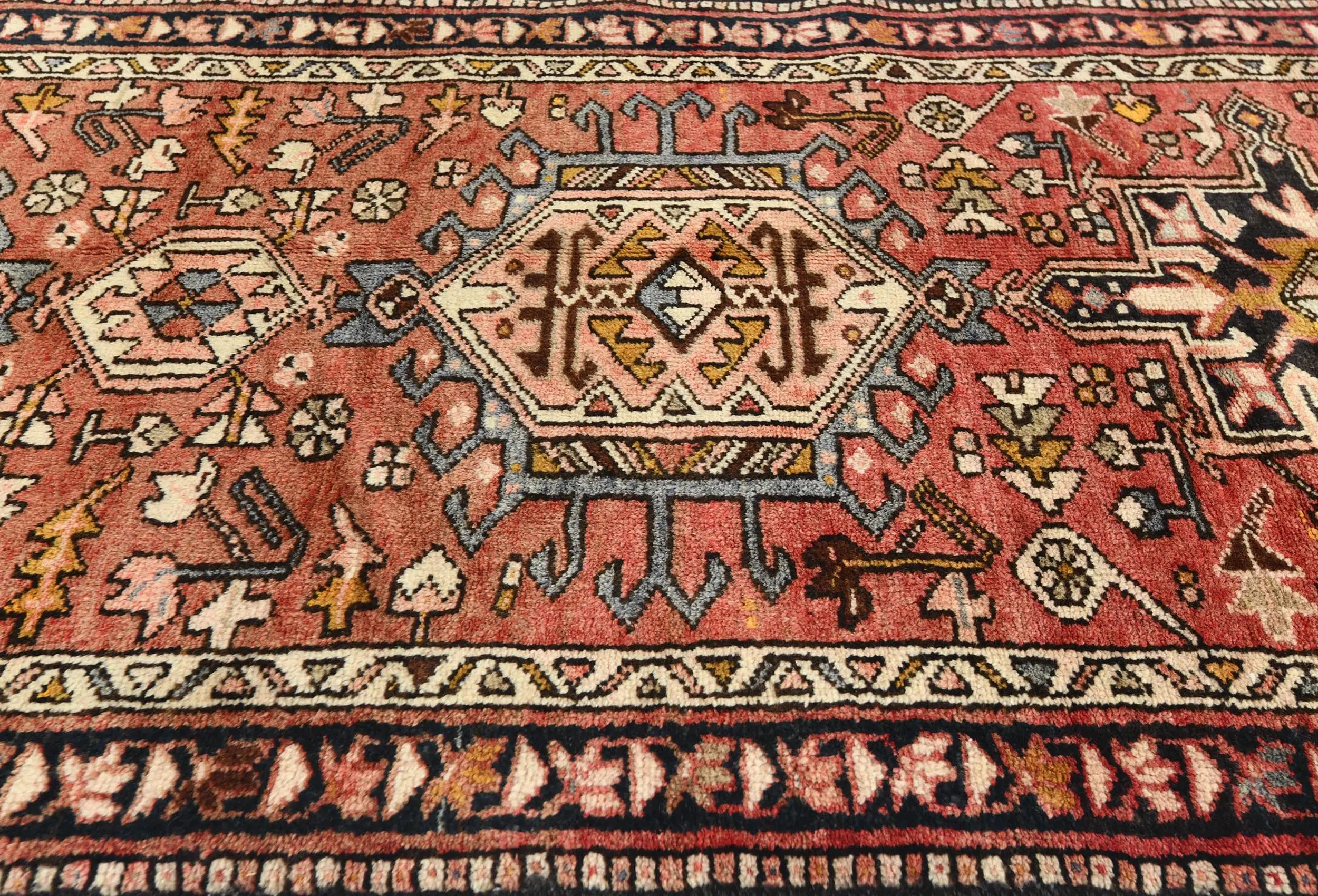 Vintage Red Geometric 3X13 Karajeh Persian Runner Rug