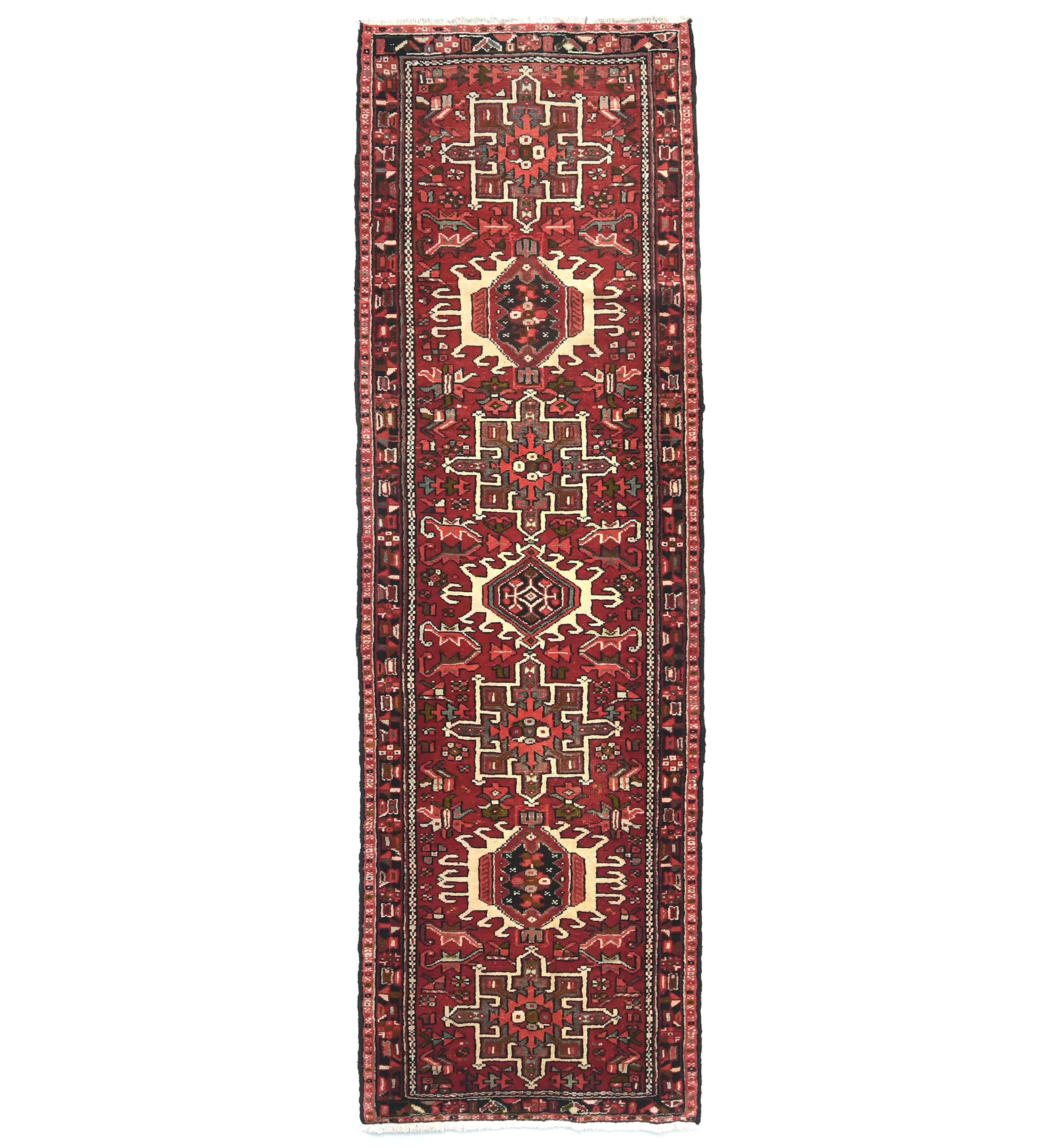 Vintage Red Geometric 3X9 Karajeh Persian Runner Rug