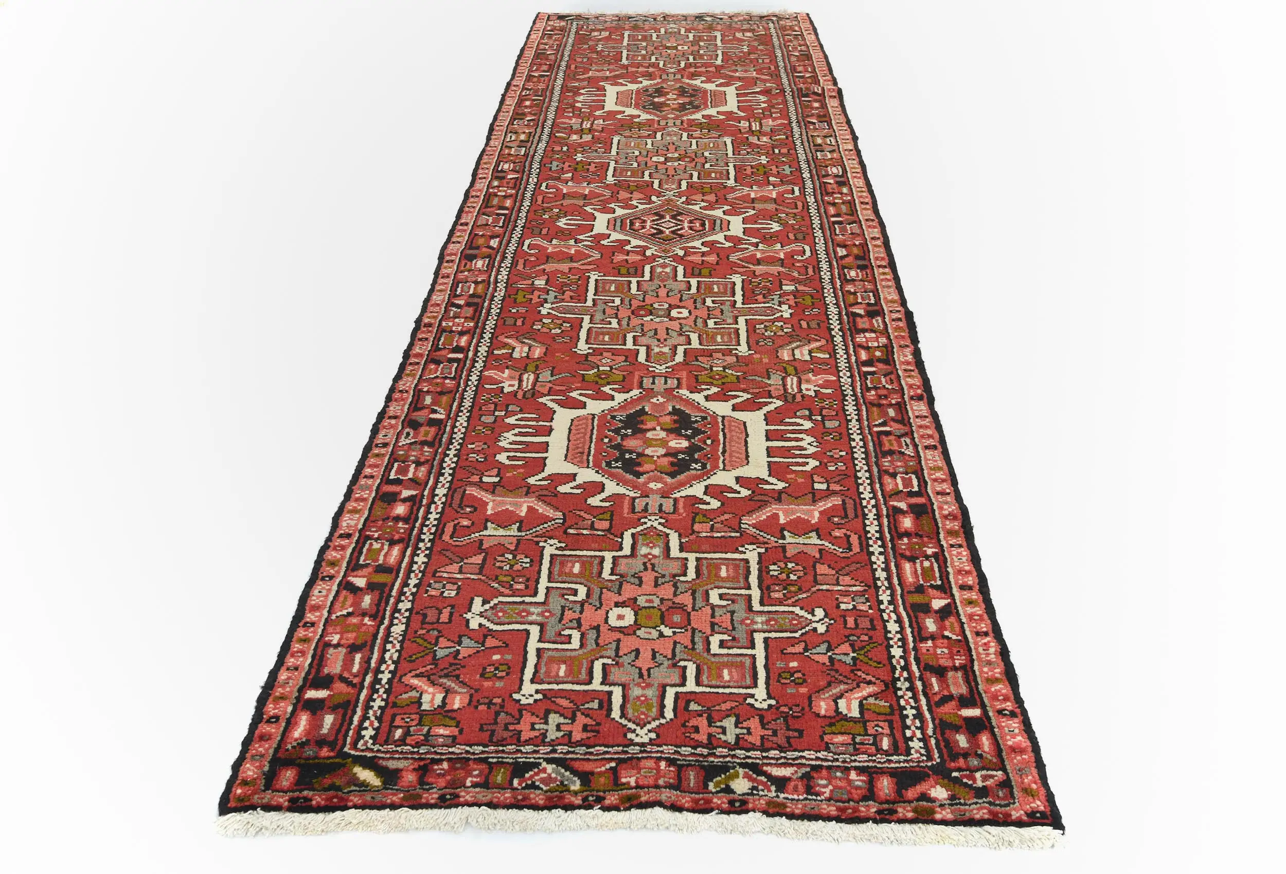 Hand Knotted vintage 3X9 Red Persian runner made with vegetable dyes (fine wool pile and cotton foundation), superior knot count, and appealing ancient designs. This Oriental runner never will go out of style and would be among your most valuable treasures.