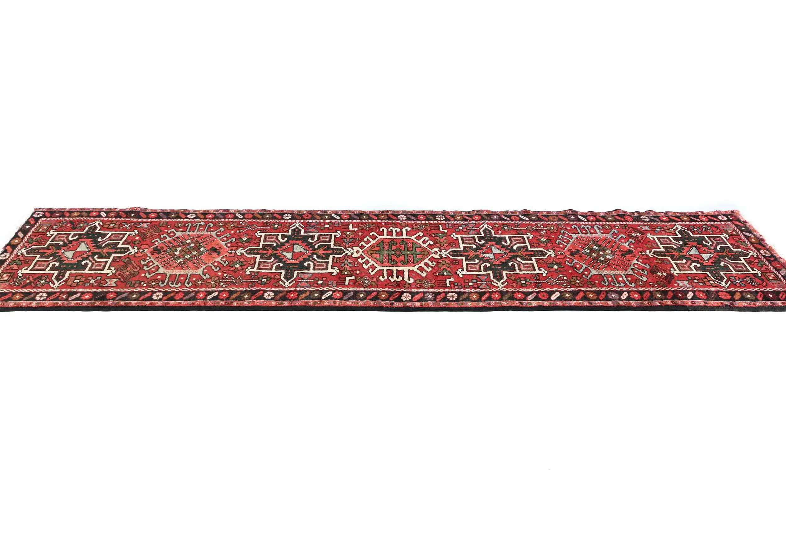 Hand Knotted vintage 3X9 red Persian runner made with vegetable dyes (fine wool pile and cotton foundation), superior knot count, and appealing ancient designs. This Oriental runner never will go out of style and would be among your most valuable treasures.