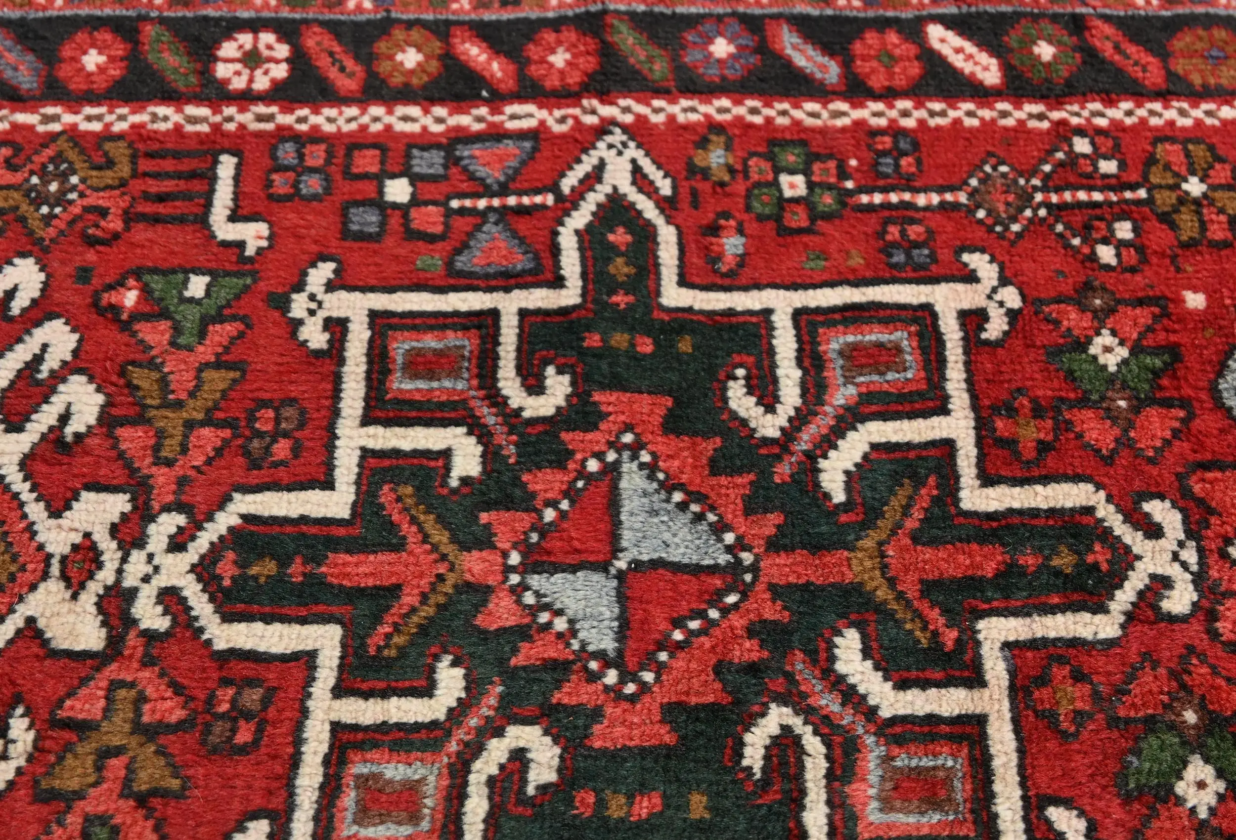 Vintage Red Geometric 3X9 Karajeh Persian Runner Rug