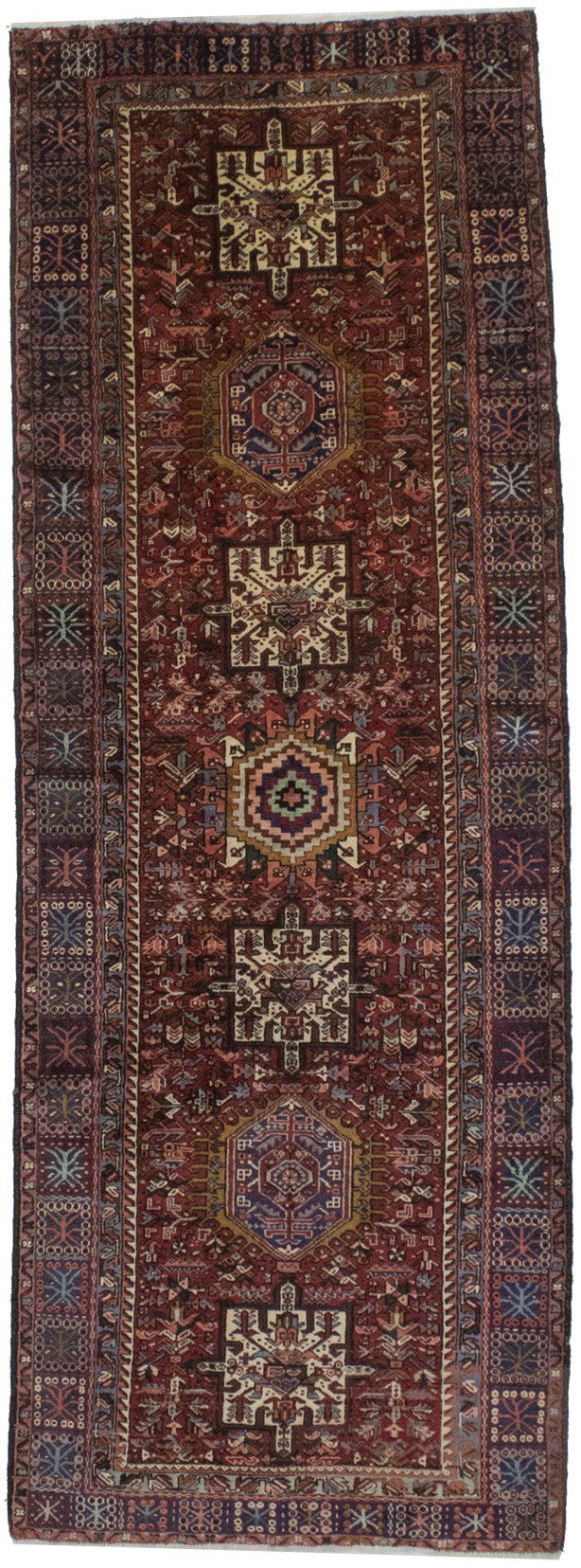 Hand Knotted semi antique Persian runner made with natural dyes (fine wool pile and cotton foundation), superior knot count, and appealing ancient designs. This Oriental runner never will go out of style and would be among your most valuable treasures.