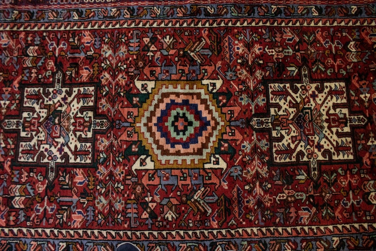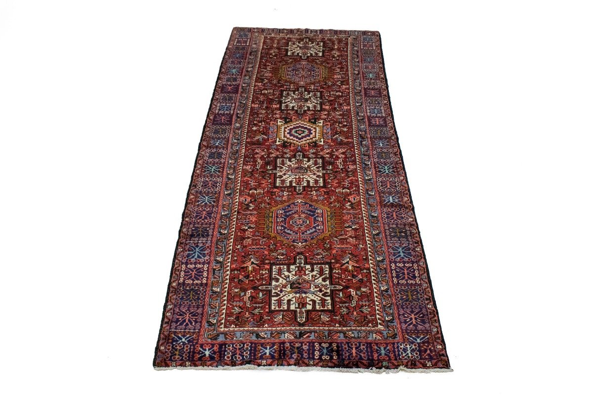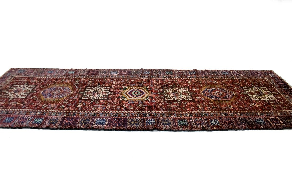 Vintage Red Geometric 5X13 Karajeh Persian Runner Rug