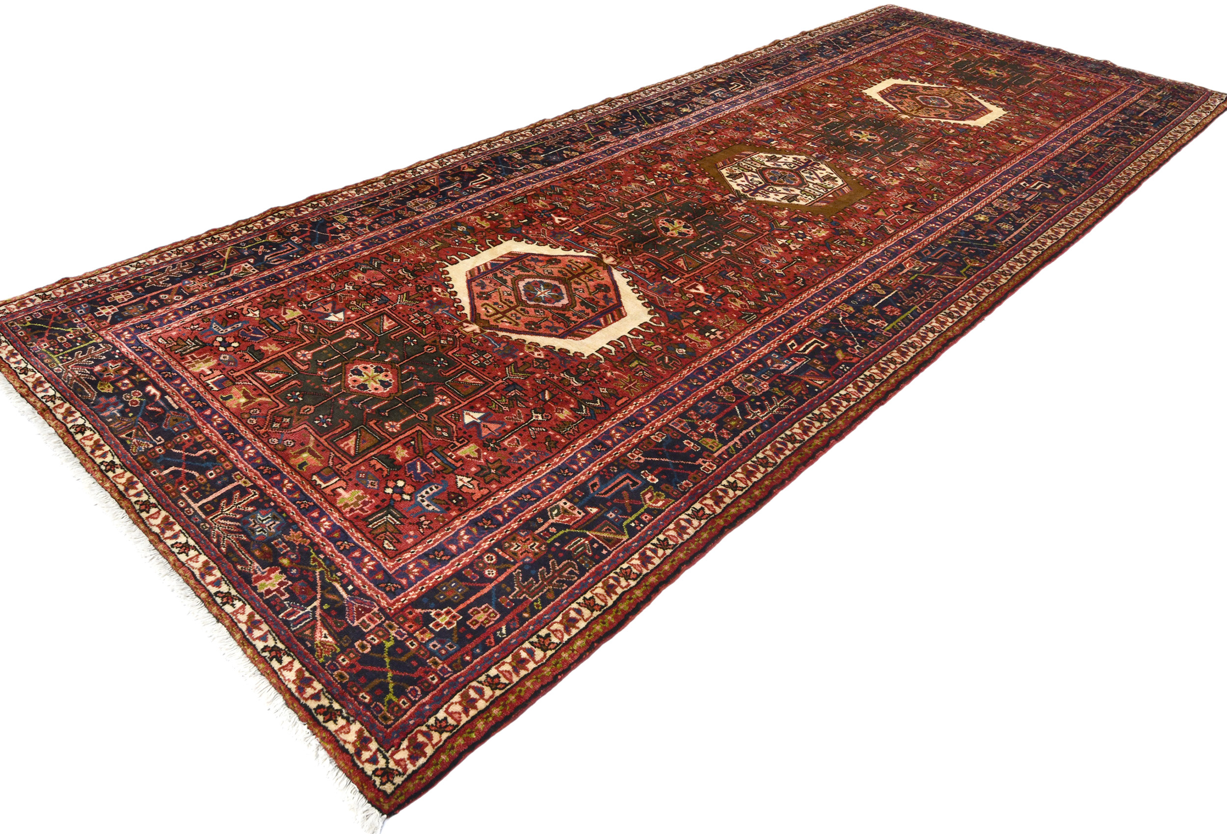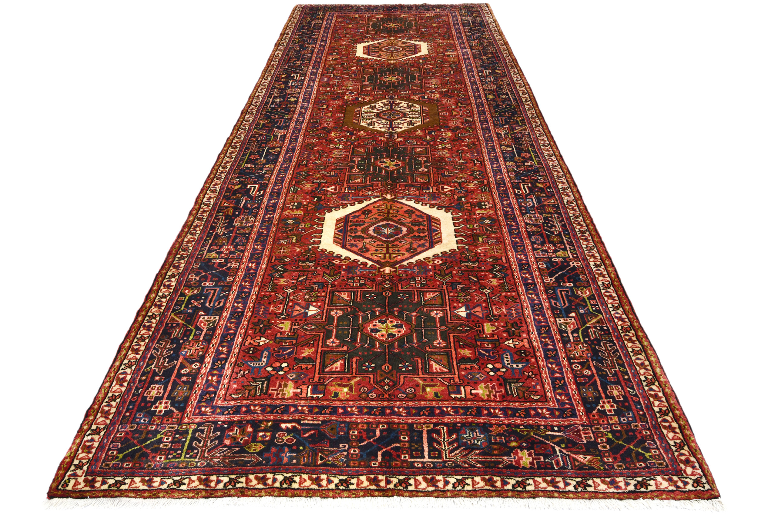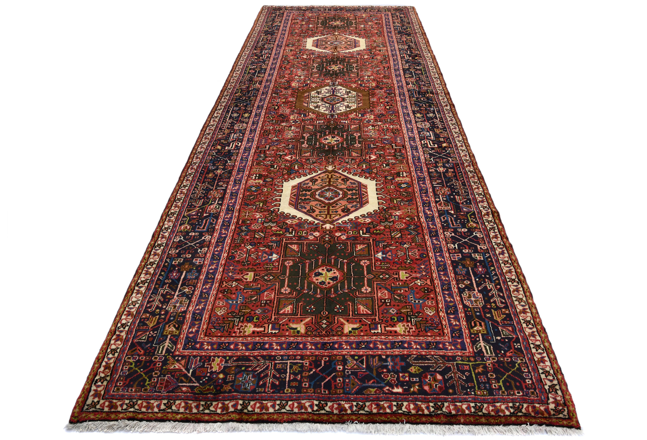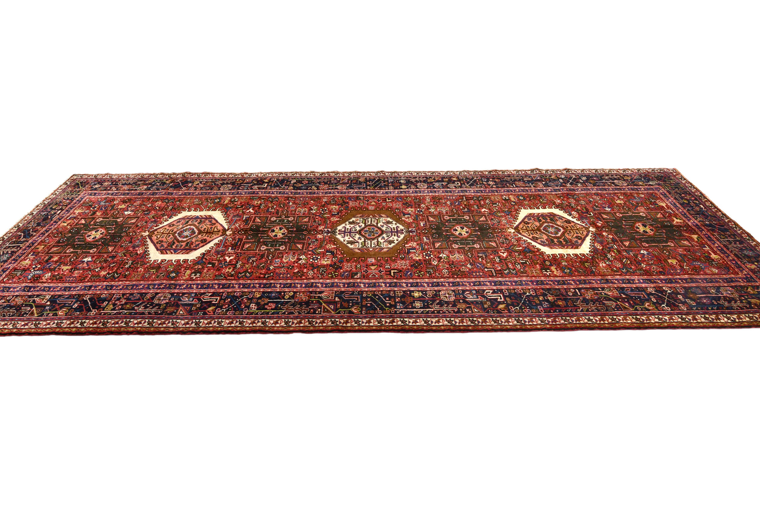 Handmade vintage 5X13 red Persian runner made with vegetable dyes (fine wool pile and cotton foundation), superior knot count, and alluring ancient designs. This Oriental runner never will go out of style and would be among your most valuable treasures.