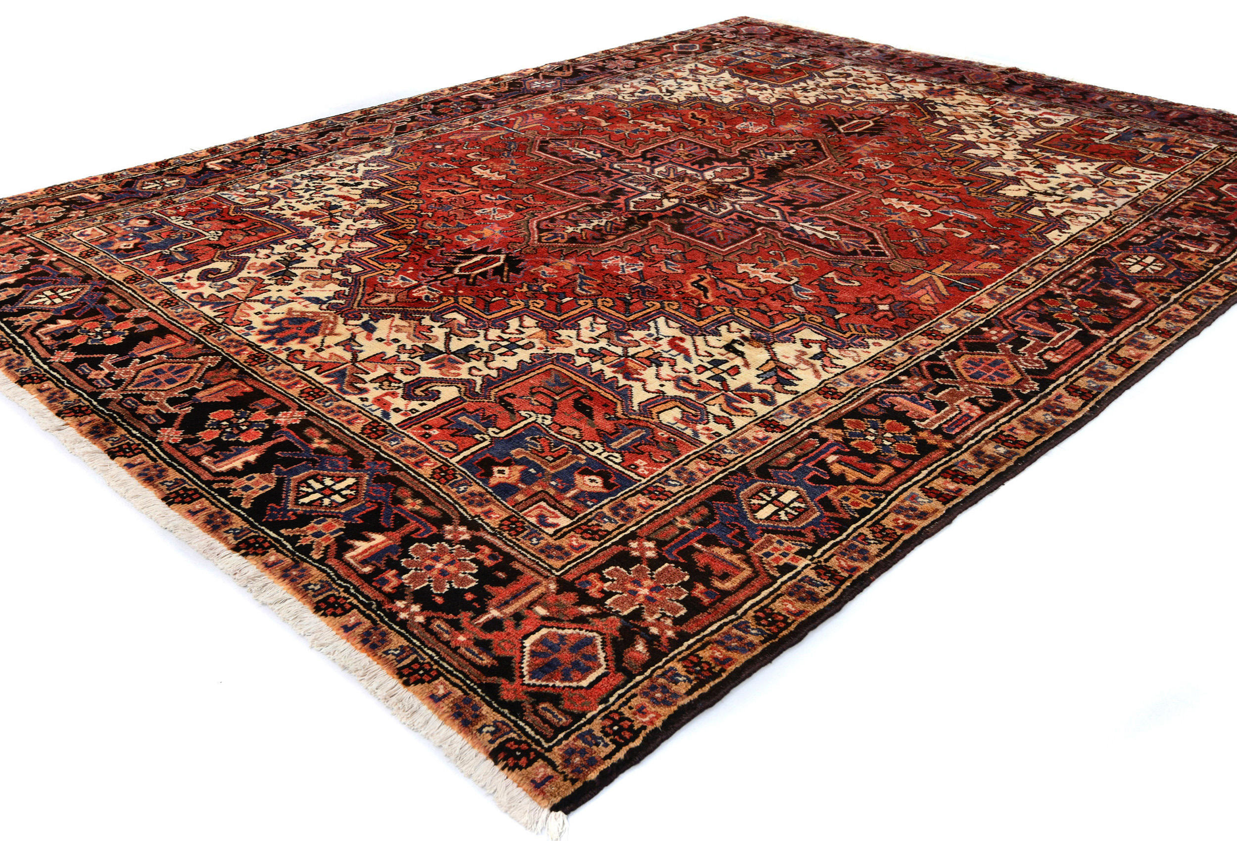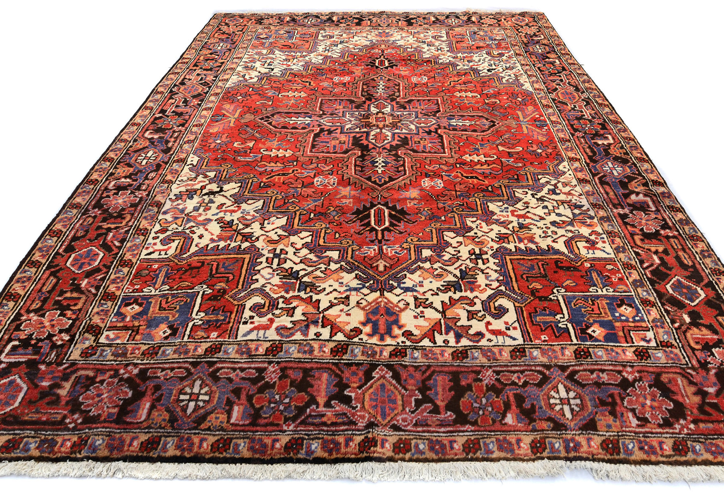 Vintage Red Geometric 7X10 Heriz Persian Oriental Rug