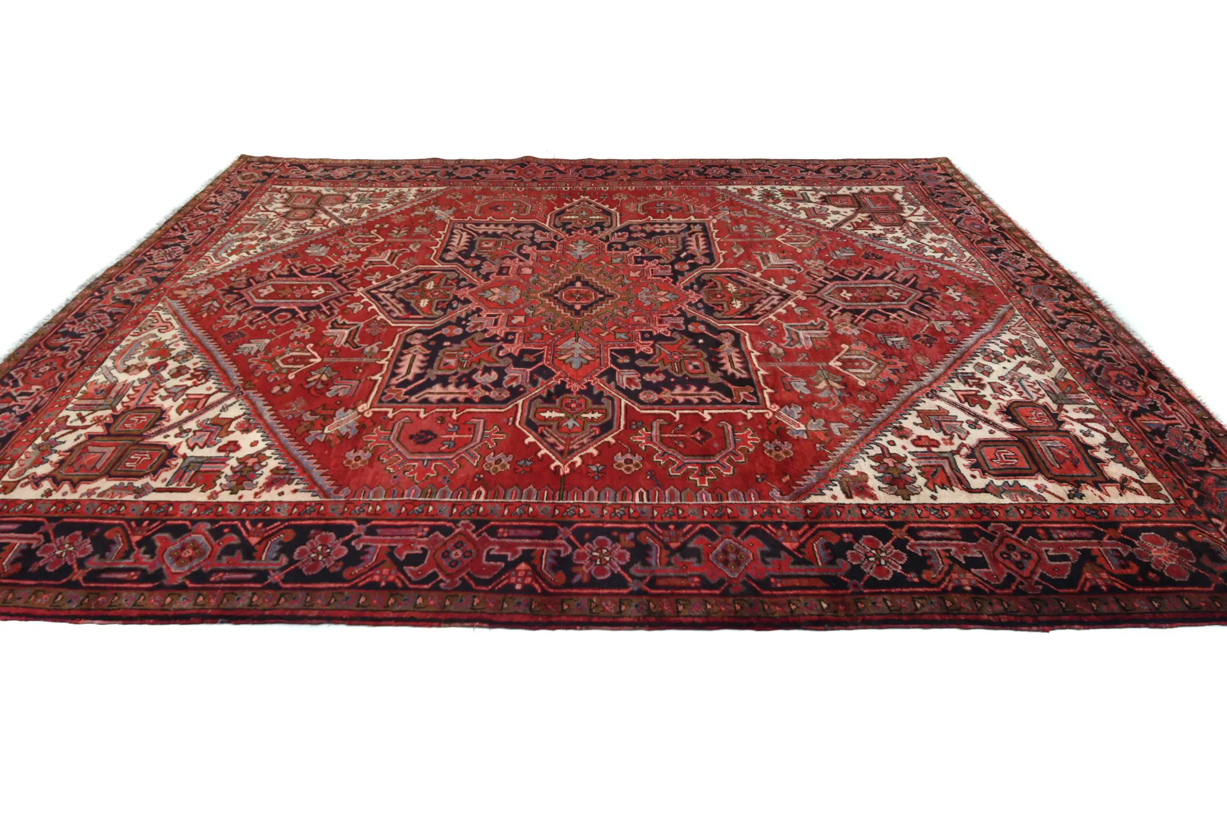 Vintage Red Geometric Traditional 9X11 Heriz Persian Rug