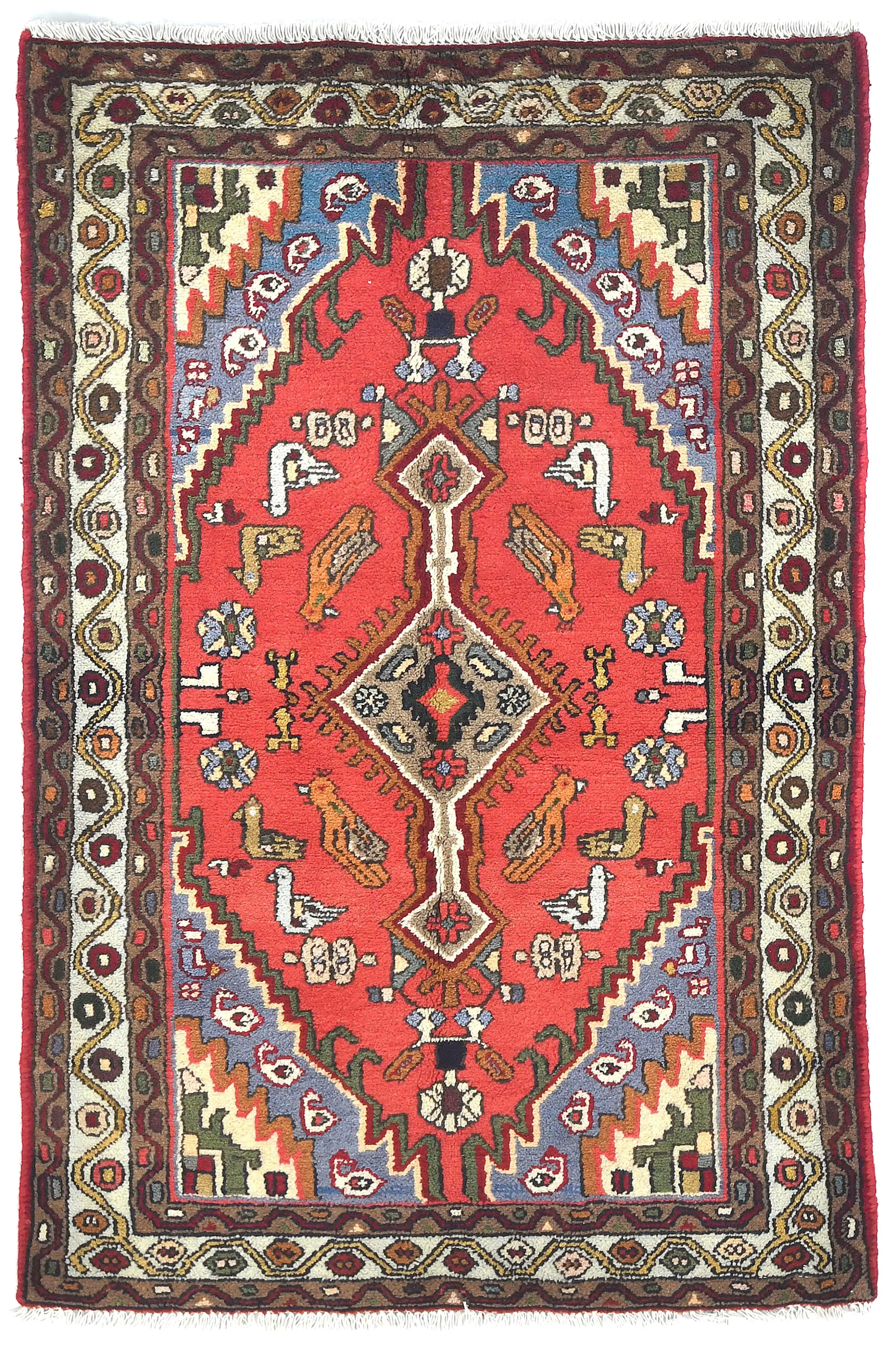Vintage Red Geometric Tribal 3X5 Hamedan Persian Rug