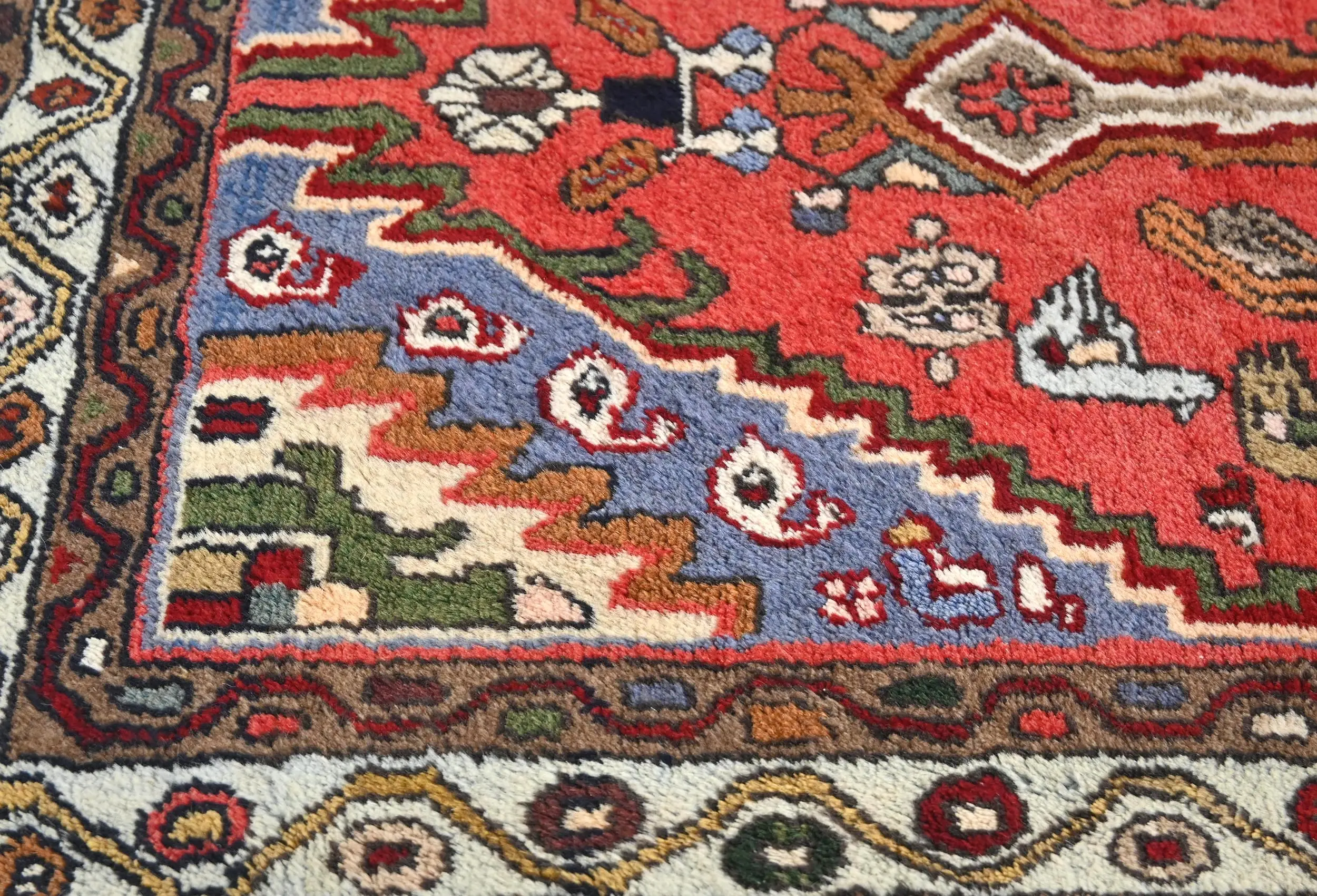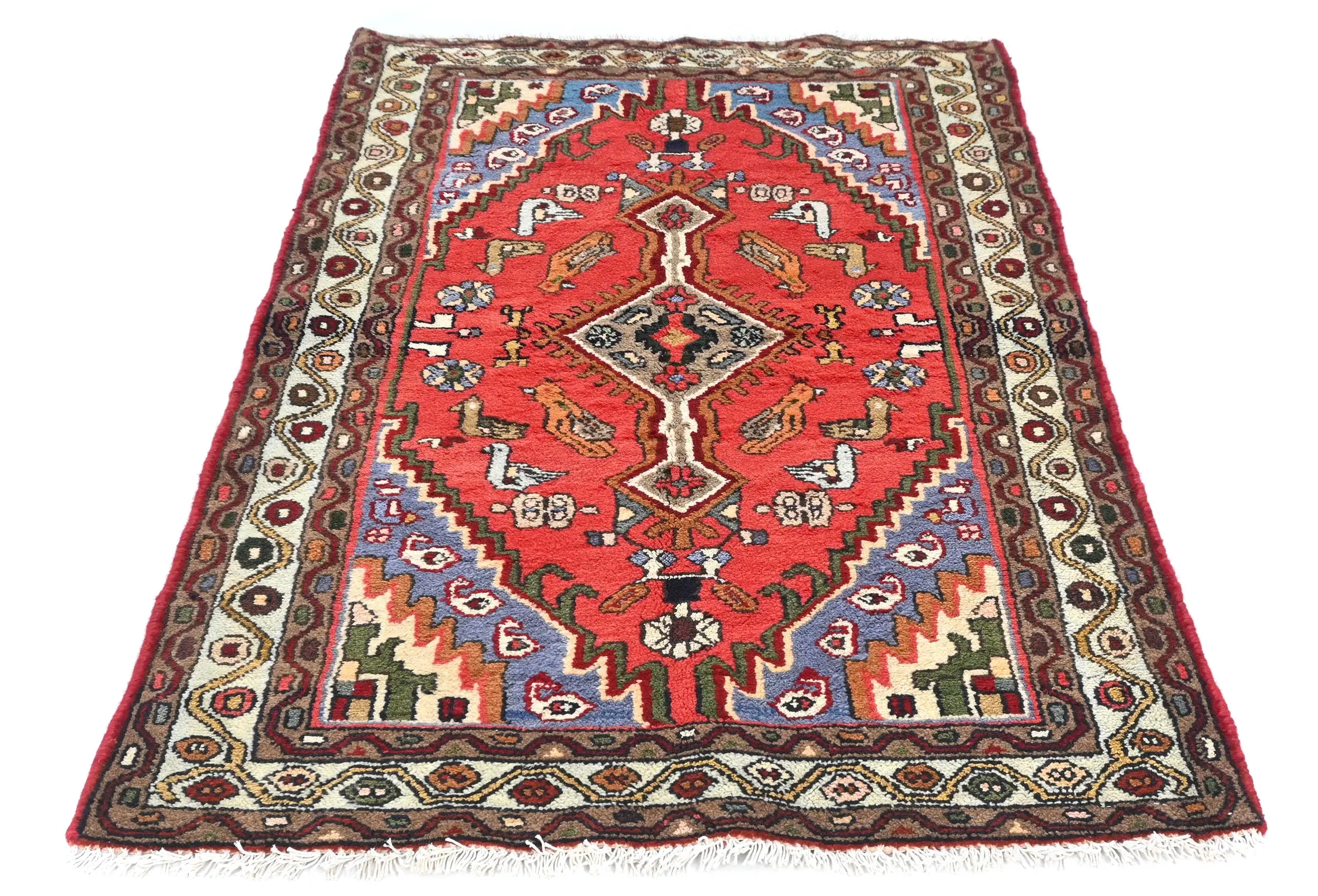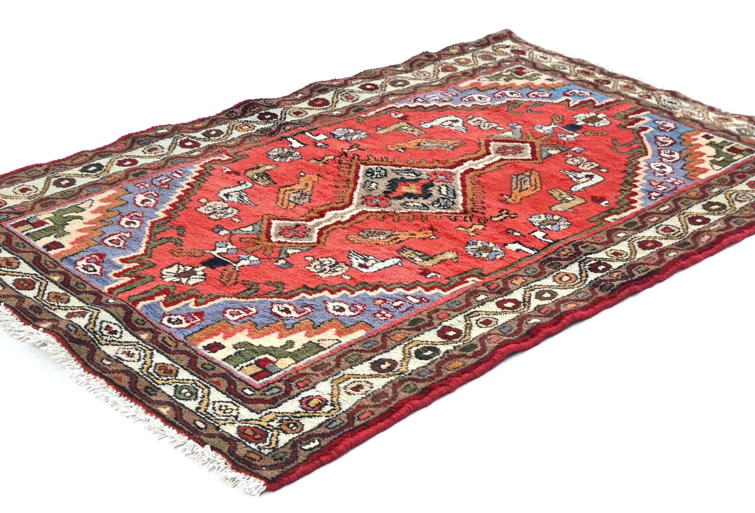 Handmade vintage 3X5 red Persian rug made with vegetable dyes (fine wool pile and cotton foundation), exceptional knot count, and appealing ancient designs. This Oriental rug never will go out of style and would be among your most valuable treasures.