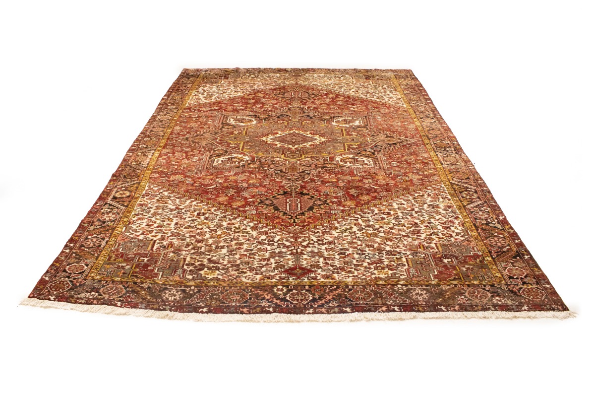 This authentic 11X15 red vintage Persian rug was finely knotted by the hands of weavers influenced by a variety of amazing artistic designs, to recreate the aged look of the exceptional piece with a richness of color and embellished floral background field. What set this traditional Oriental area rug from the others are the material and dye used (wool pile and cotton foundation), knot count, antique designs, fantastic grades, and its regional historical connection: it has deep roots, from the story of the people who produced it to the meaning of the symbols and colors displayed across its canvas that have been praised for centuries. This classic home décor carpet will be completely cozy and inviting that never will go out of style! Also, this Oriental rug would be among your most valuable treasures, it is a great investment that increase in value over time, and it will last a lifetime because was woven with high-quality, all-natural wool; it won’t rip, tear, or shed. Eco-friendly, opulent yet affordable; this Persian rug will give you an extra pop of character to help define your home environment with luxury and warmth that will capture the eyes and attention of your audience (homeowners, designers, decorators, family and friends). EB-6417
